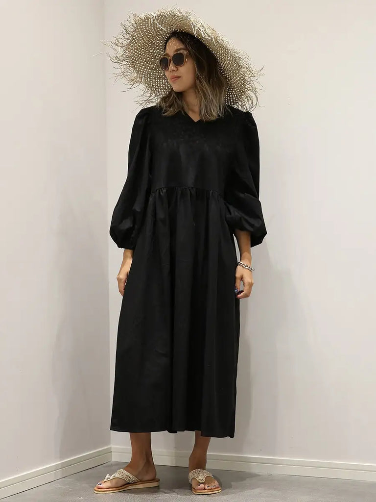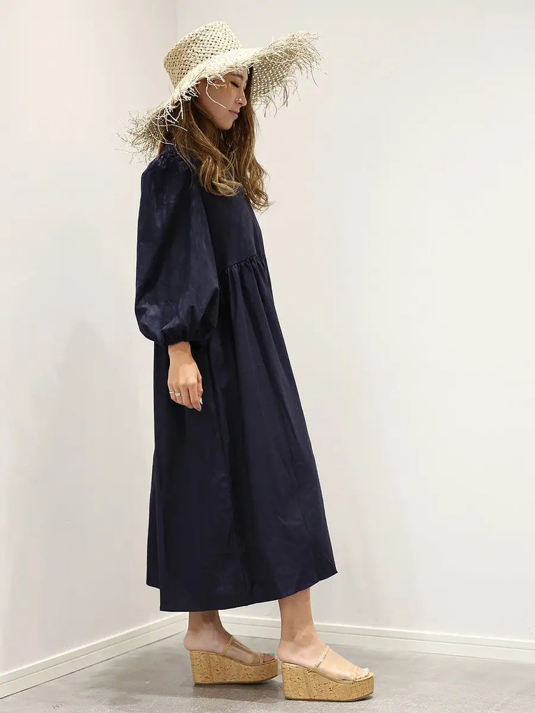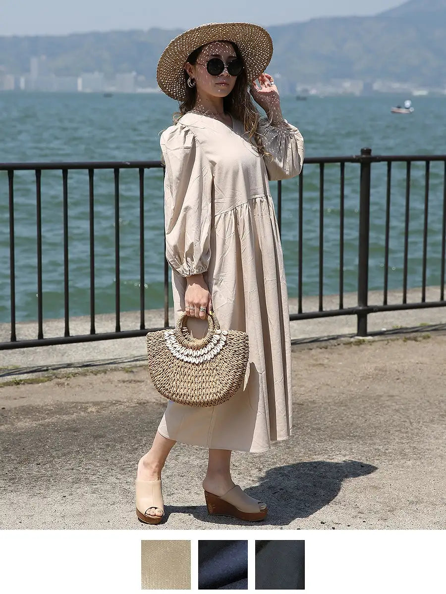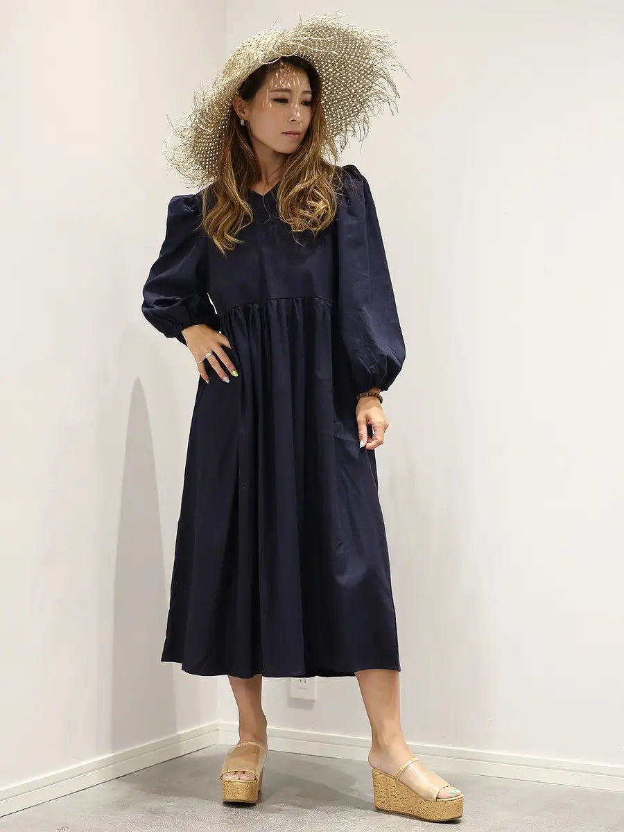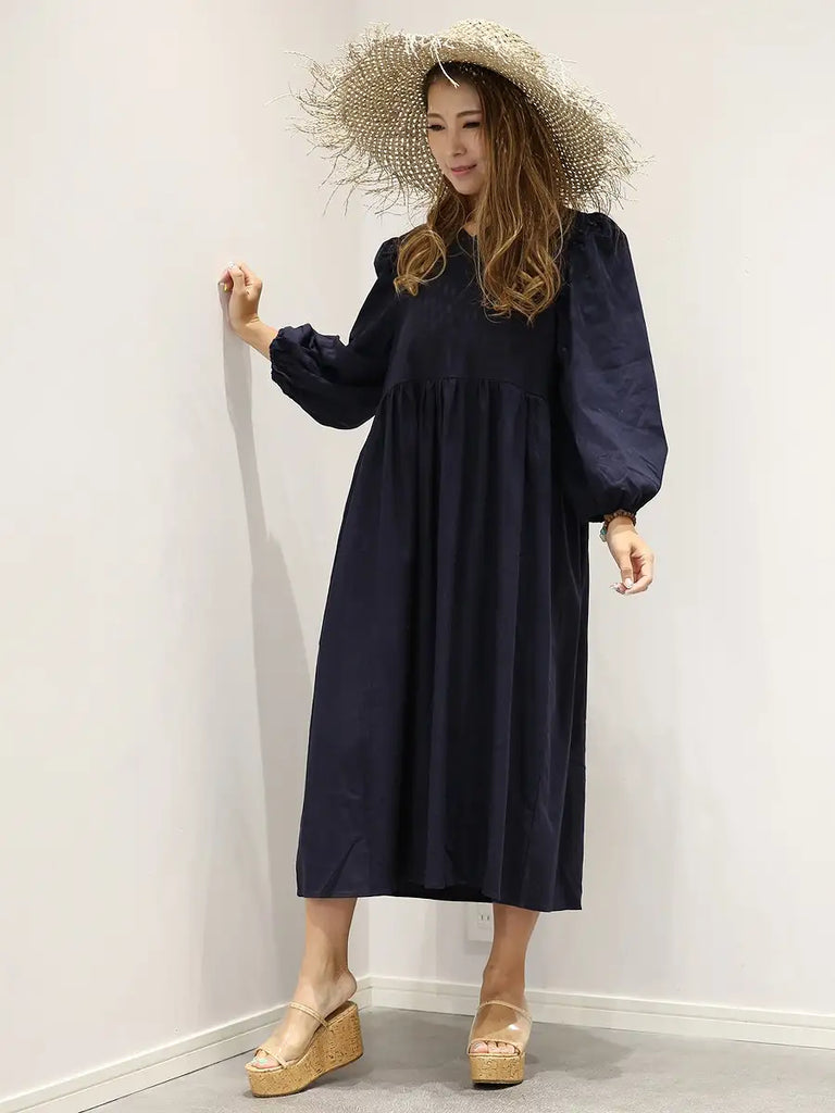 roomy by the sea(ルーミーバイザシー)シンプルなボリューム袖マキシワンピース