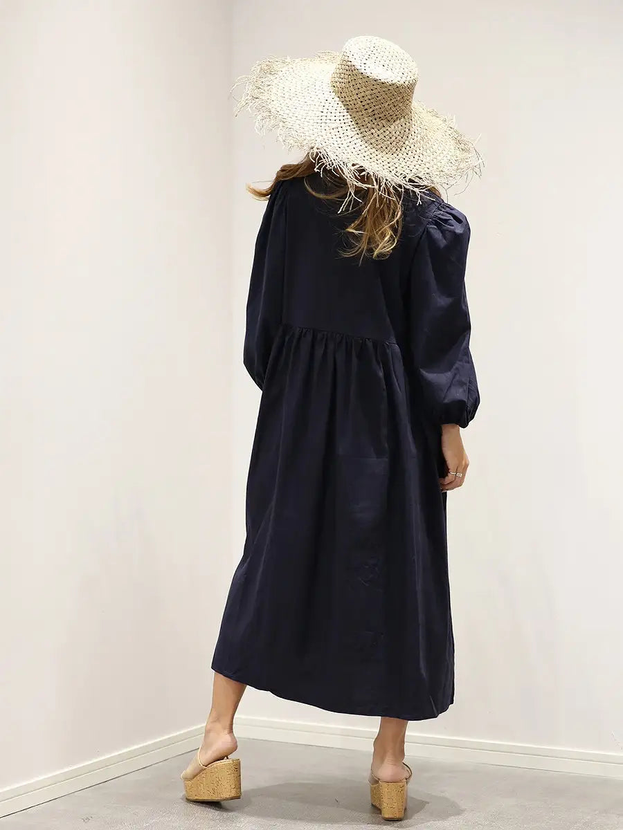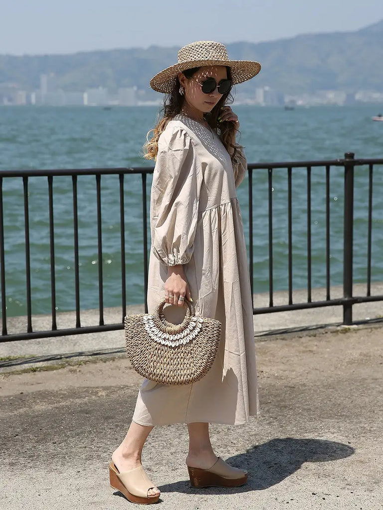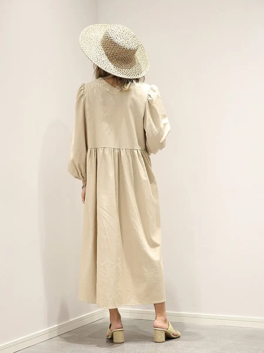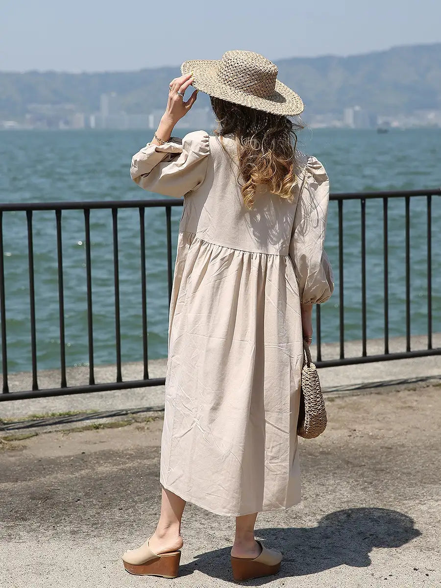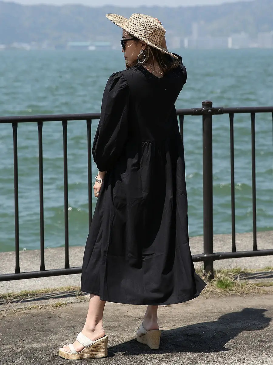 roomy by the sea(ルーミーバイザシー)シンプルなボリューム袖マキシワンピース
