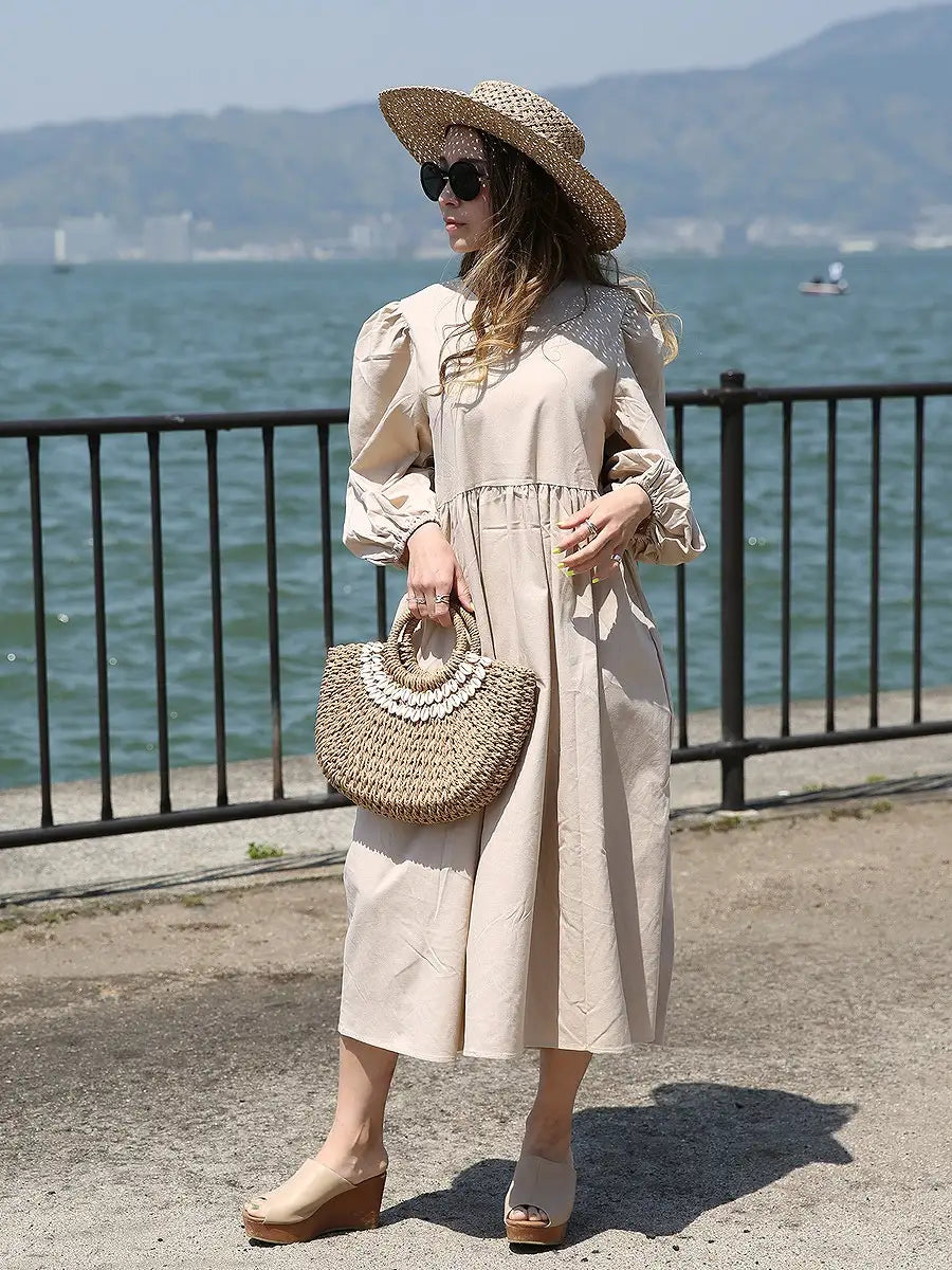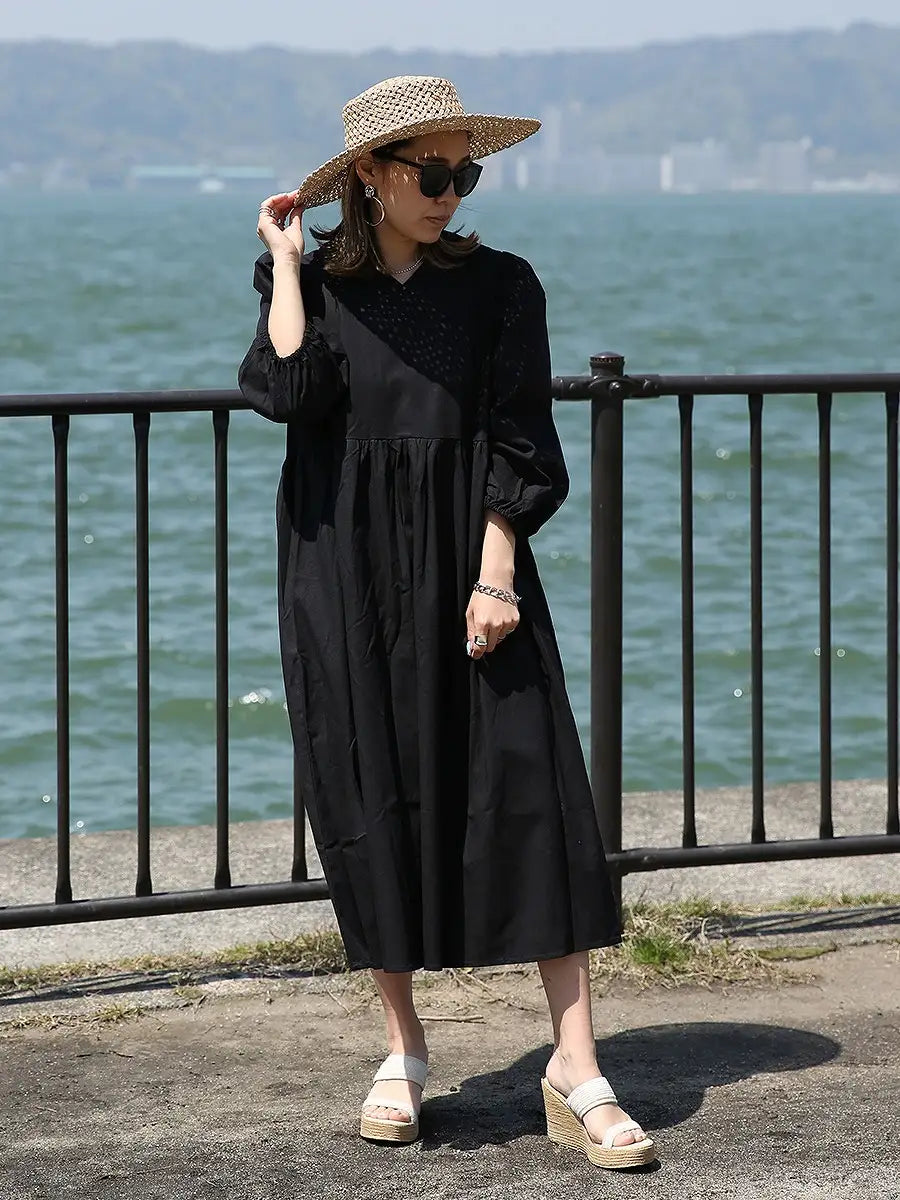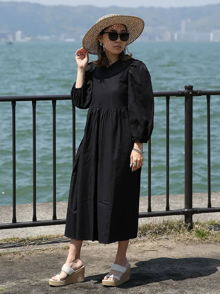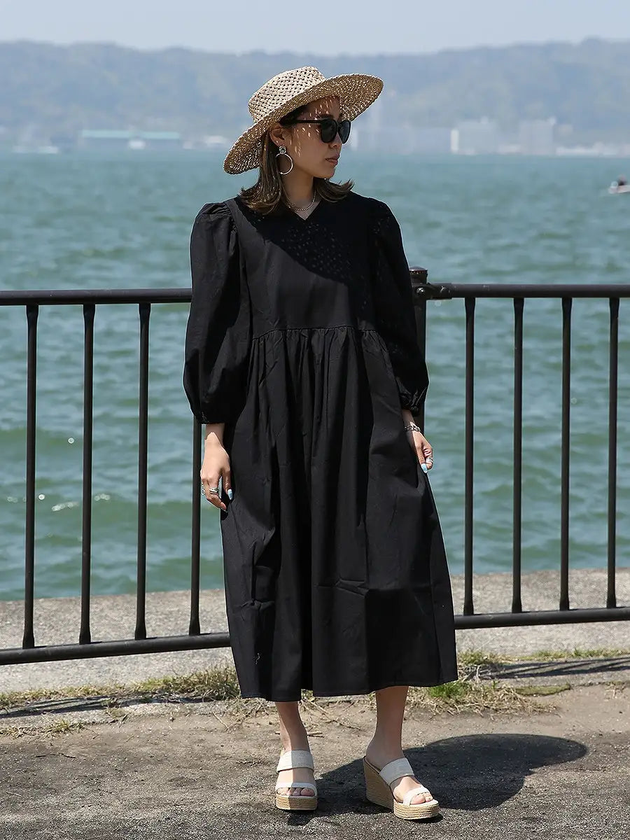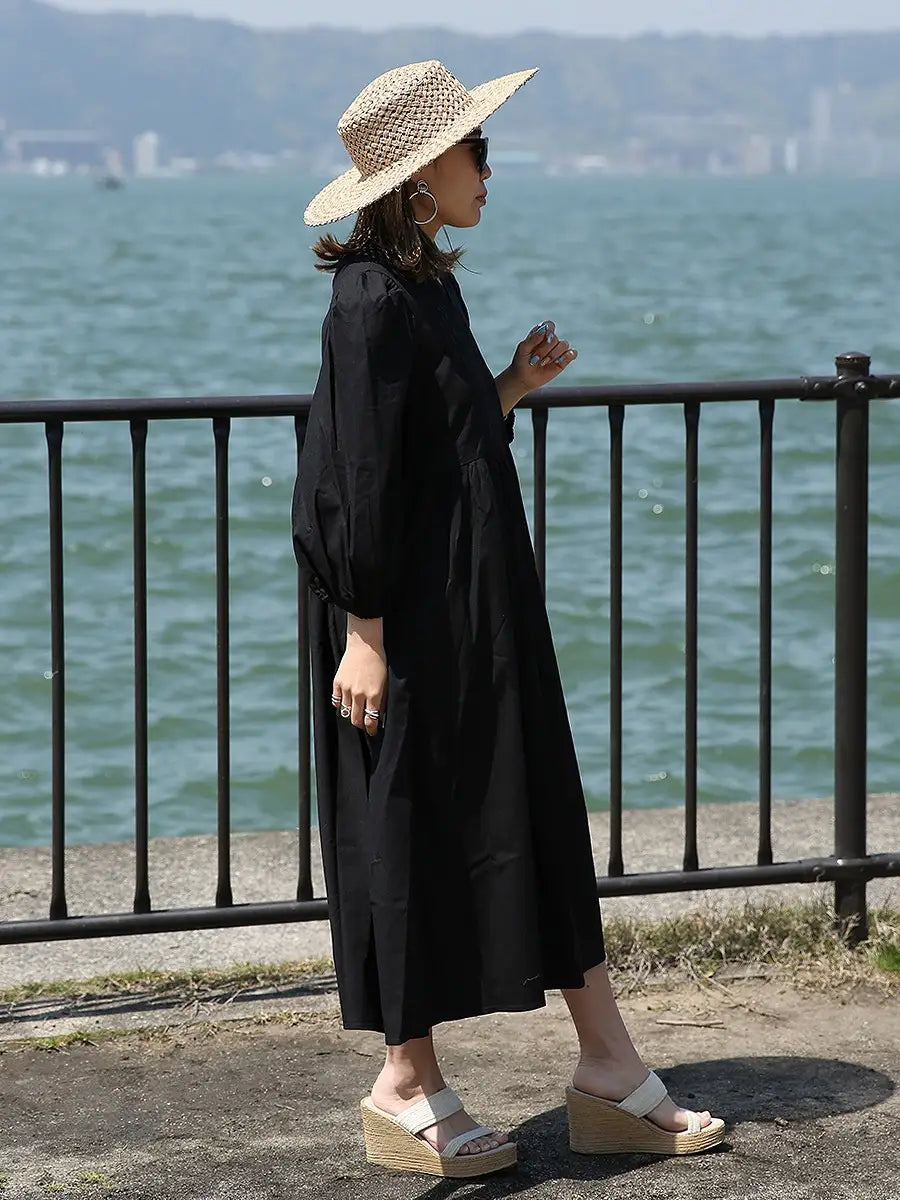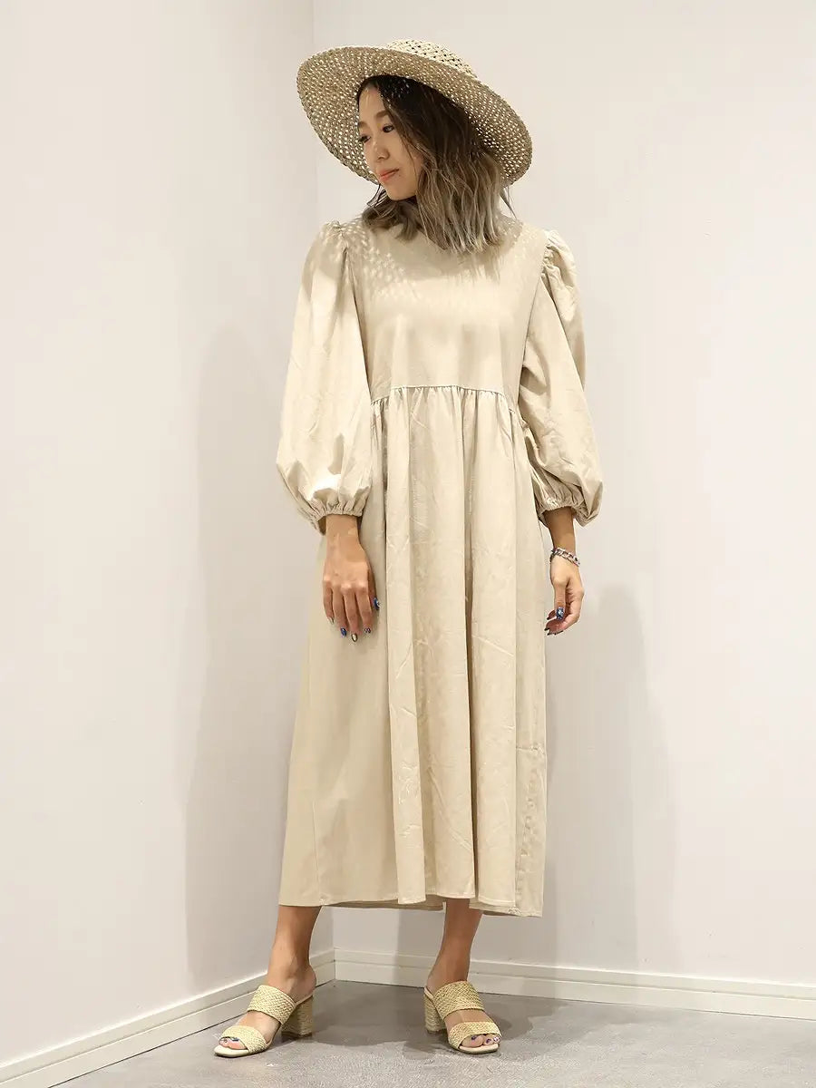 roomy by the sea(ルーミーバイザシー)ボリューム袖のマキシワンピース。
