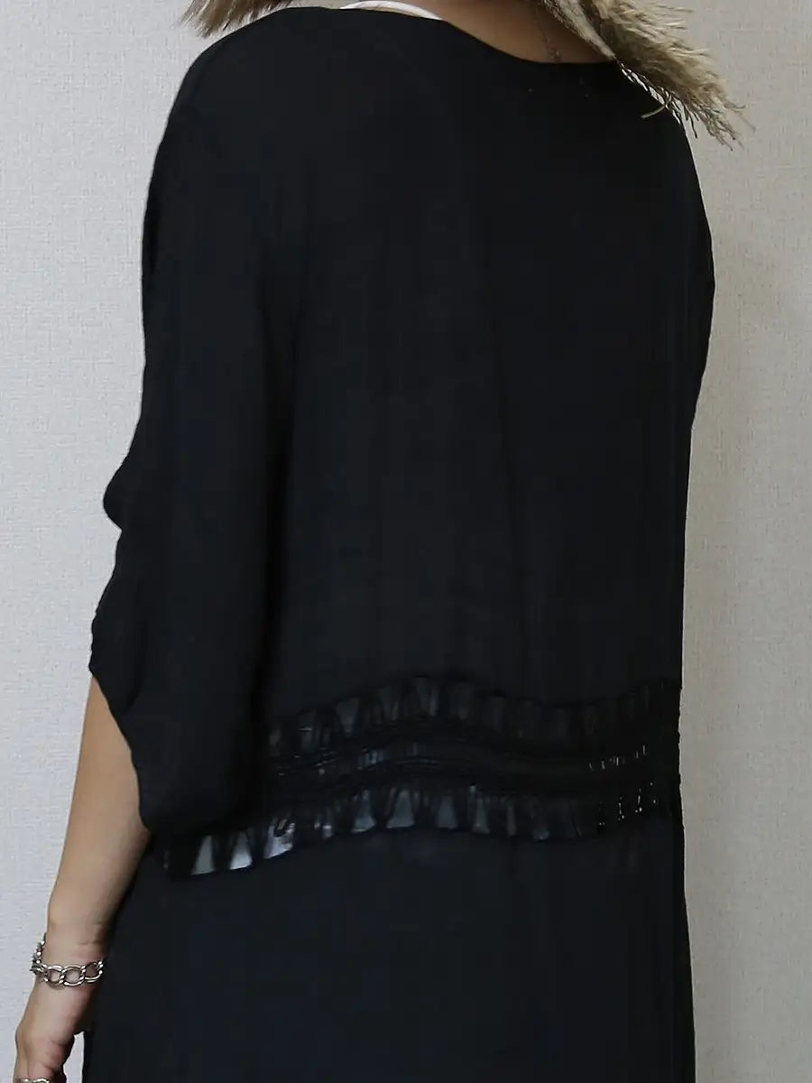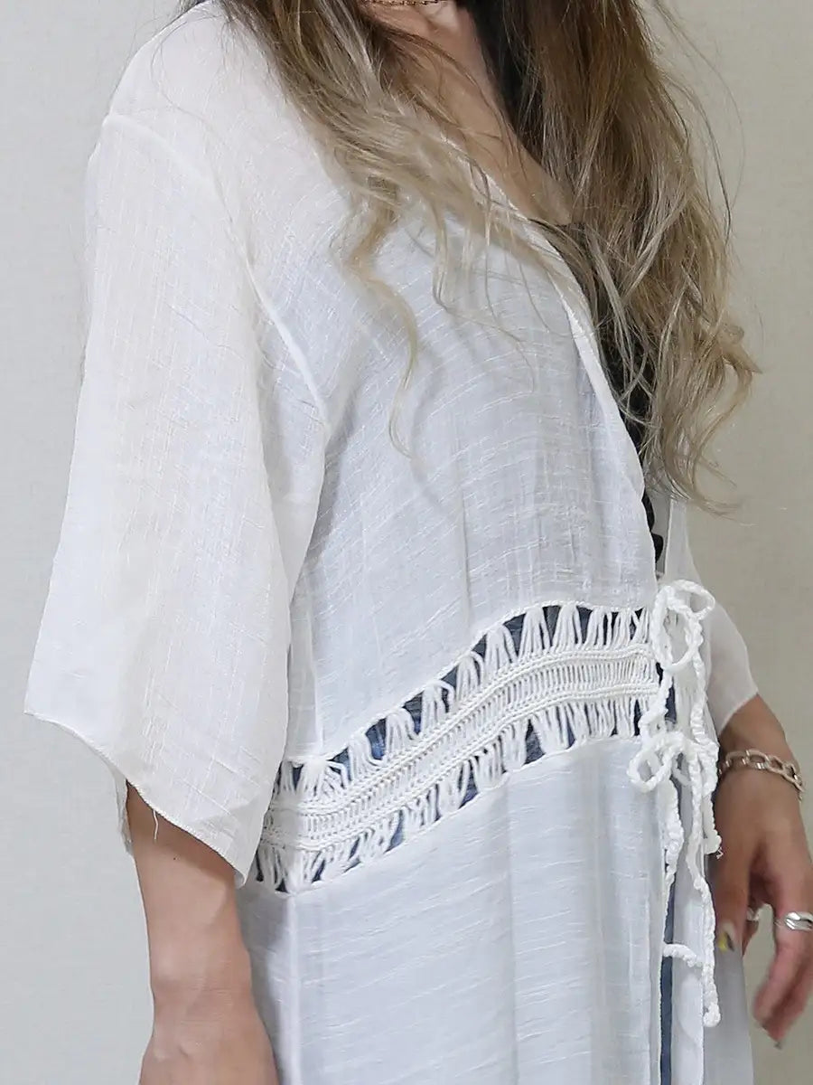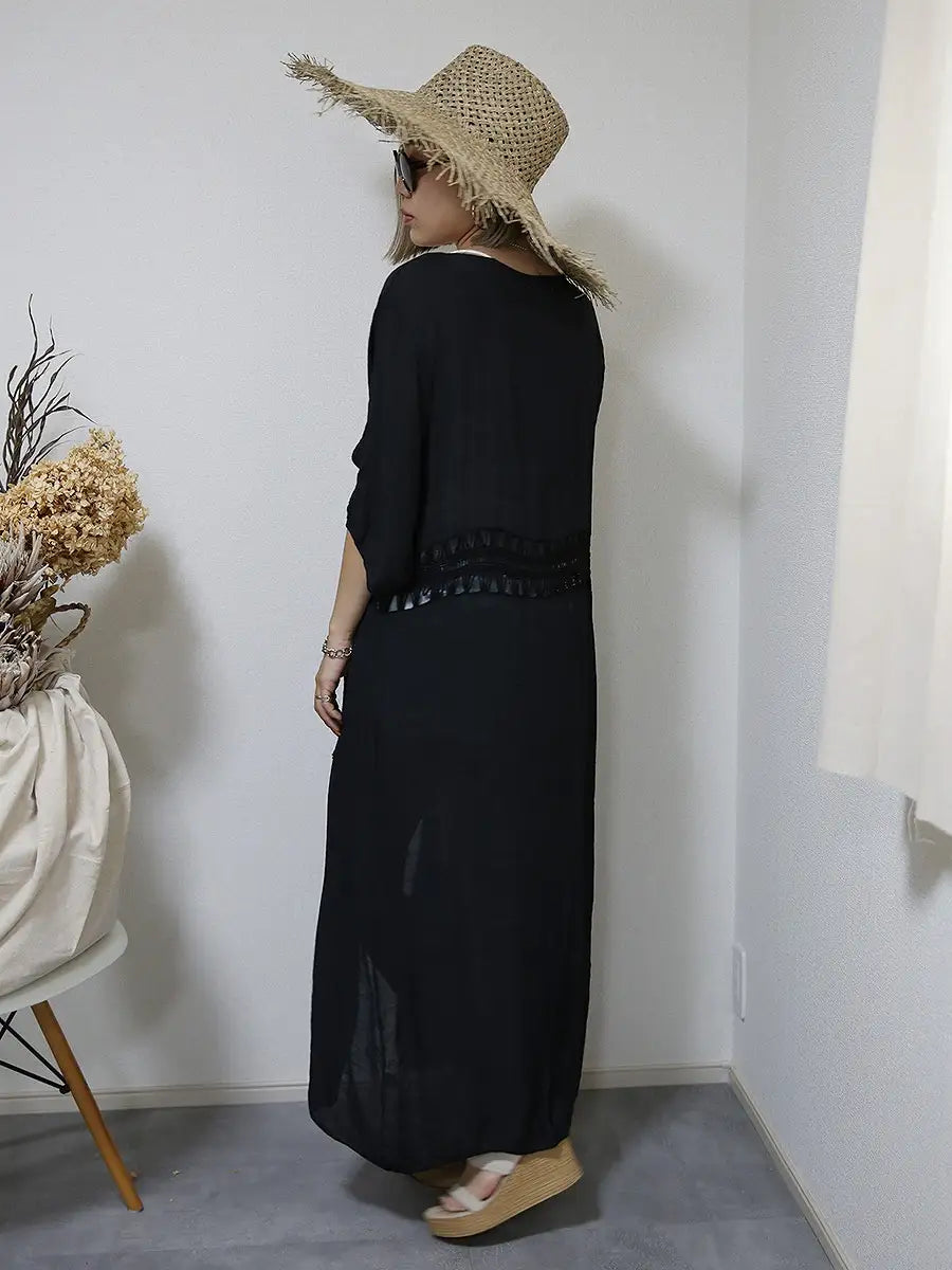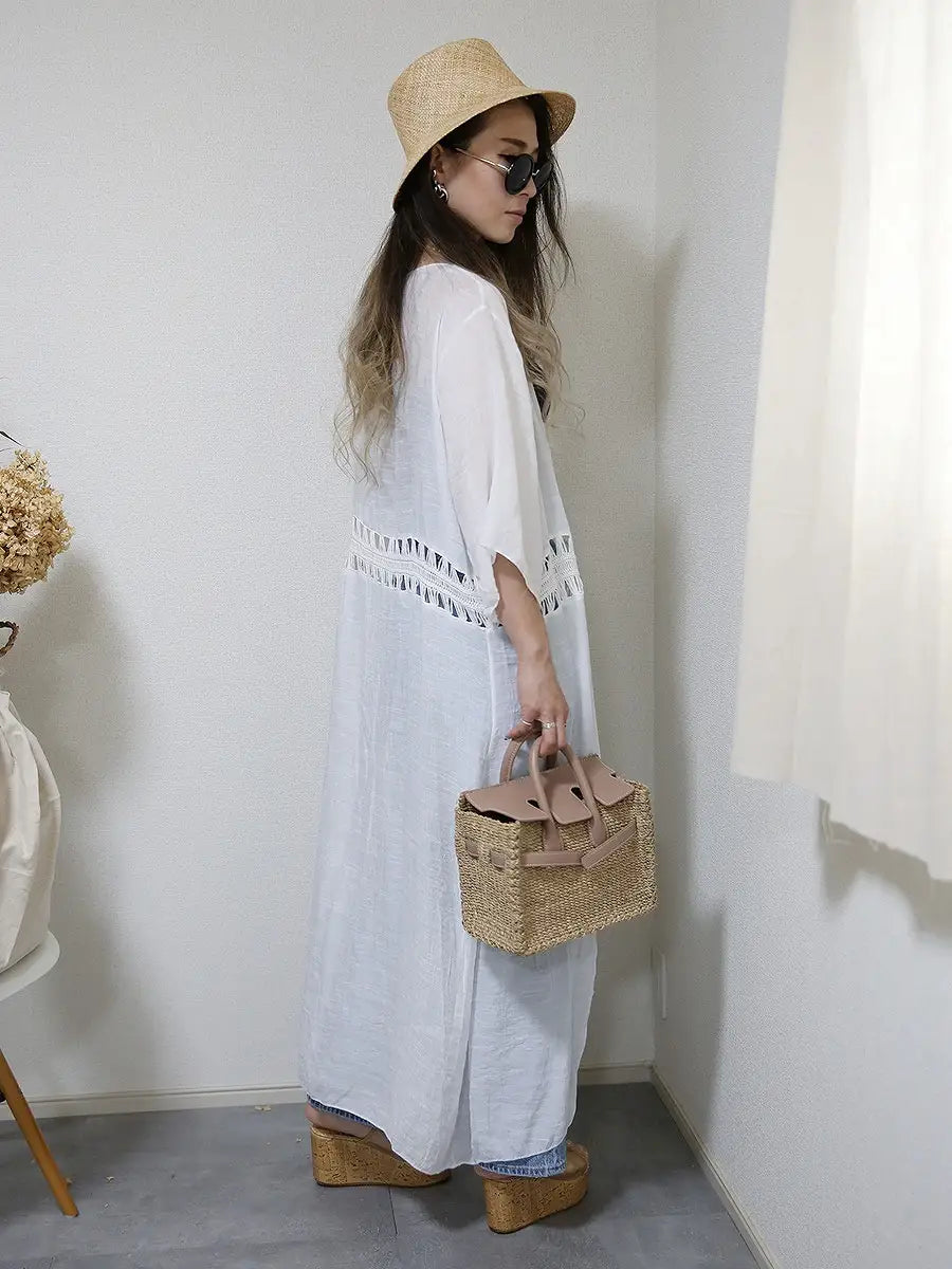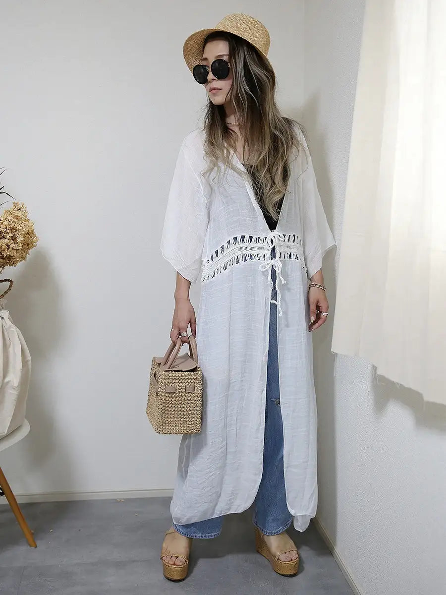 薄手の透け感ある羽織ものになります。水着の上にサラッと羽織るカバーアップとしておすすめです。