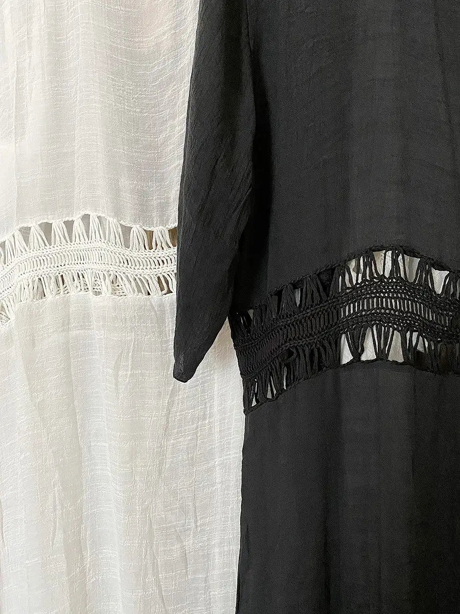 roomy by the sea(ルーミーバイザシー)クロシェ編み切り替えロング丈カーディガン。