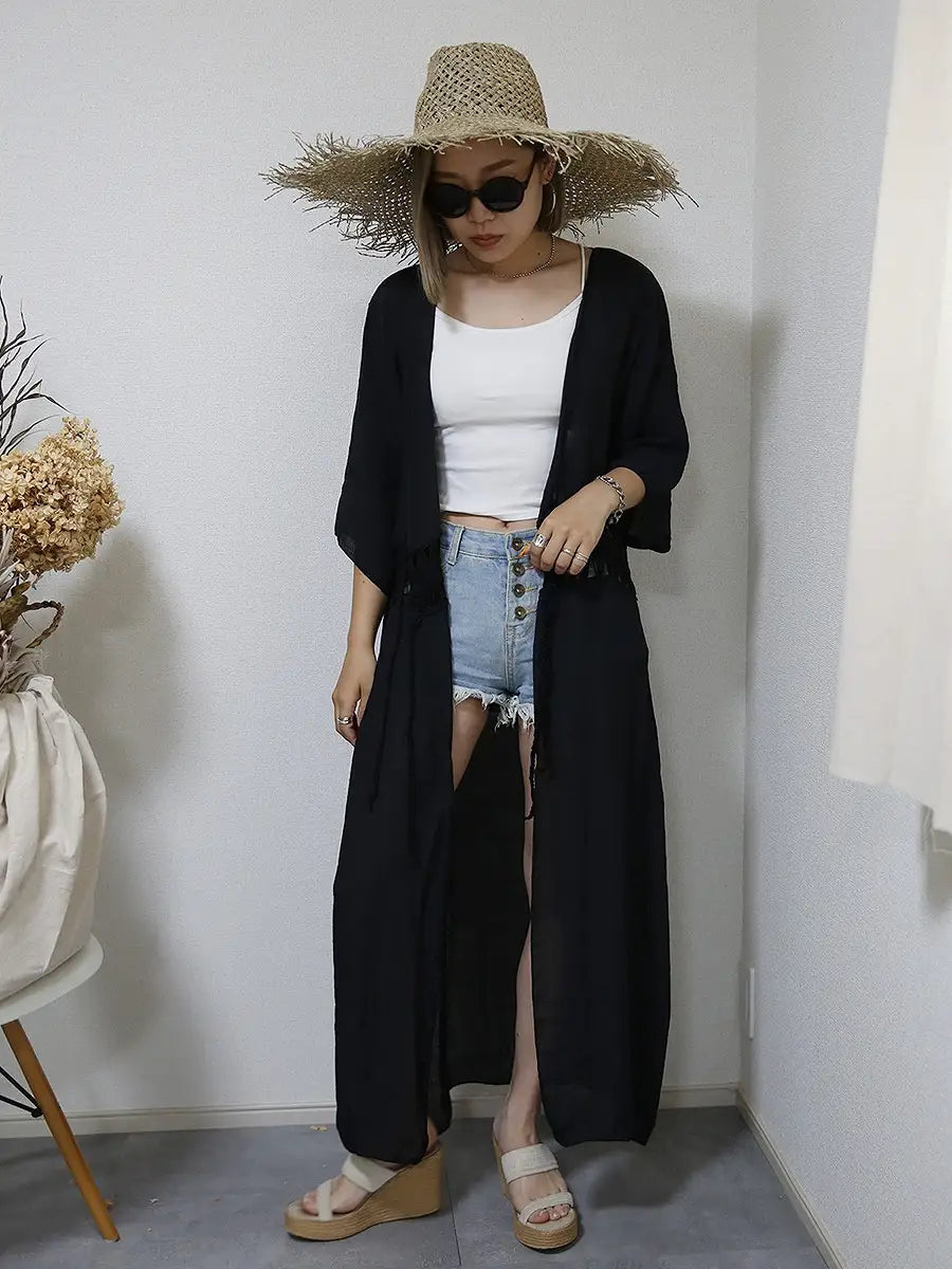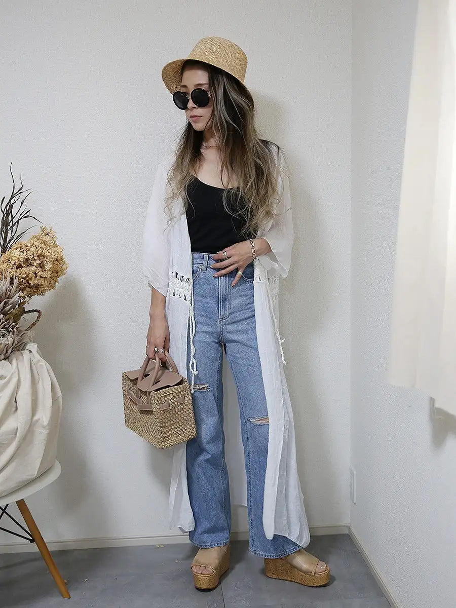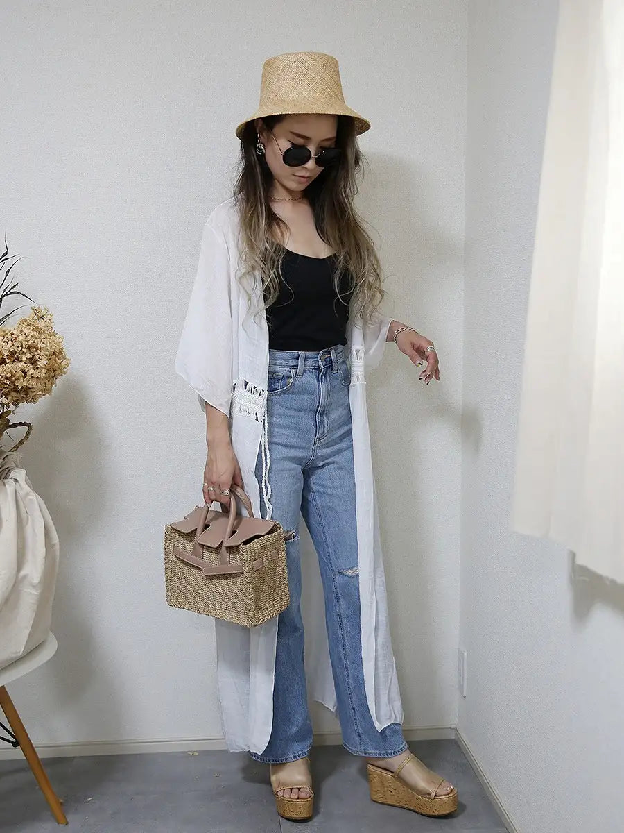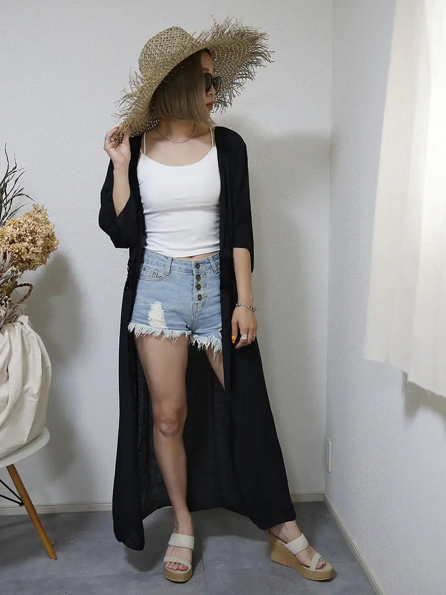 キャミソールにショーパンコーデの上に、マキシワンピースの上にサラッと!