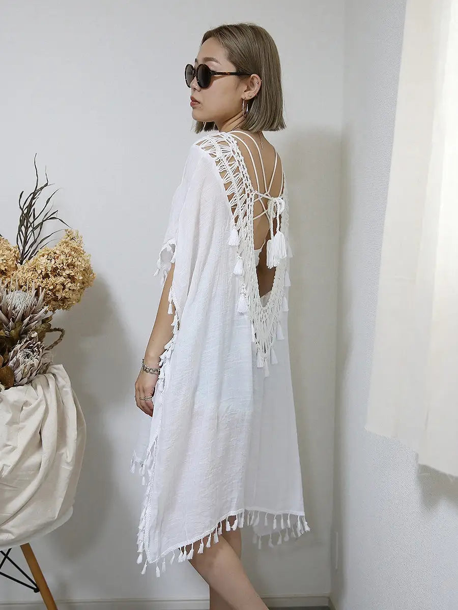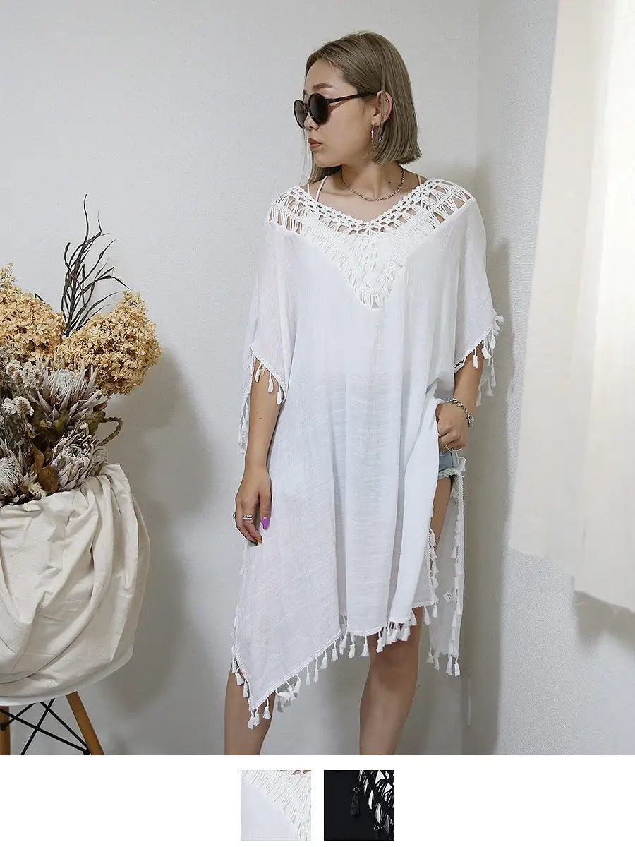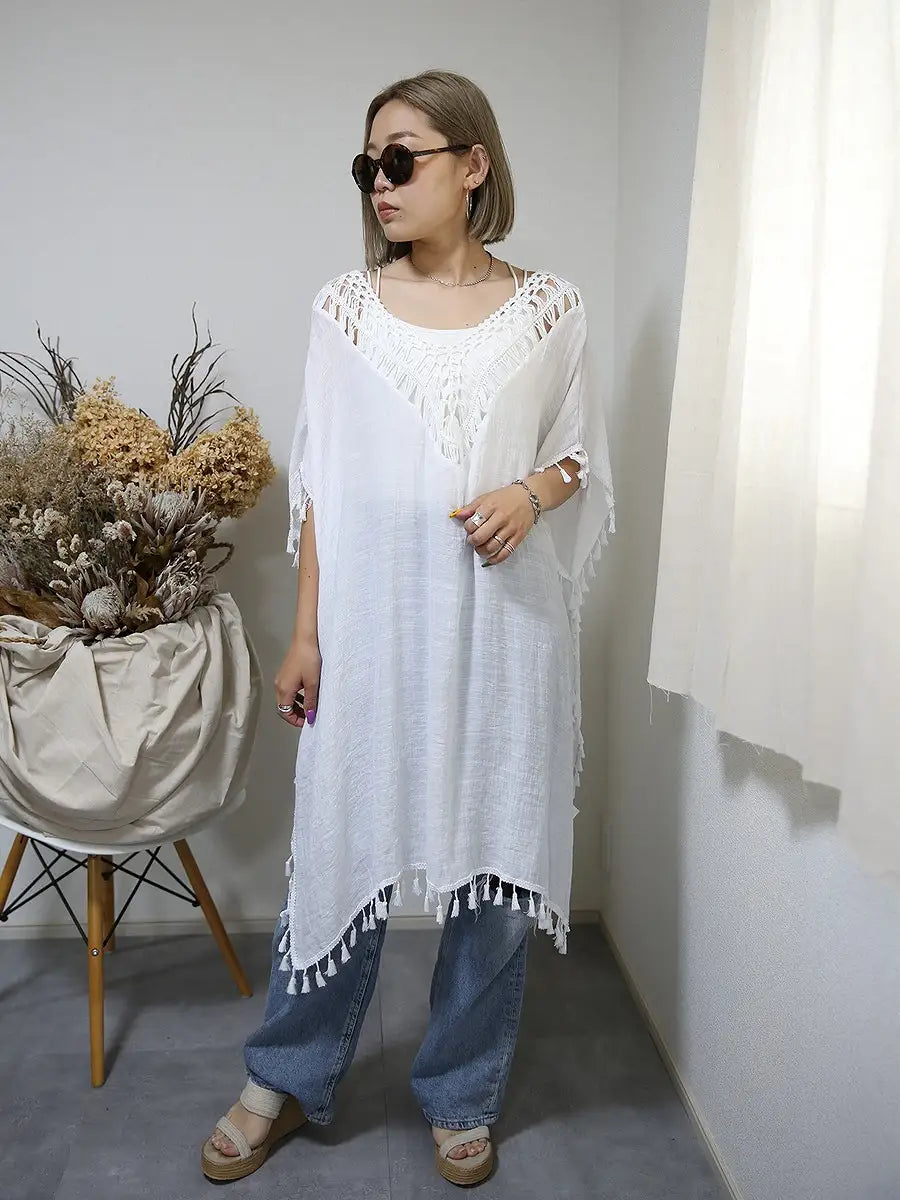 roomy by the sea(ルーミーバイザシー)クロシェ編みタッセルチュニックワンピース