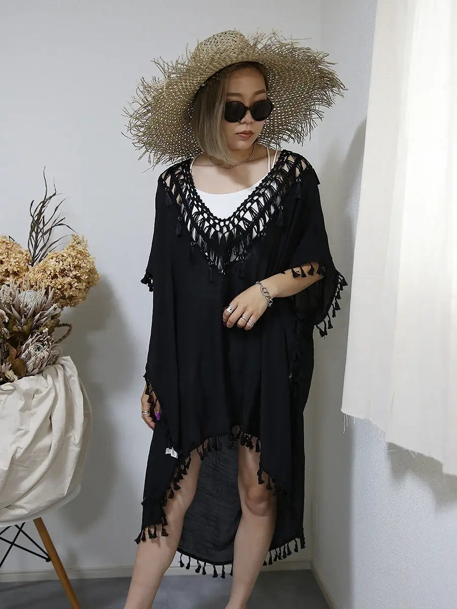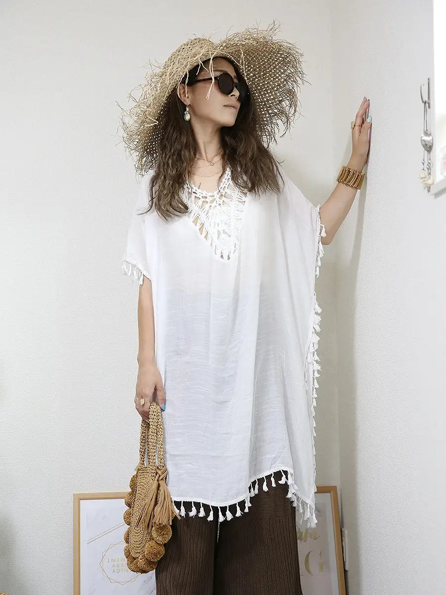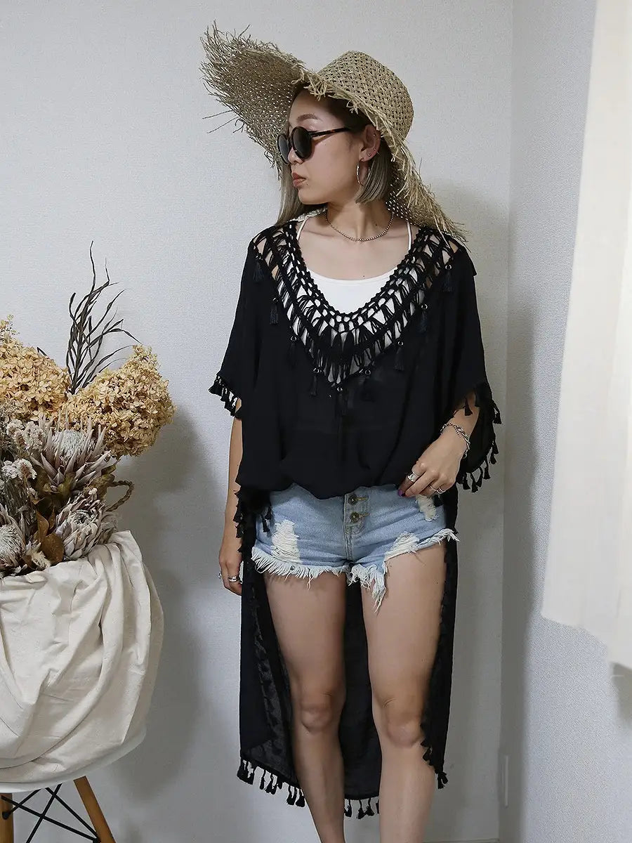 roomy by the sea(ルーミーバイザシー)クロシェ編みタッセルチュニックワンピース