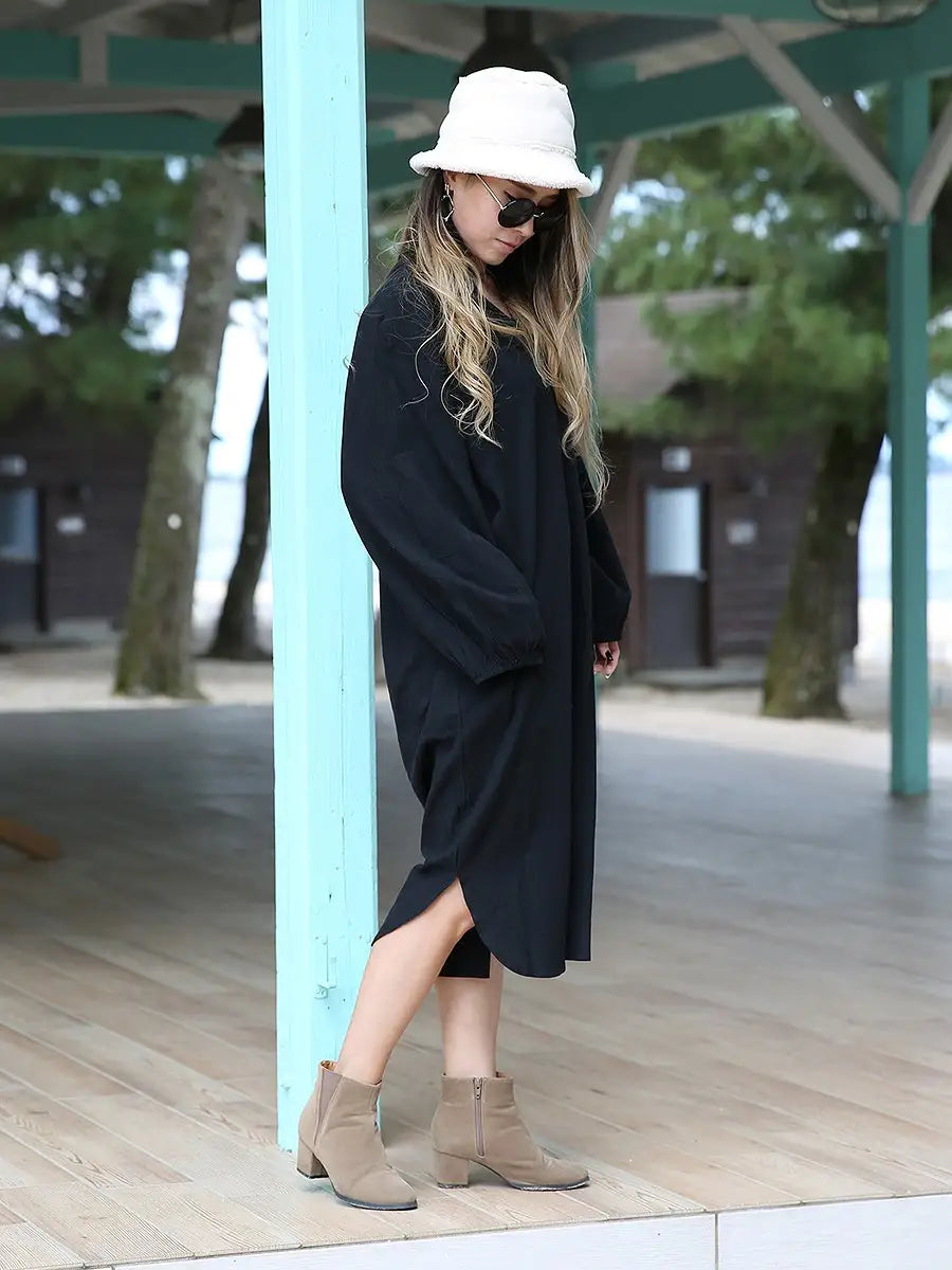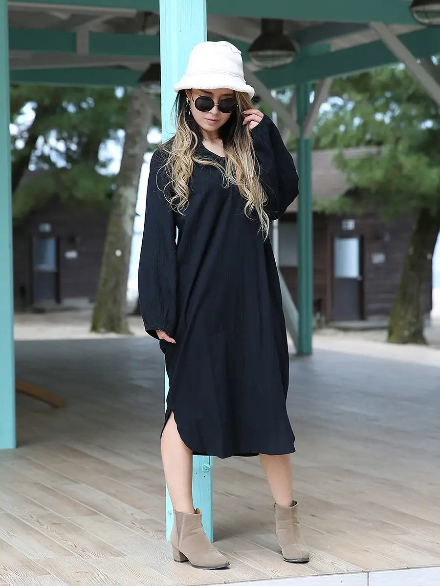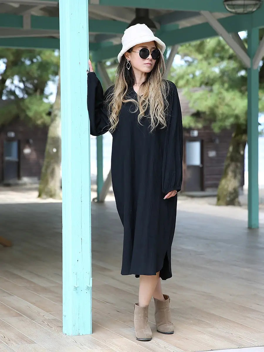 roomy by the sea(ルーミーバイザシー)シンプルな長袖ミモレ丈ワンピース