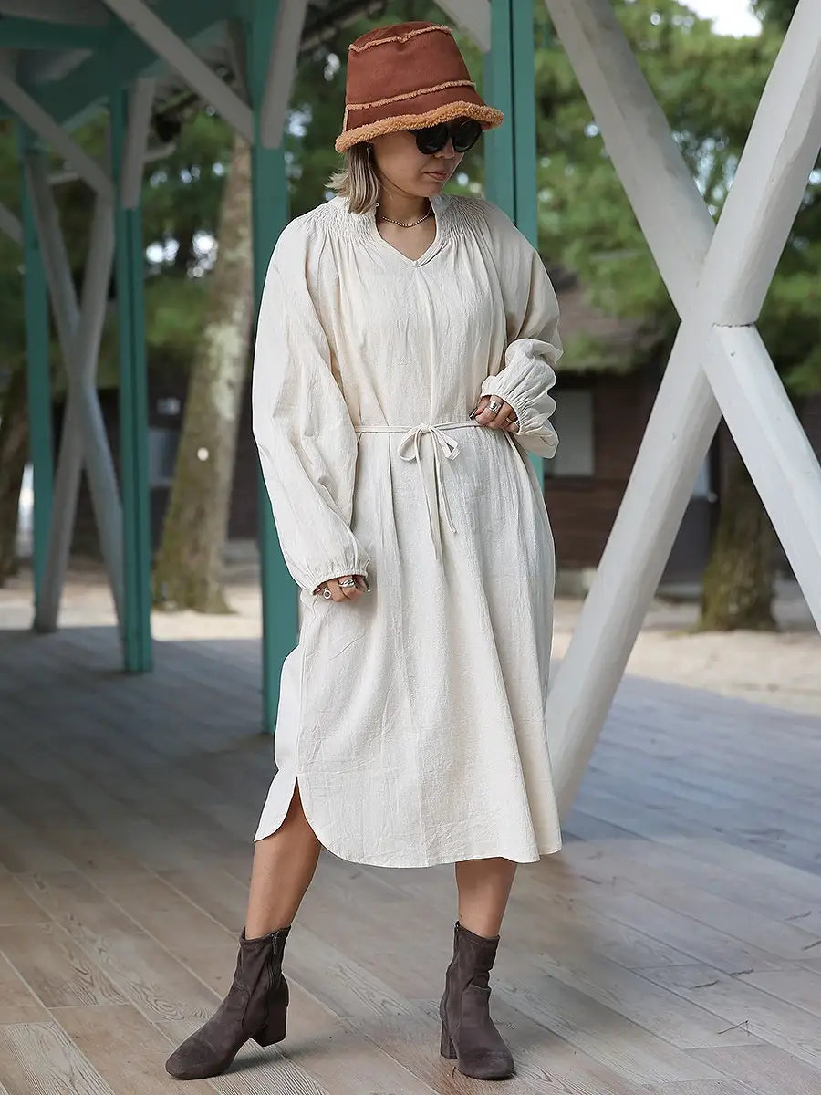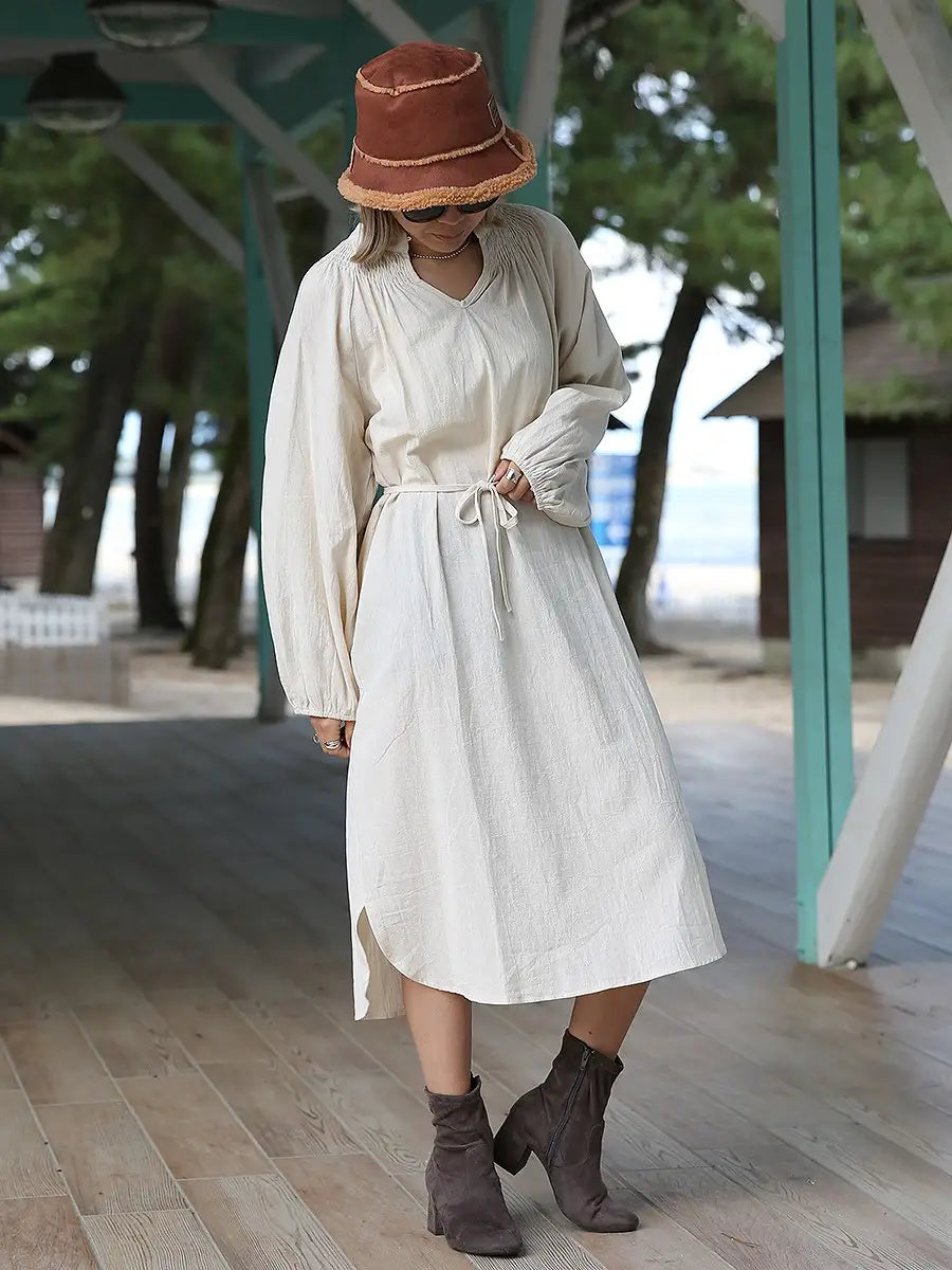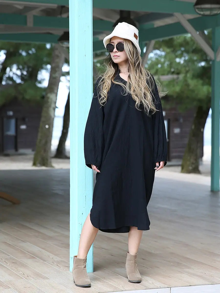 roomy by the sea(ルーミーバイザシー)シンプルな長袖ミモレ丈ワンピース