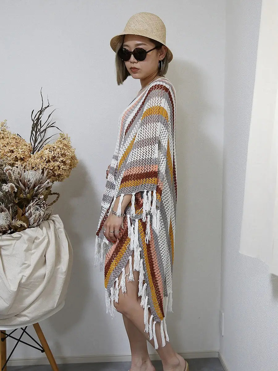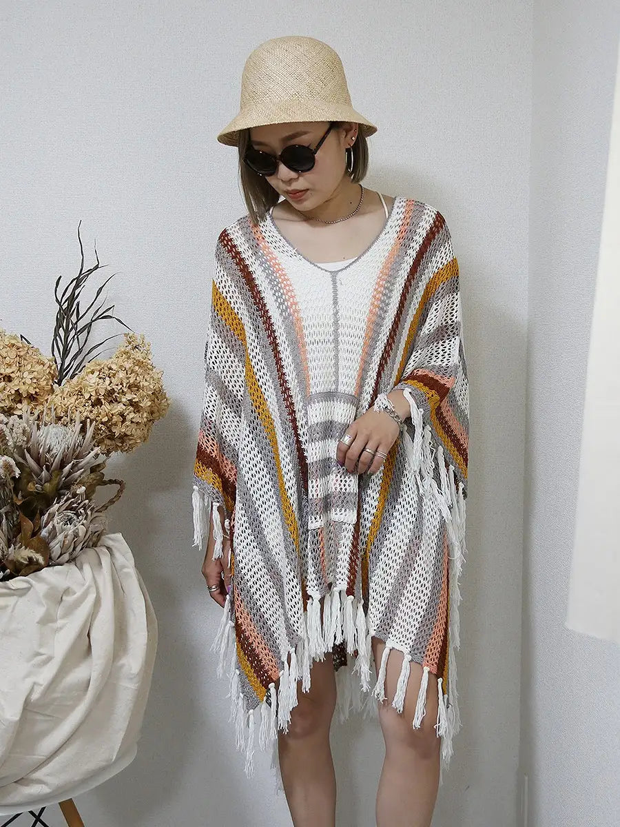 ハワイや沖縄などのビーチ・リゾートシーンでは水着の上にサラッとカバーアップとしての着用がおすすめです。