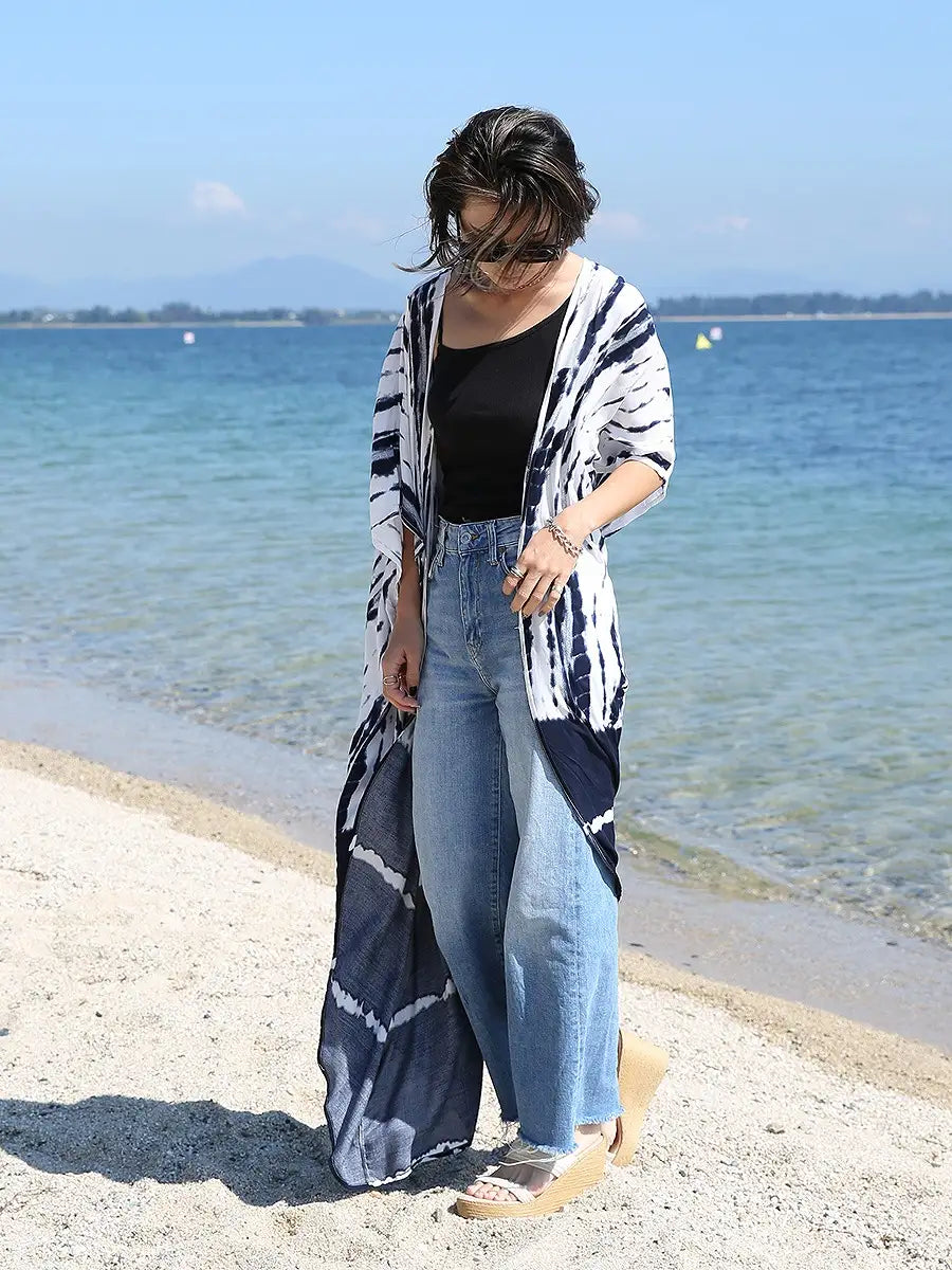 ビーチ・リゾートシーンで重宝する羽織りは旅先で大活躍します。