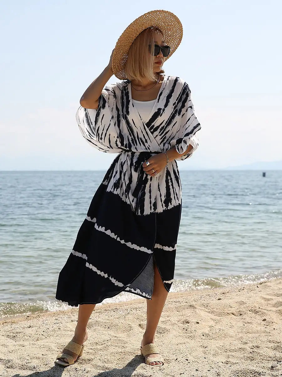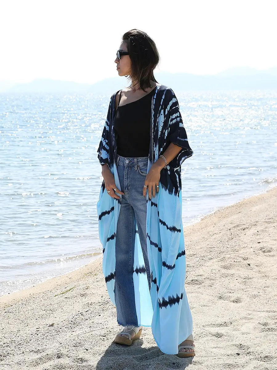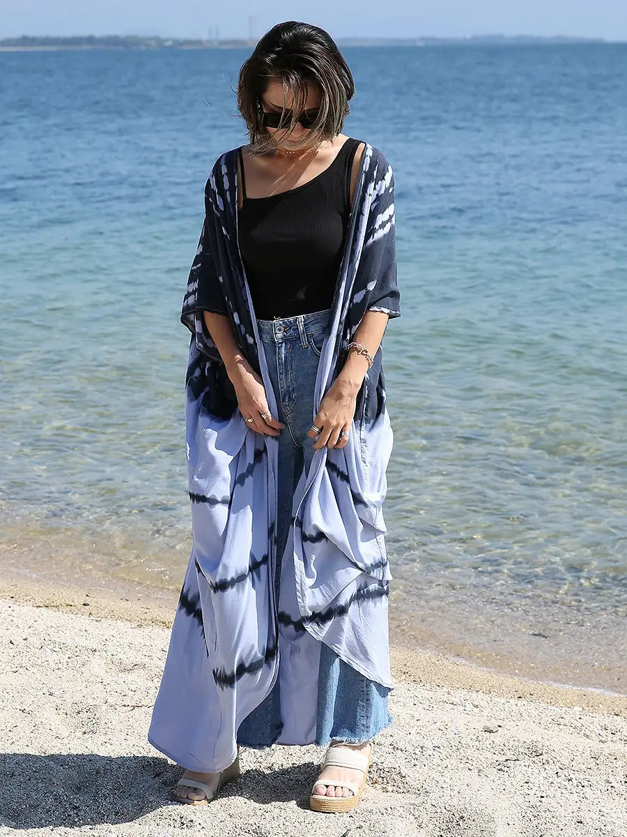 タイダイ柄の羽織りカバーアップは水着の上にサラッと!