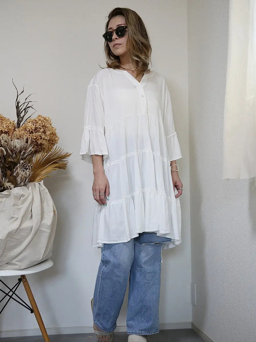 roomy by the sea(ルーミーバイザシー)ティアードチュニックワンピース