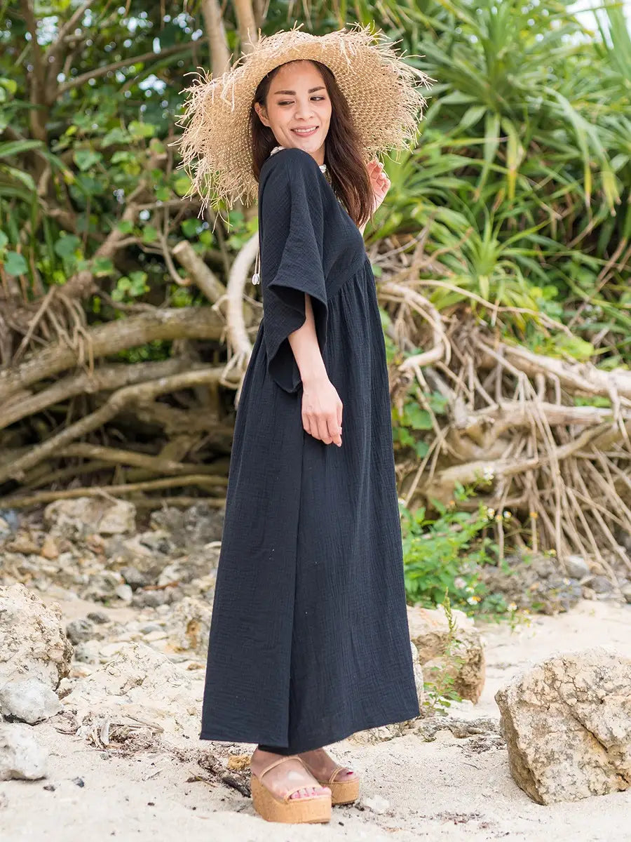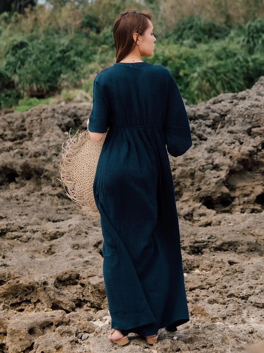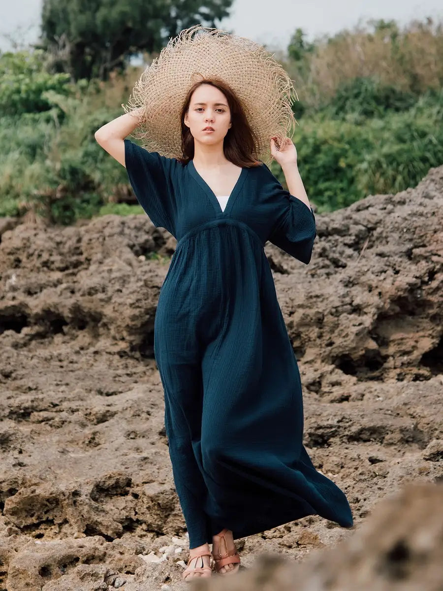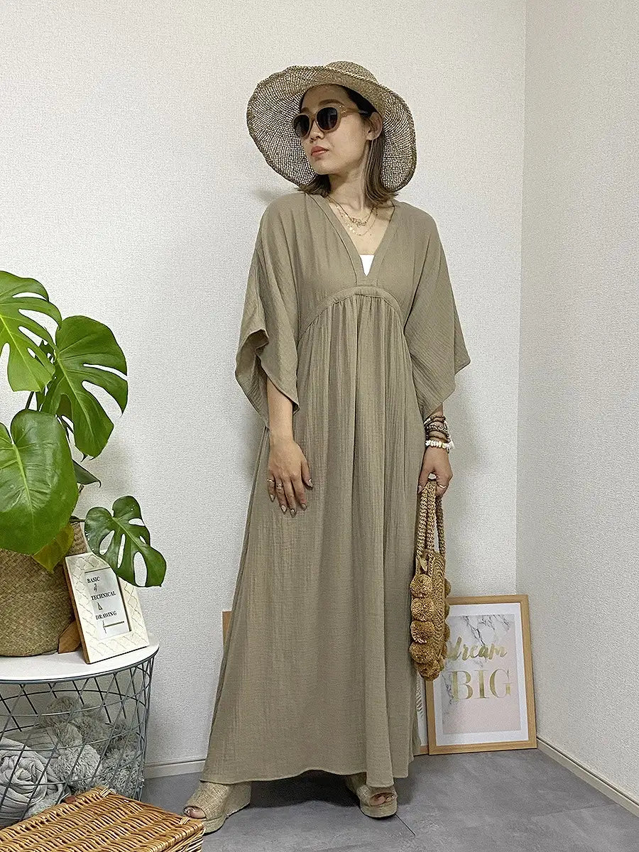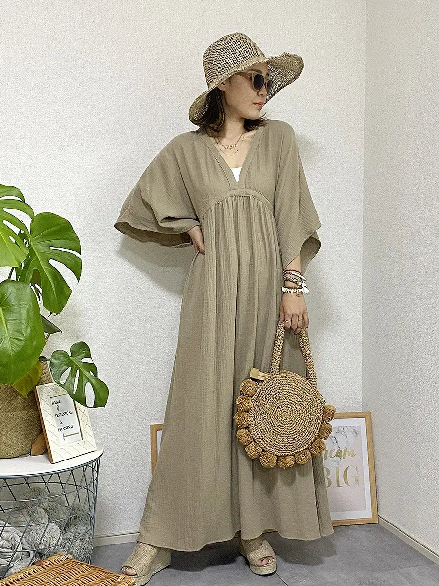 とっても柔らかくて軽いかーぜのようなコットン生地のマキシワンピースです。