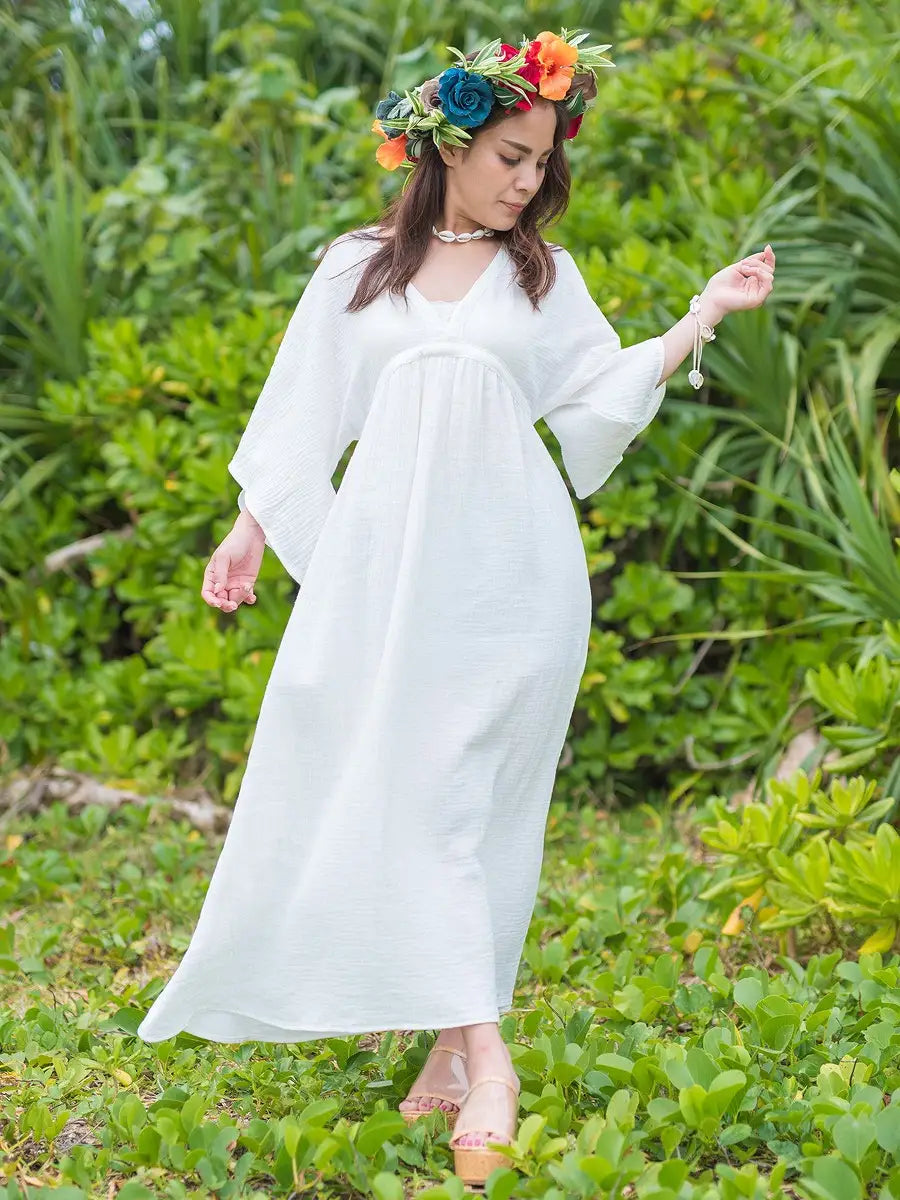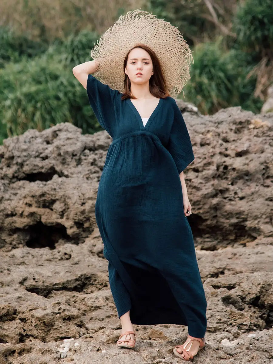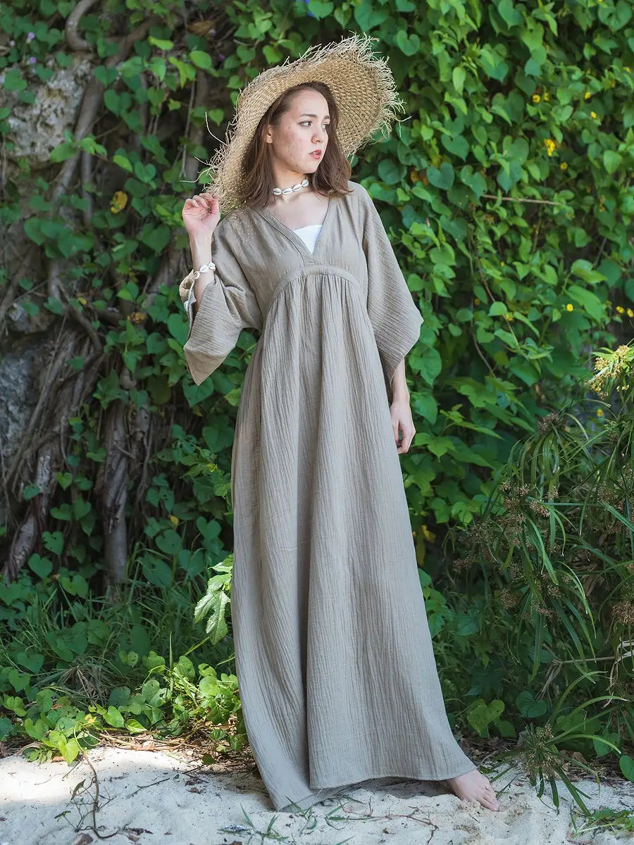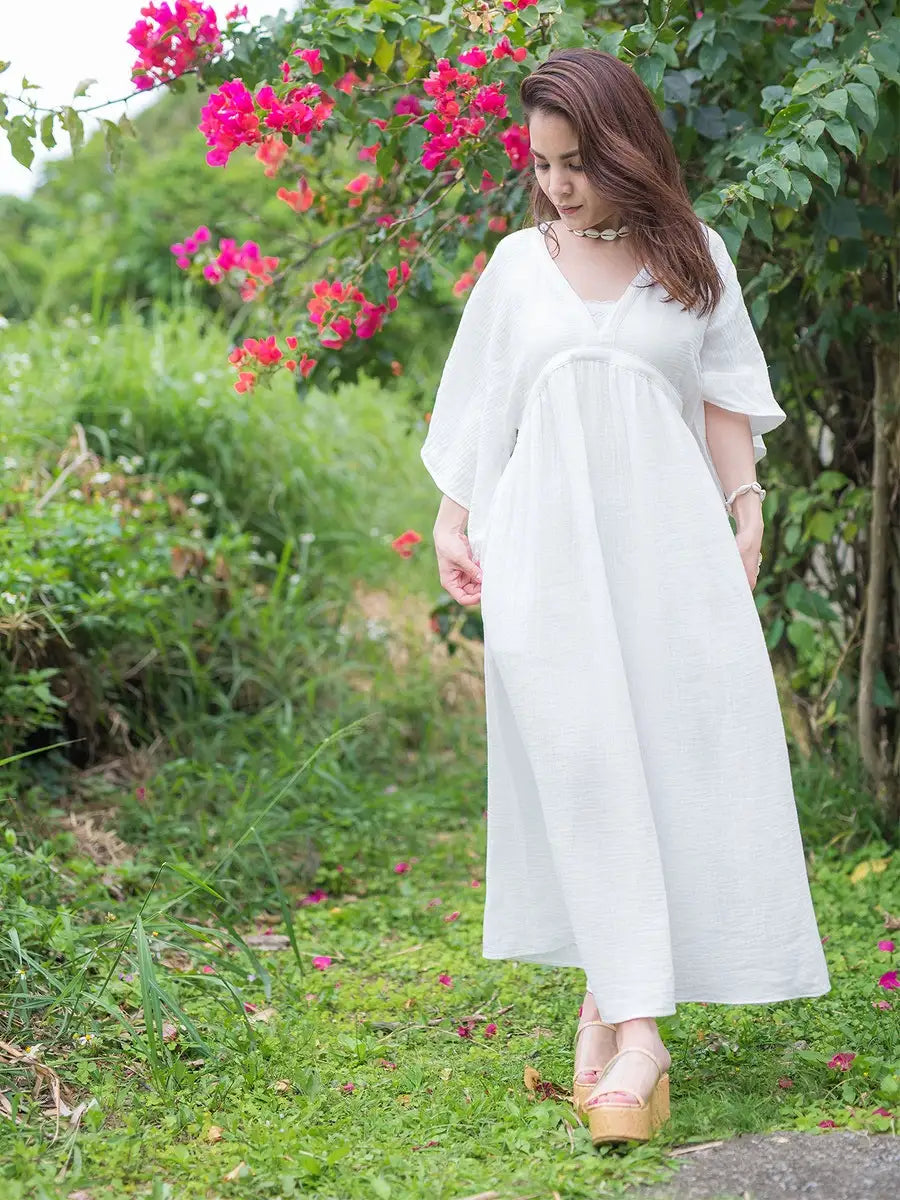 とっても柔らかくて軽いかーぜのようなコットン生地のマキシワンピースです。