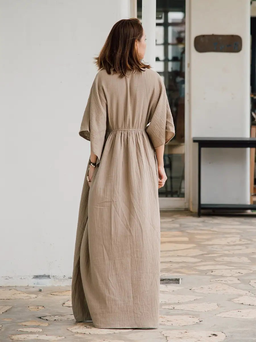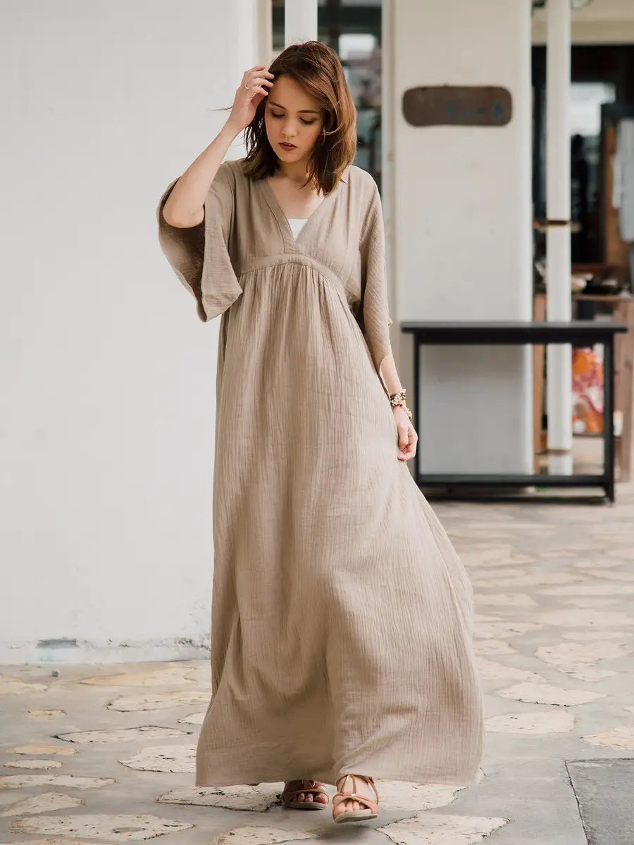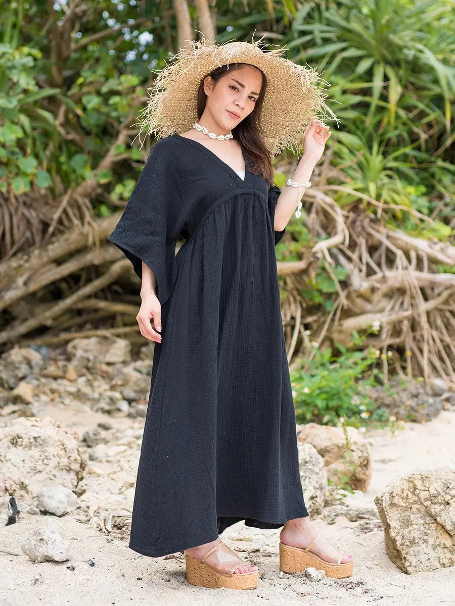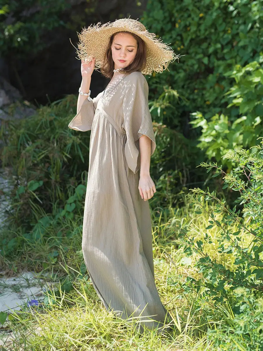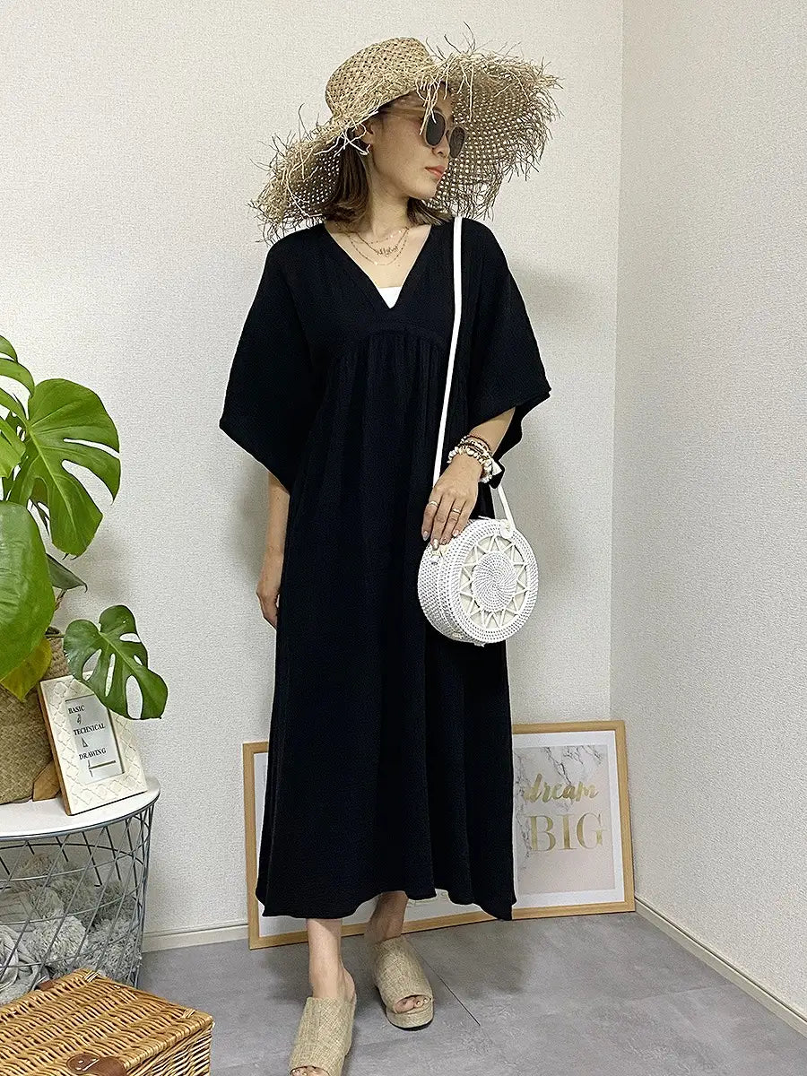 とっても柔らかくて軽いかーぜのようなコットン生地のマキシワンピースです。