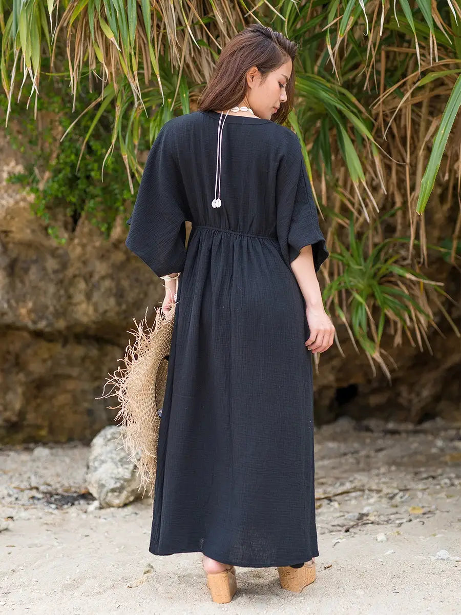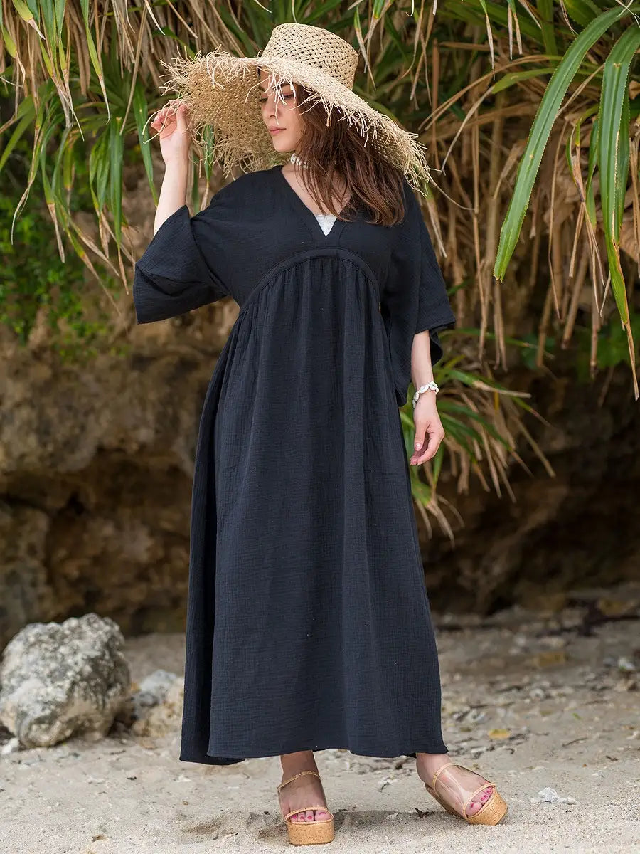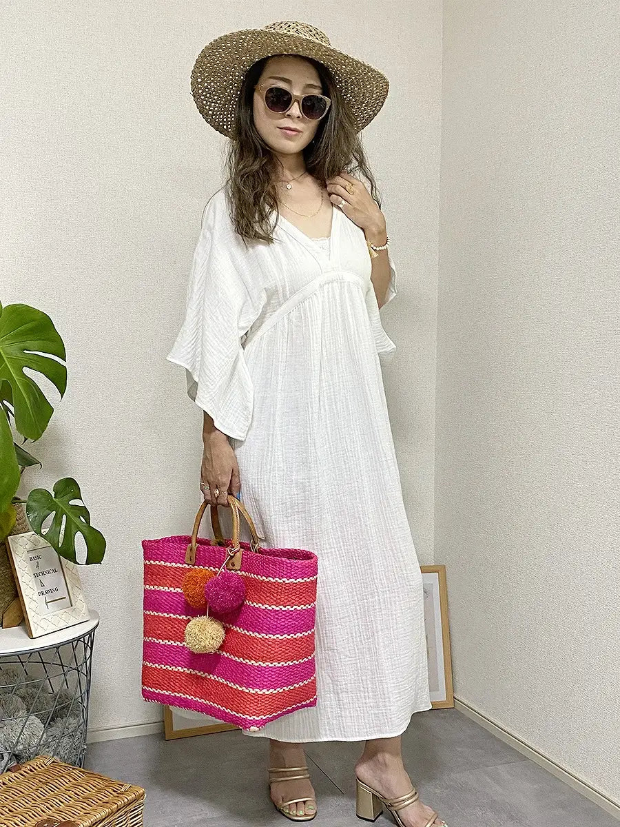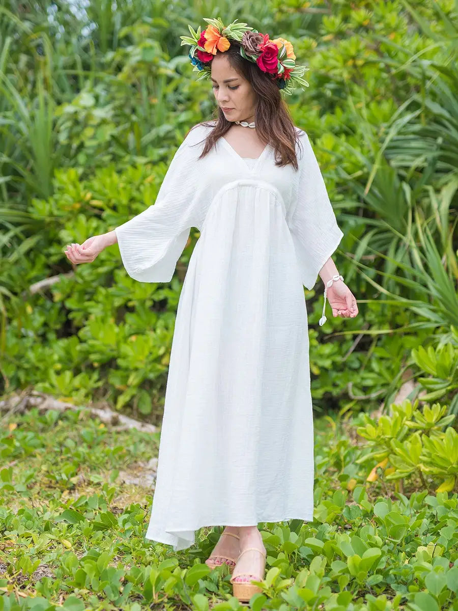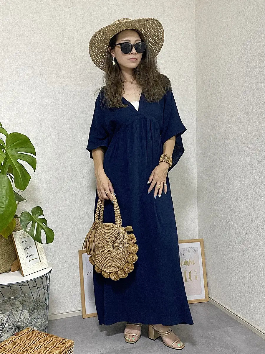 とっても柔らかくて軽いかーぜのようなコットン生地のマキシワンピースです。