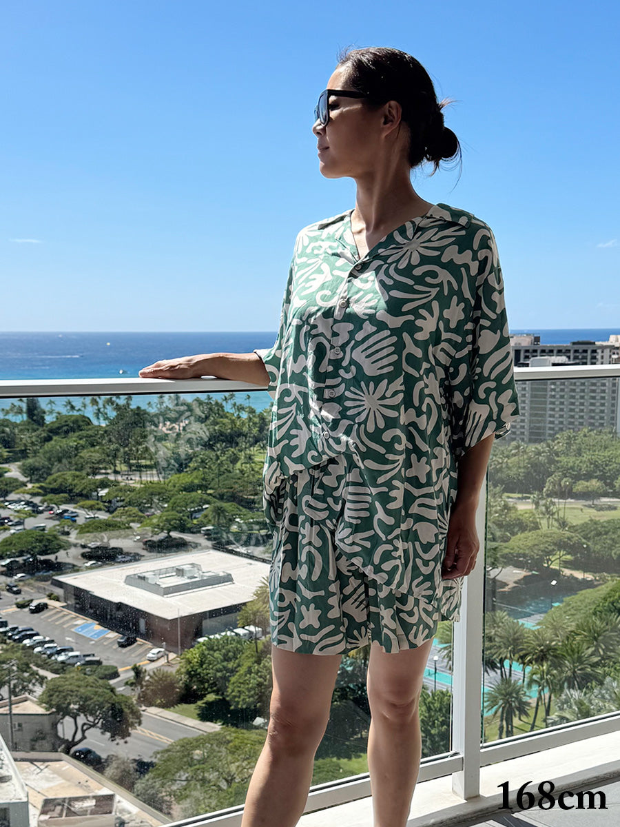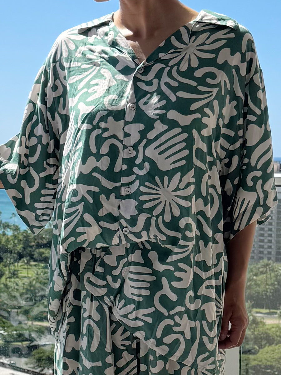 Sea Harbour(シーハーバー)ハワイアンリラックスセットアップ/グリーン