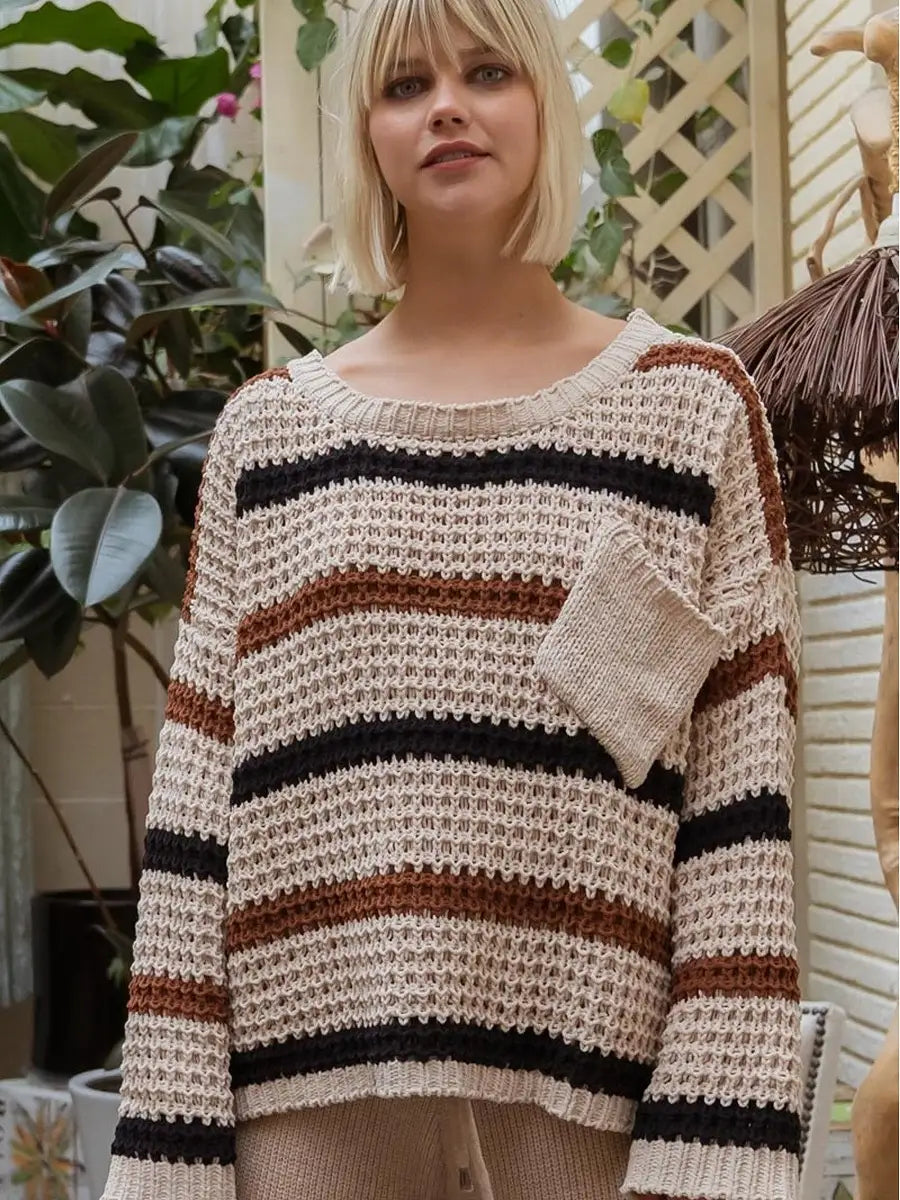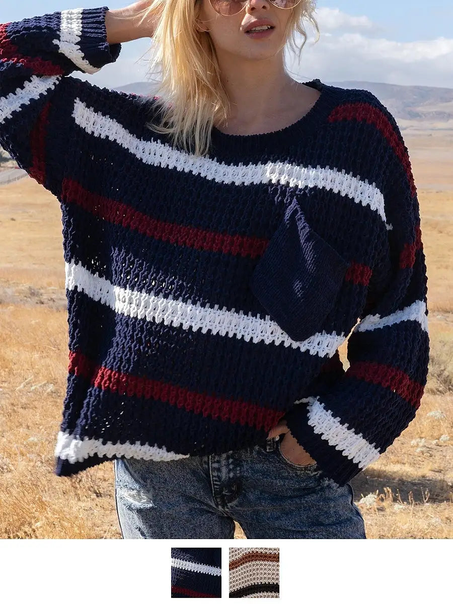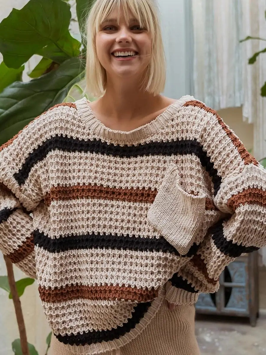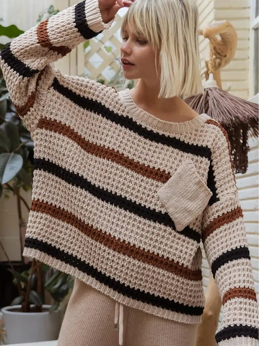 ゆるいシルエットが可愛いボーダー柄ニットセーターです。