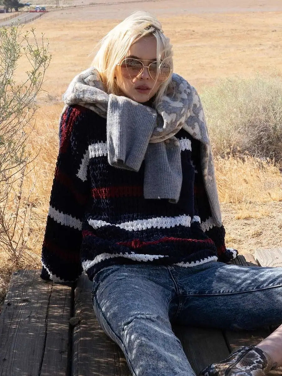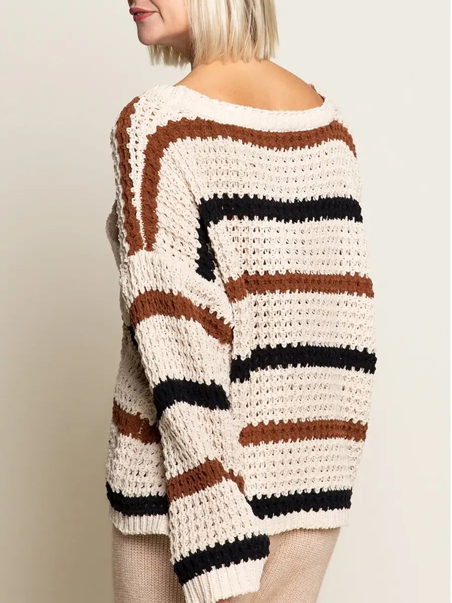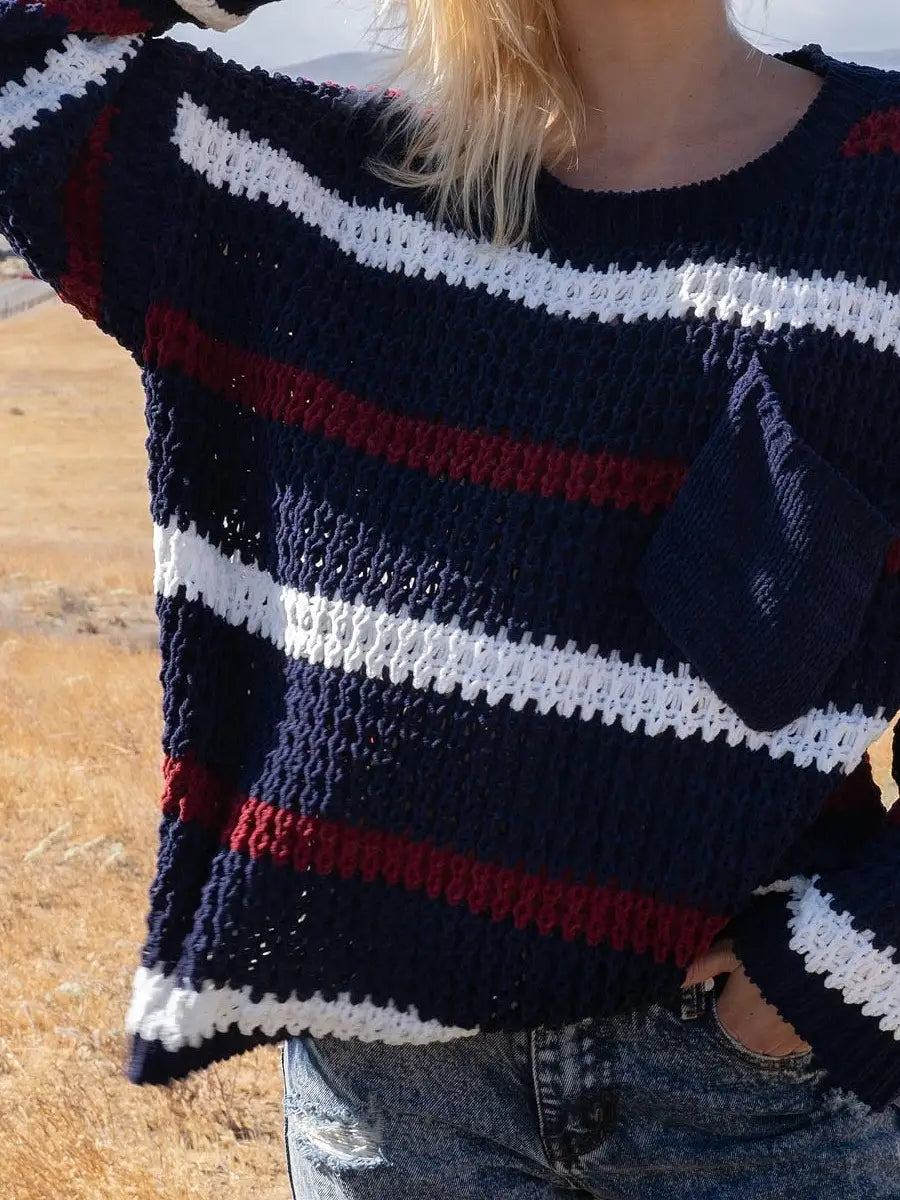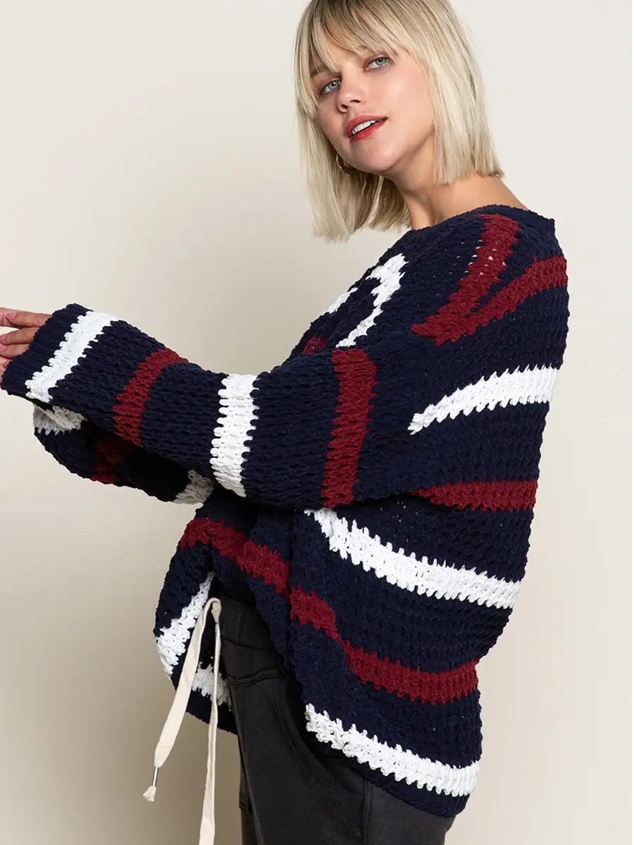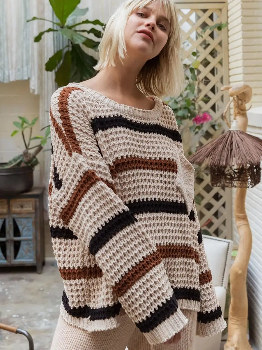 ゆるいシルエットが可愛いボーダー柄ニットセーターです。