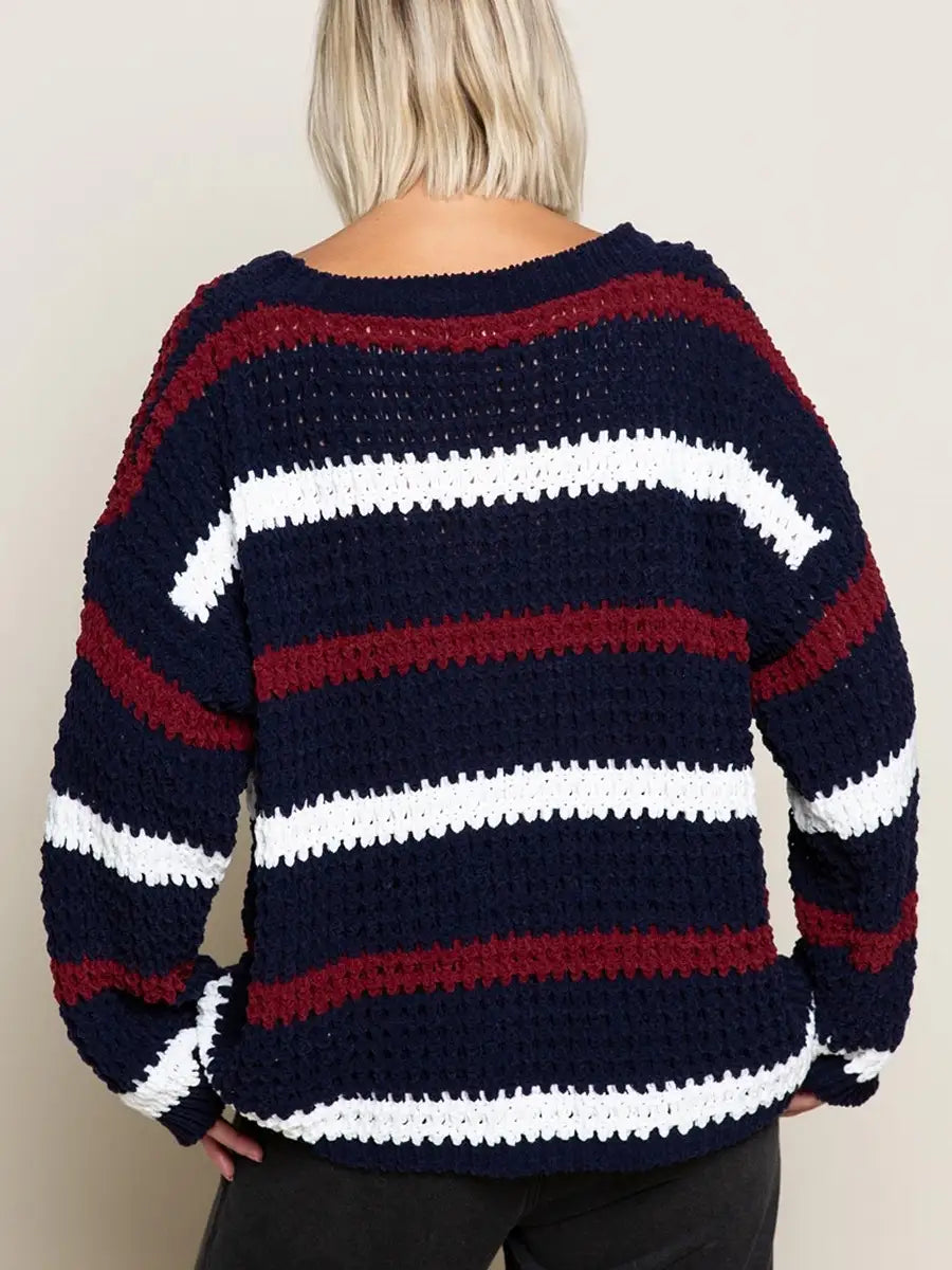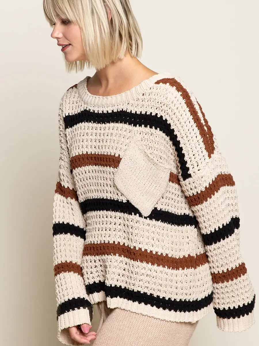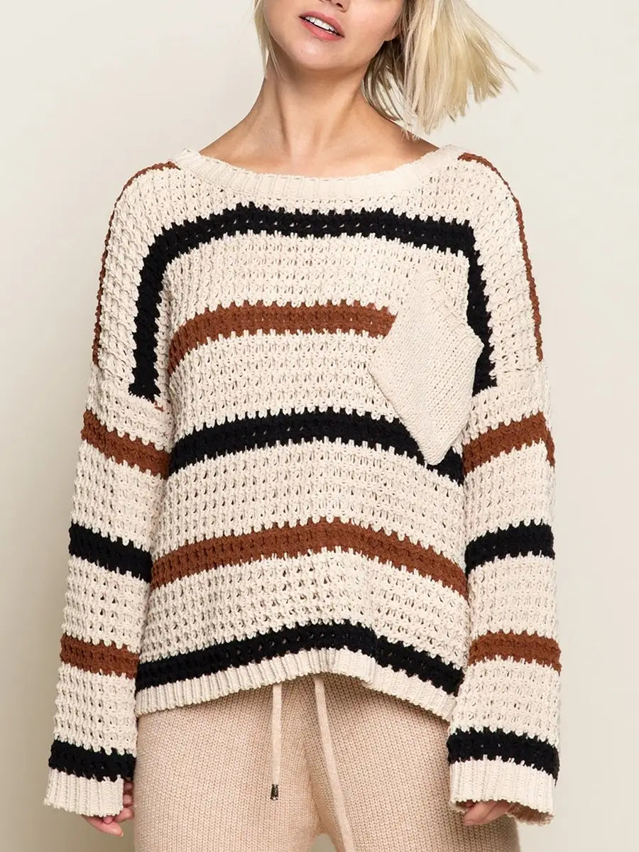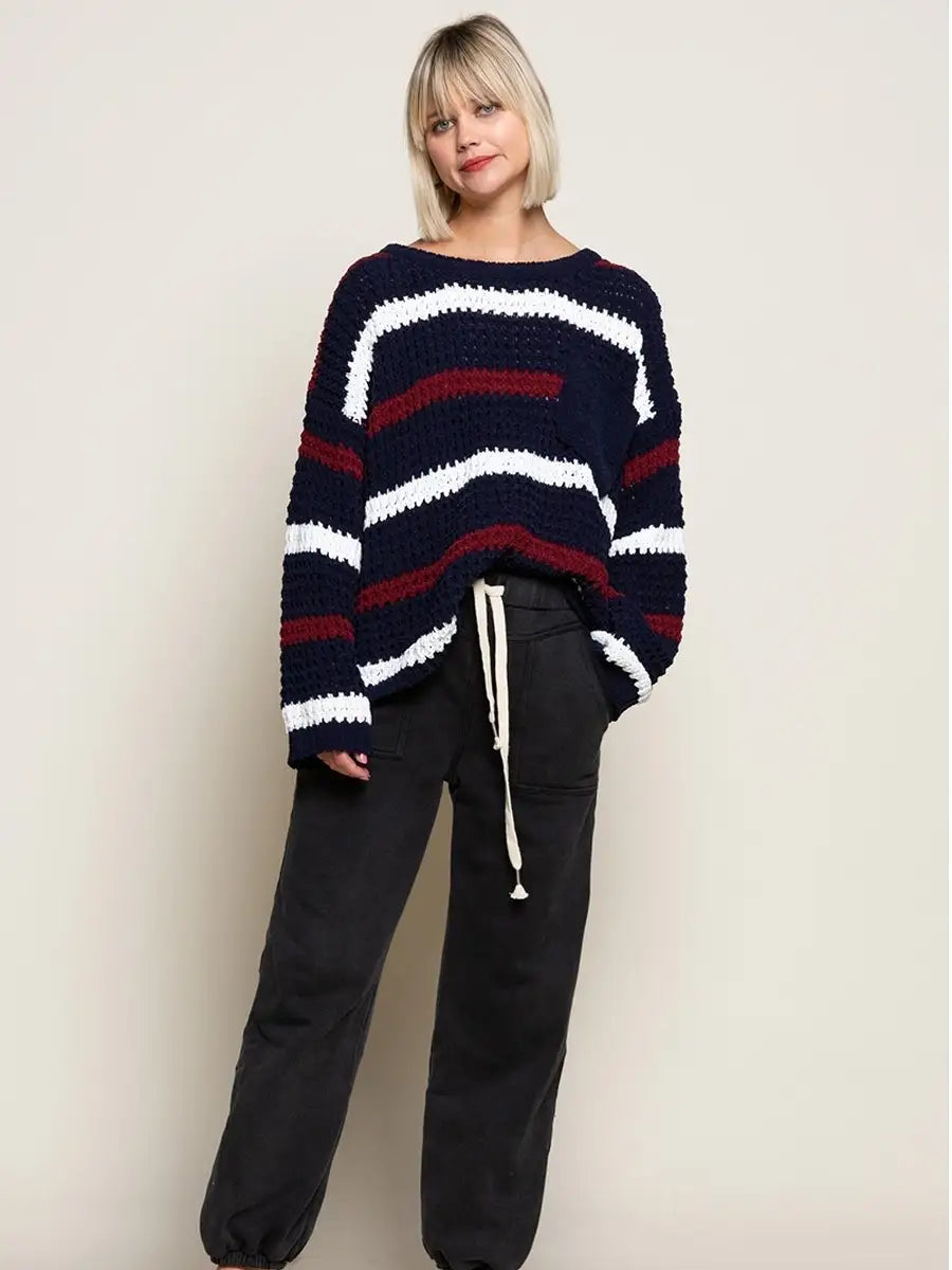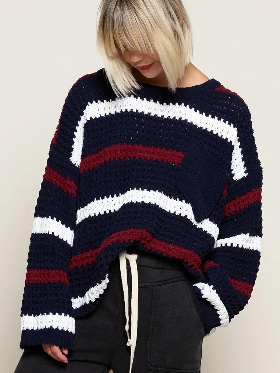 POL(ポル)ボーダー柄ラウンドネックゆるニット