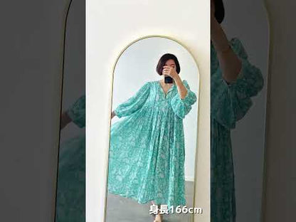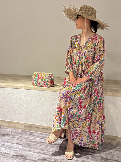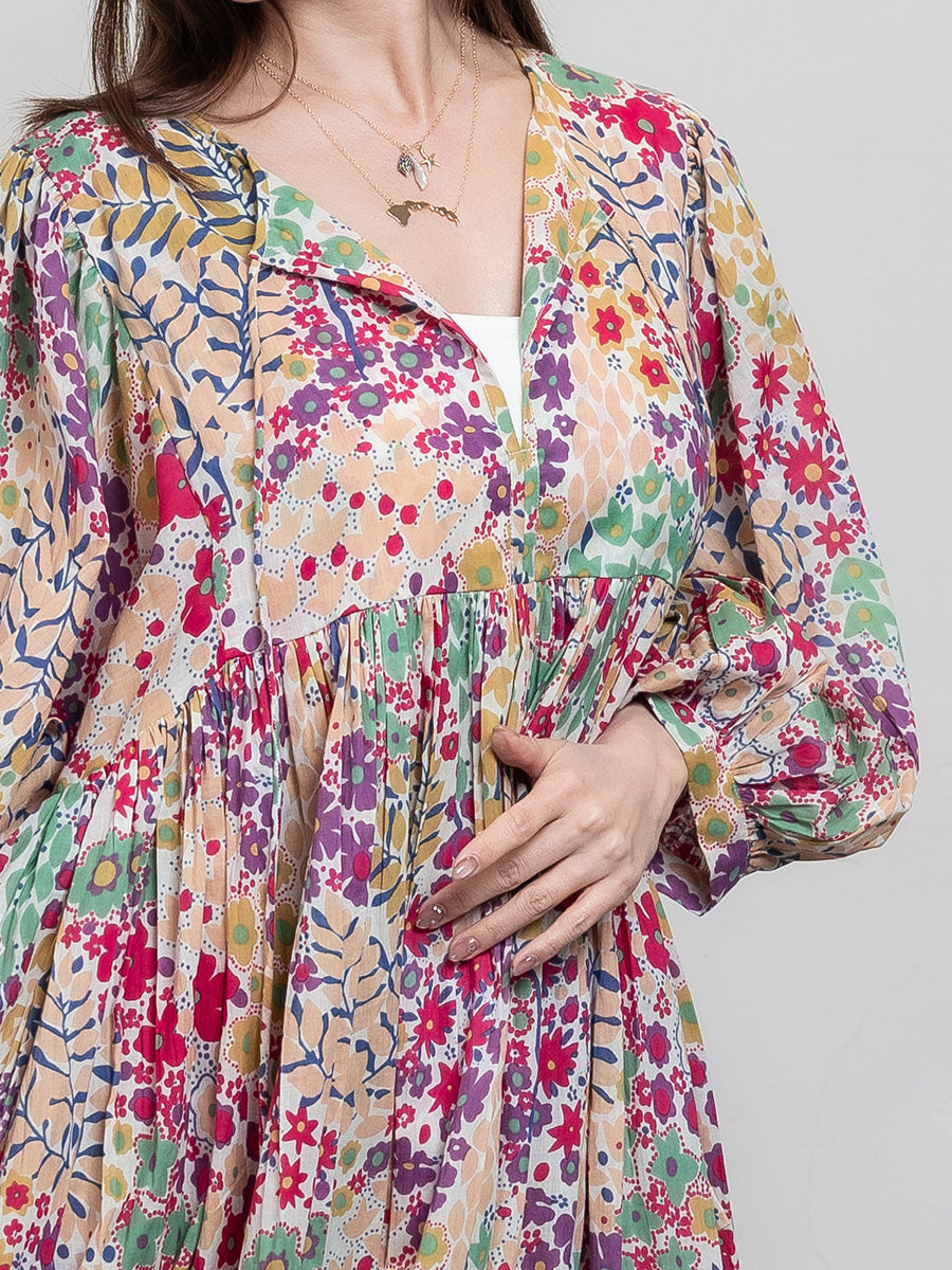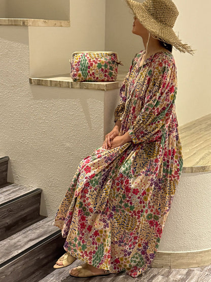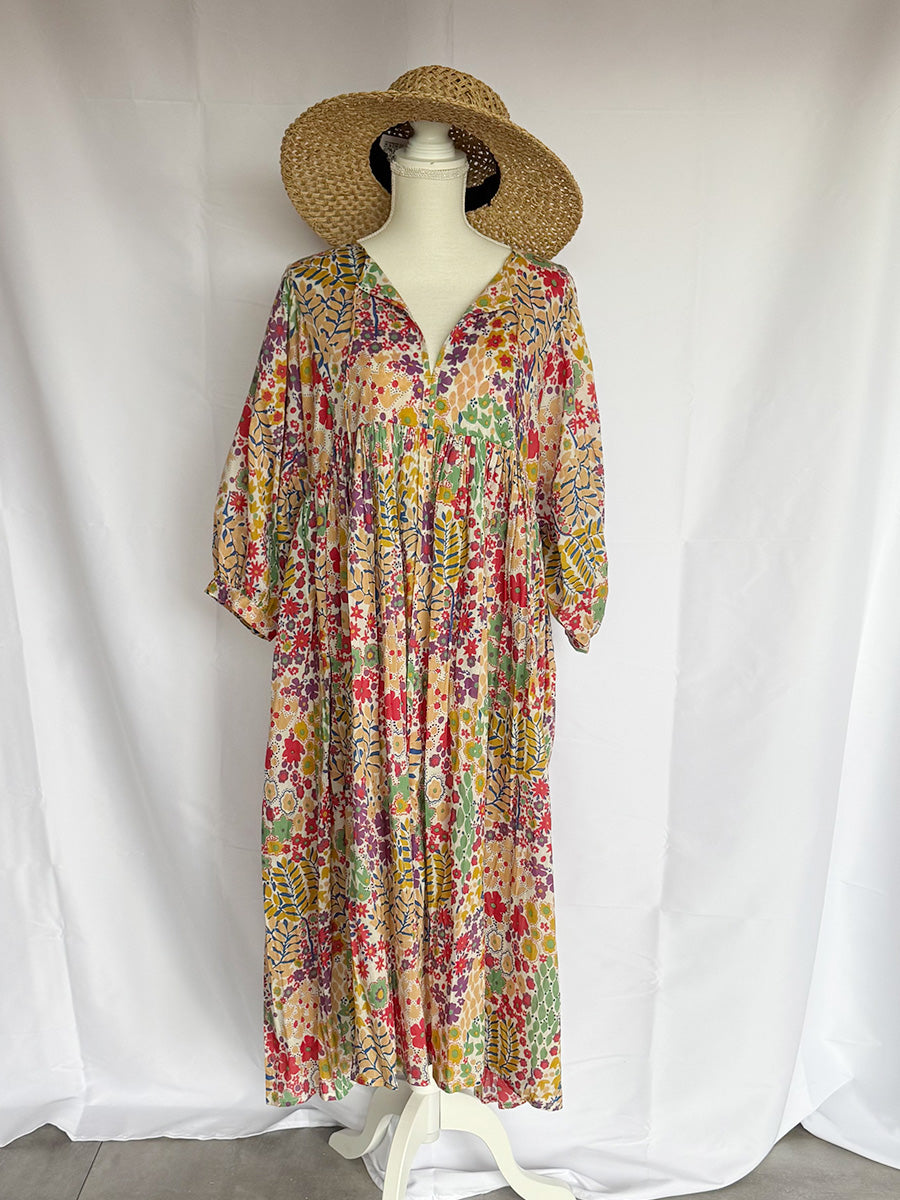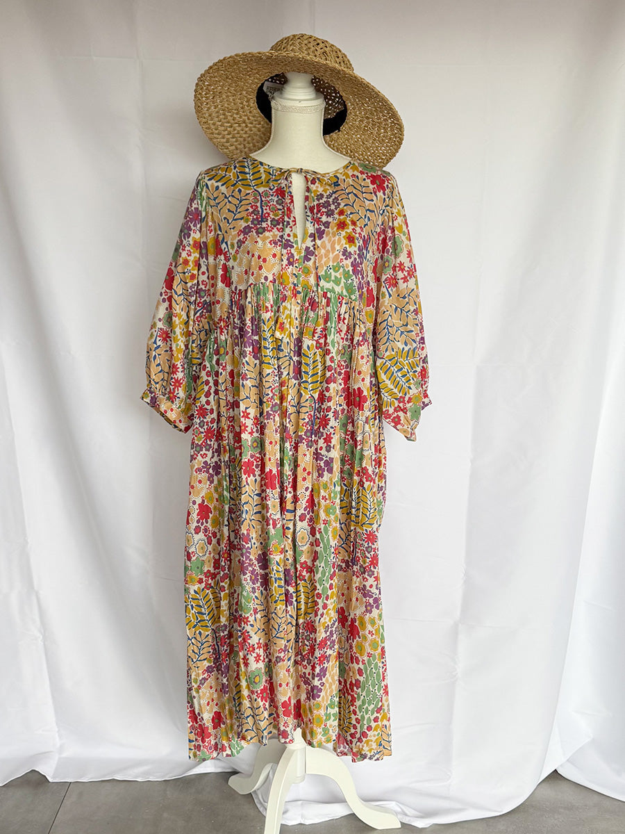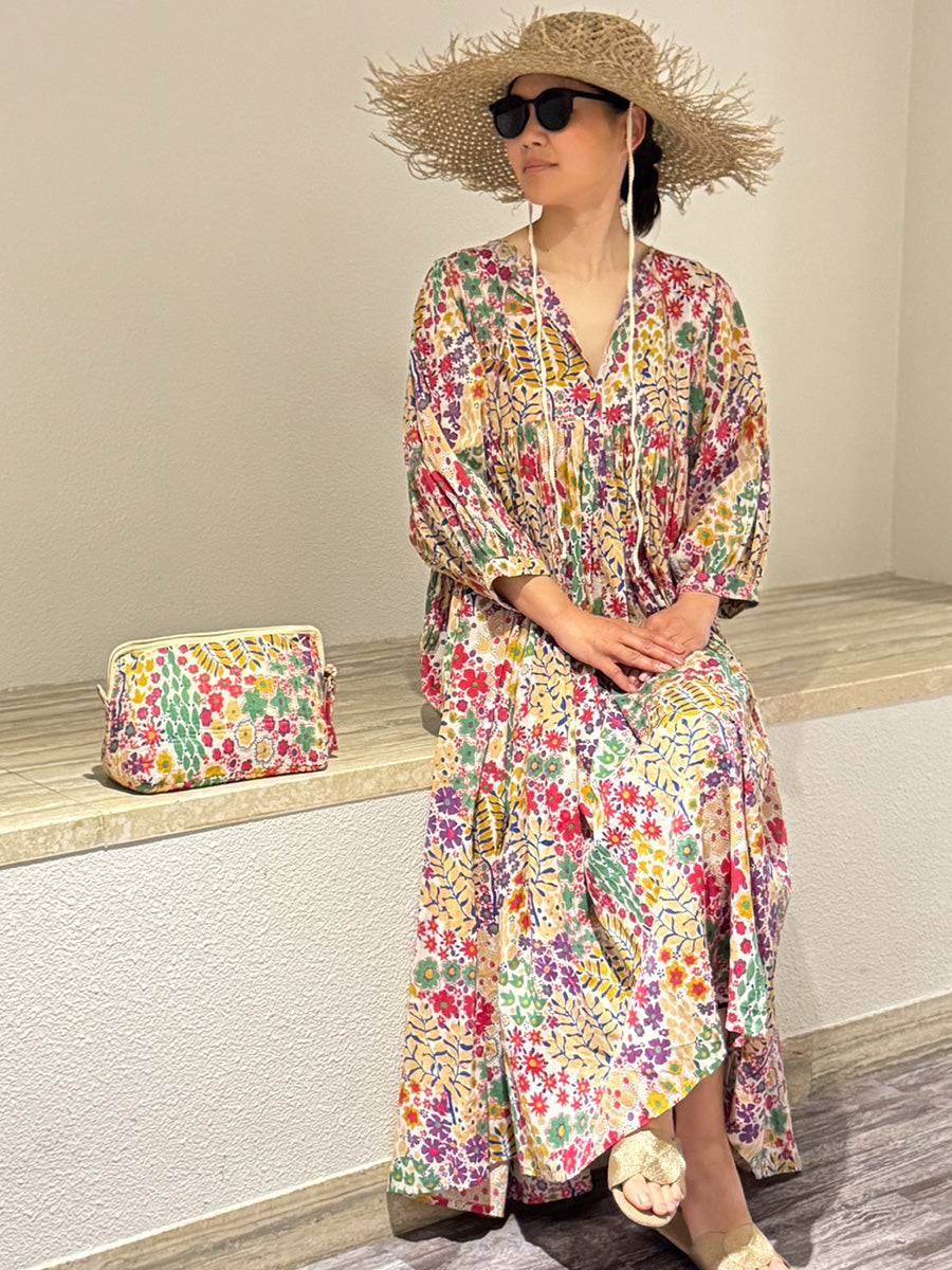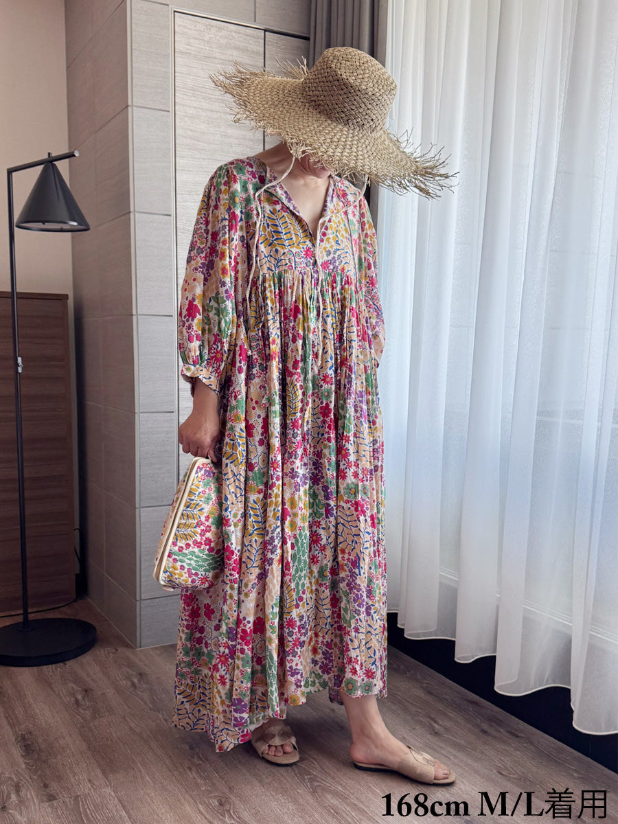 Eighty Seven(エイティセブン)インド綿フレア長袖ワンピース/カラフル花柄