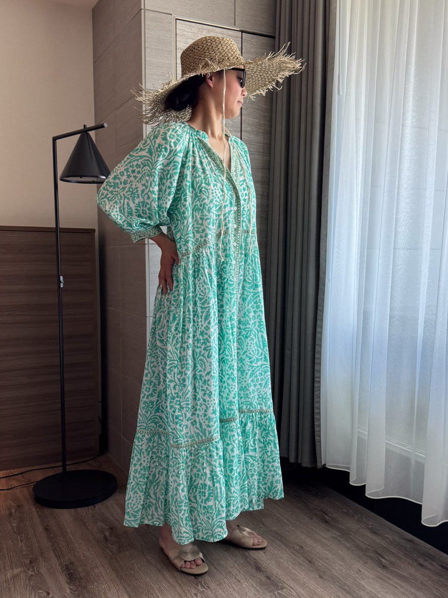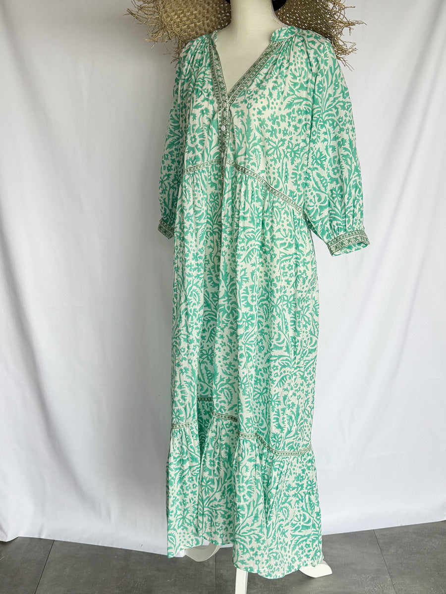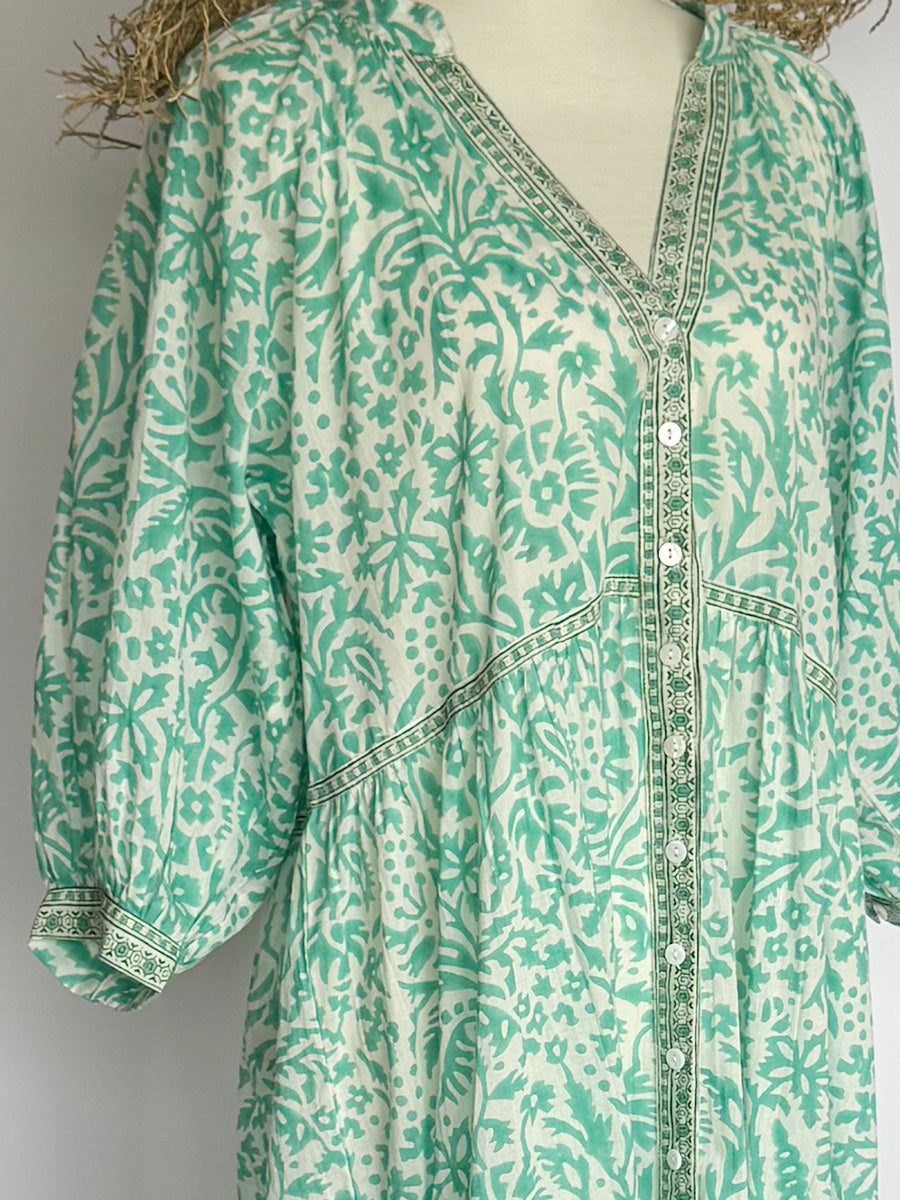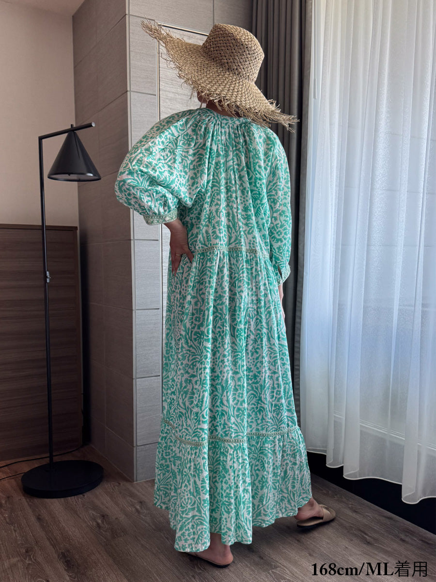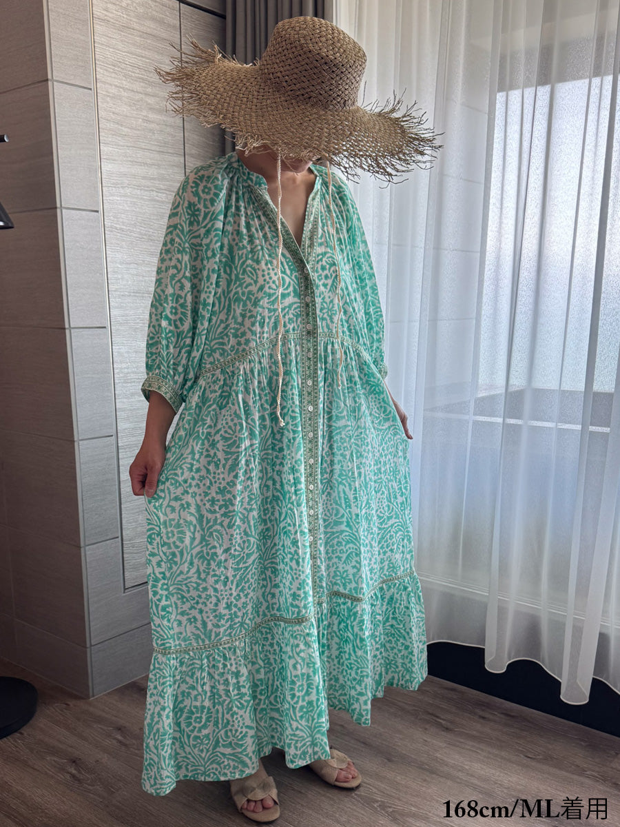 Eighty Seven(エイティセブン)インド綿フレア前ボタンワンピース