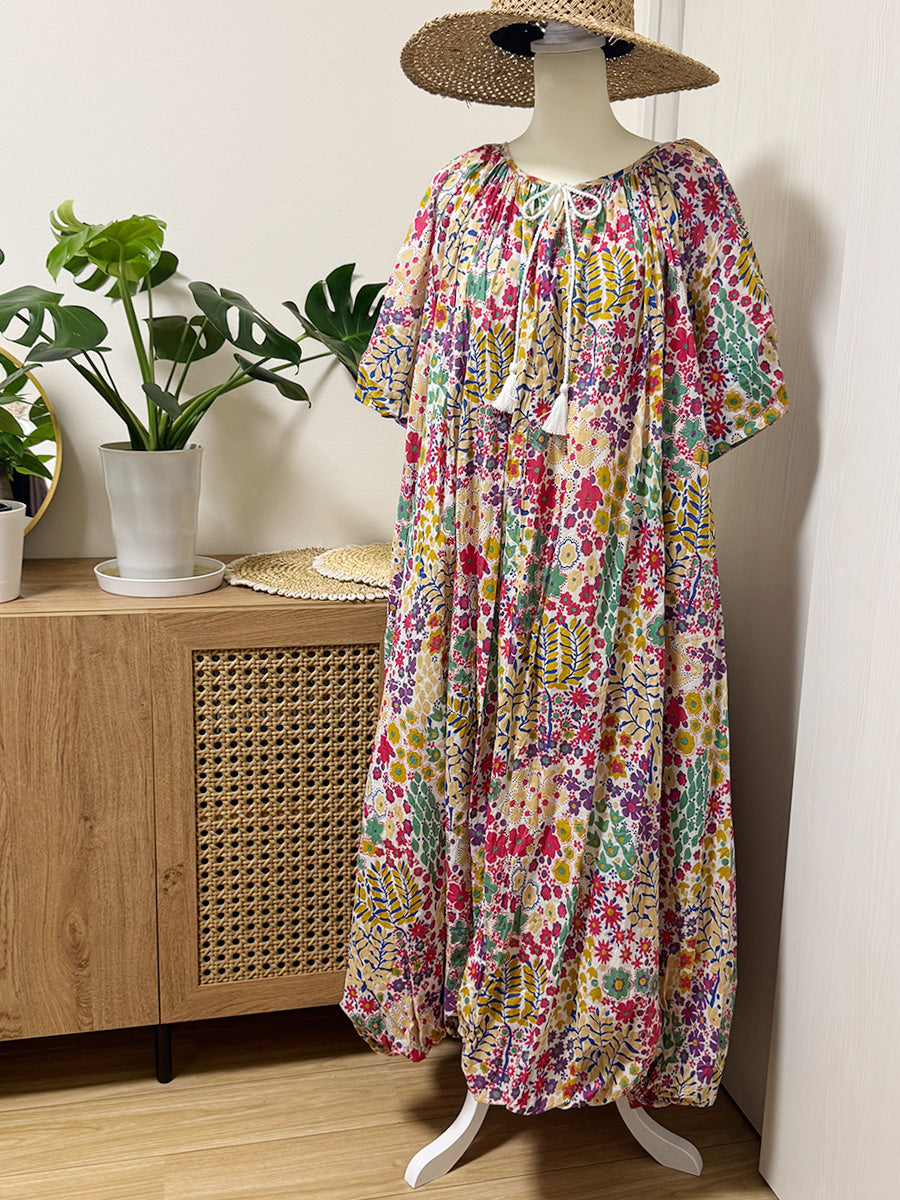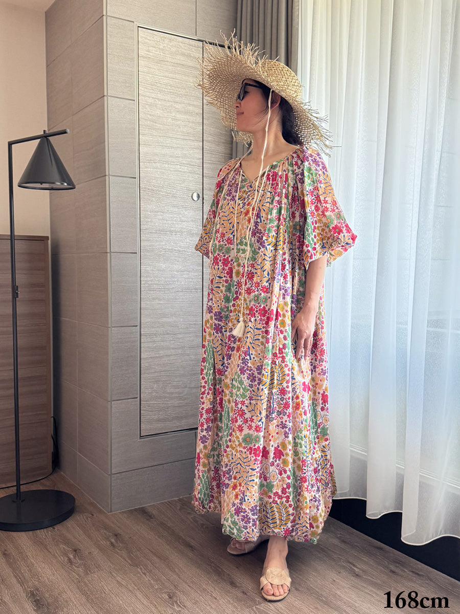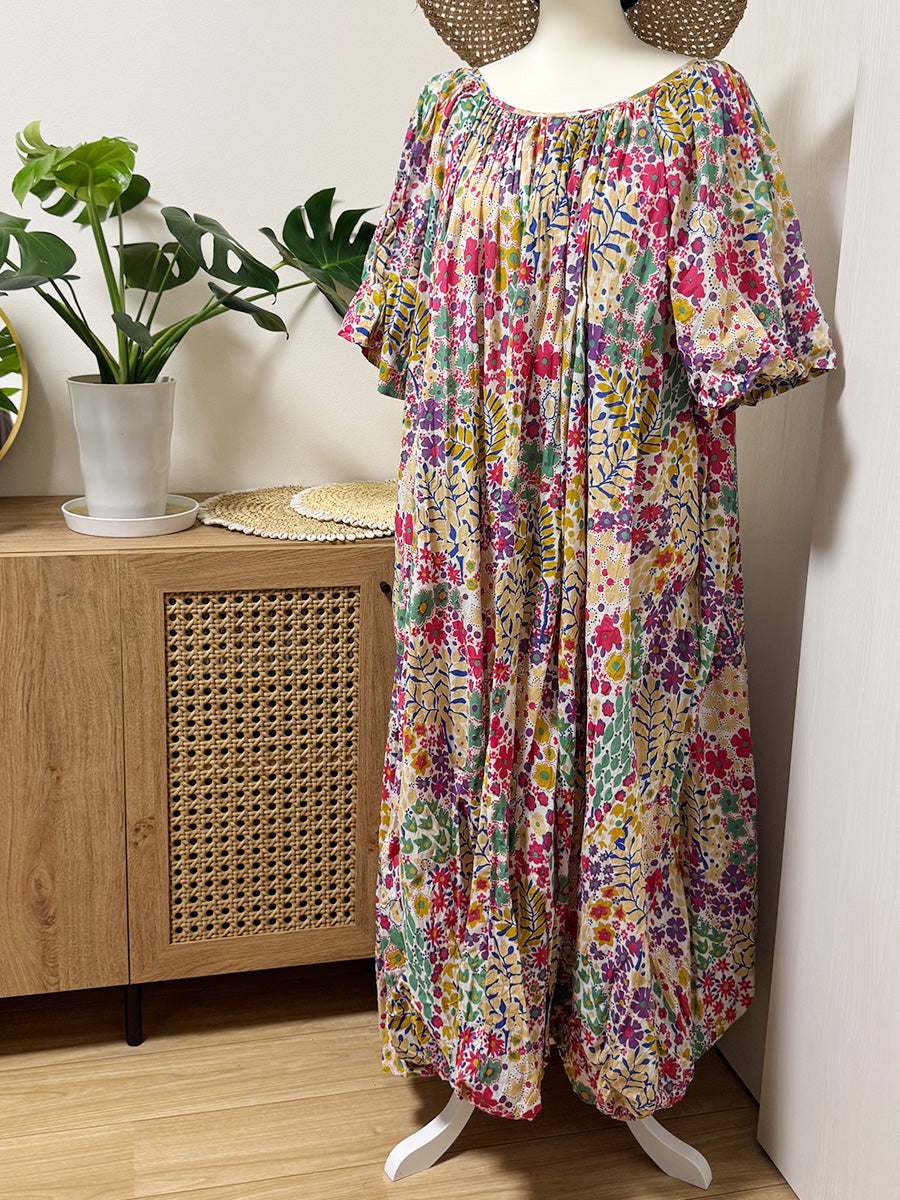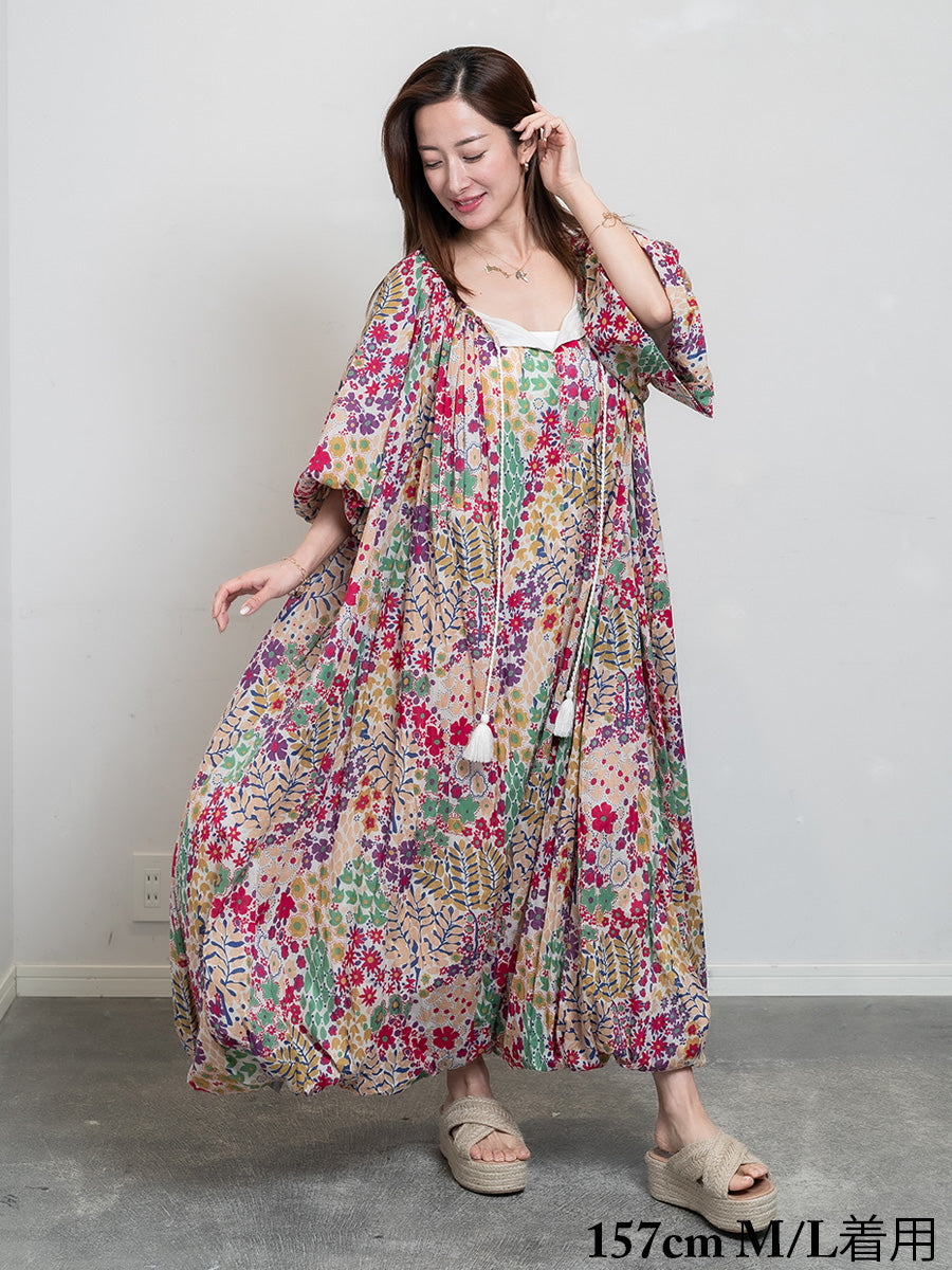 Eighty Seven(エイティセブン)インド綿バルーンワンピース/カラフル花柄