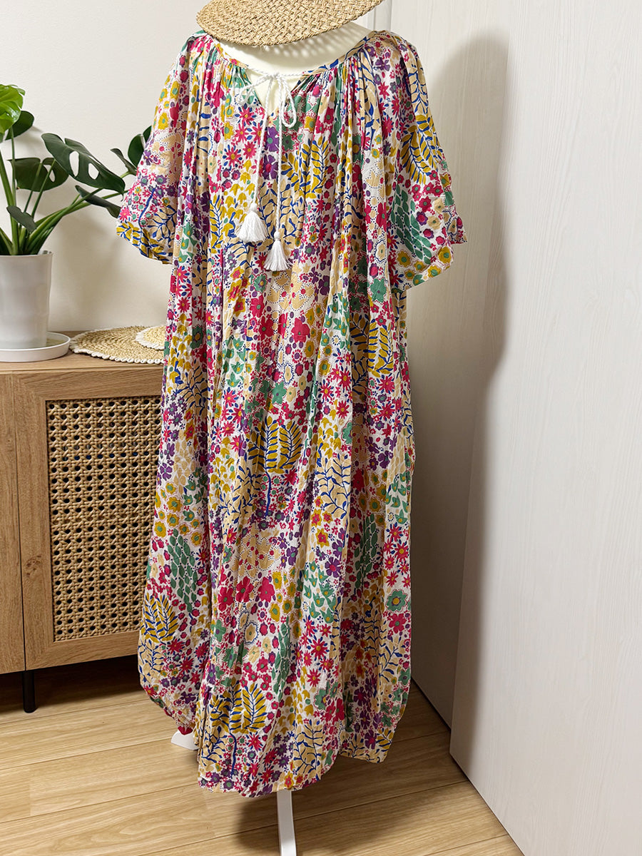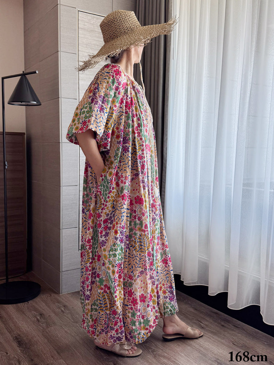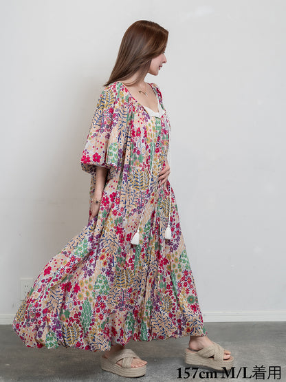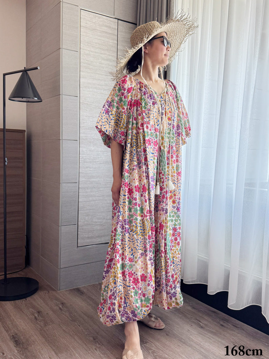 Eighty Seven(エイティセブン)インド綿バルーンワンピース/カラフル花柄