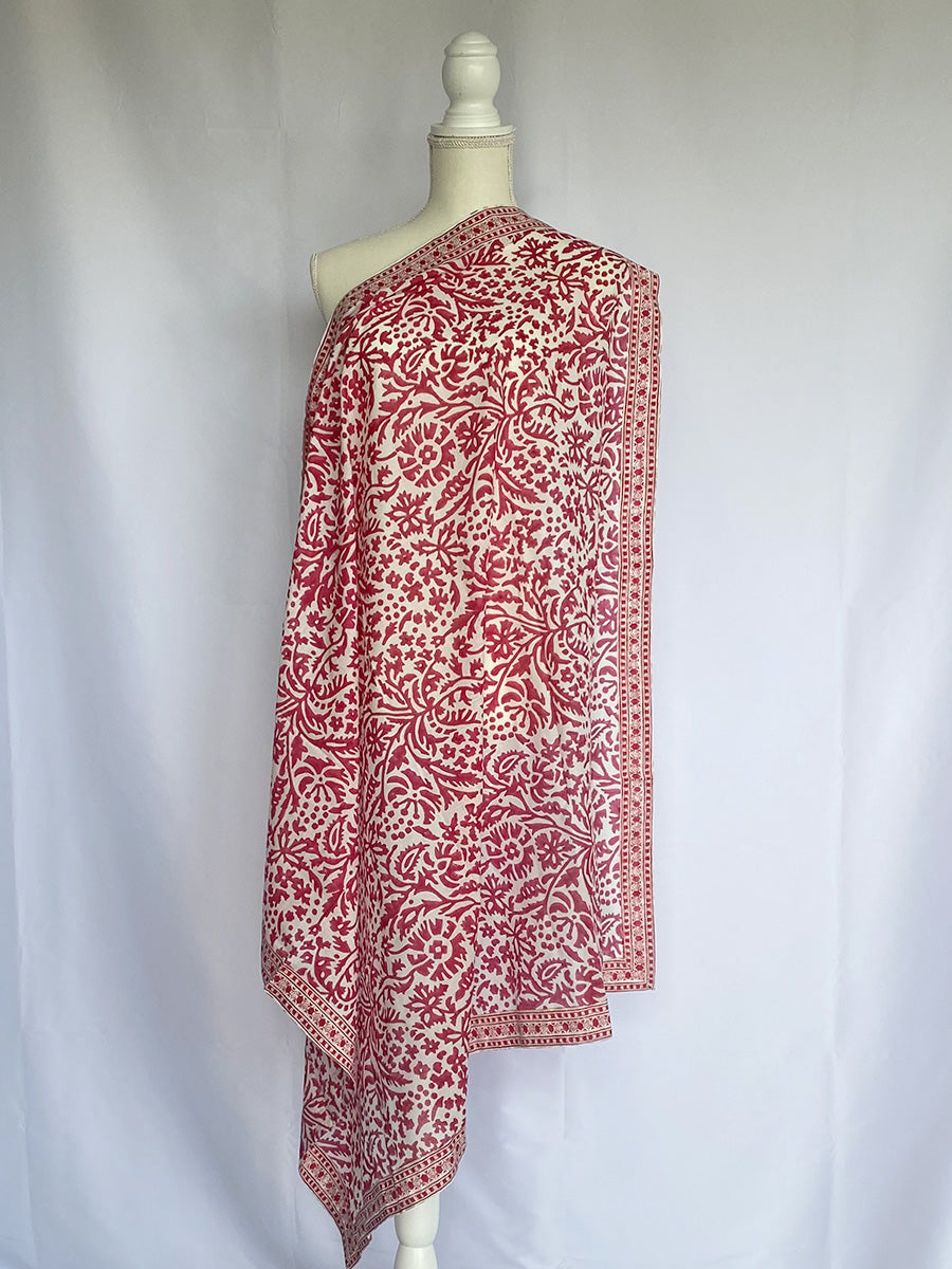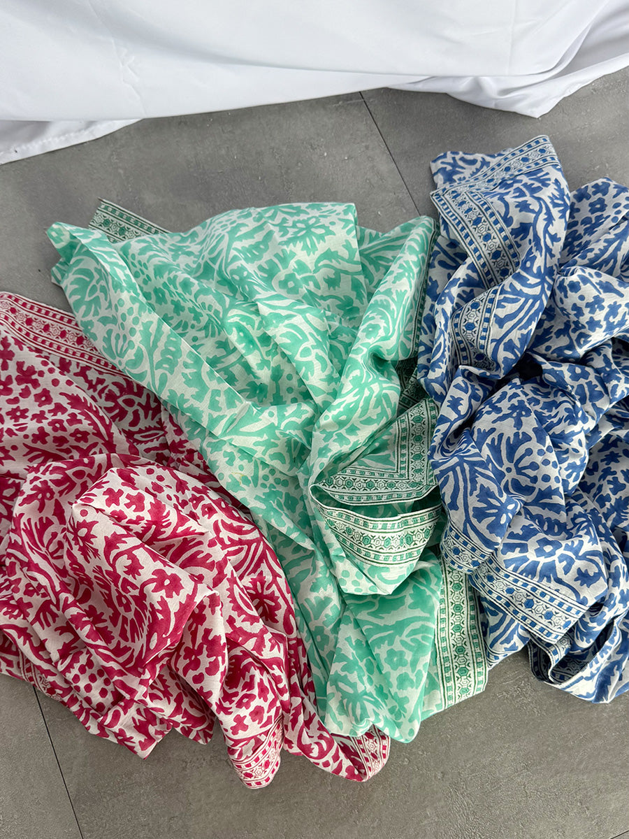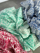 ふんわり軽やかなインド綿に、職人の手で丁寧に仕上げたブロックプリント柄をあしらった大判ハンカチ。