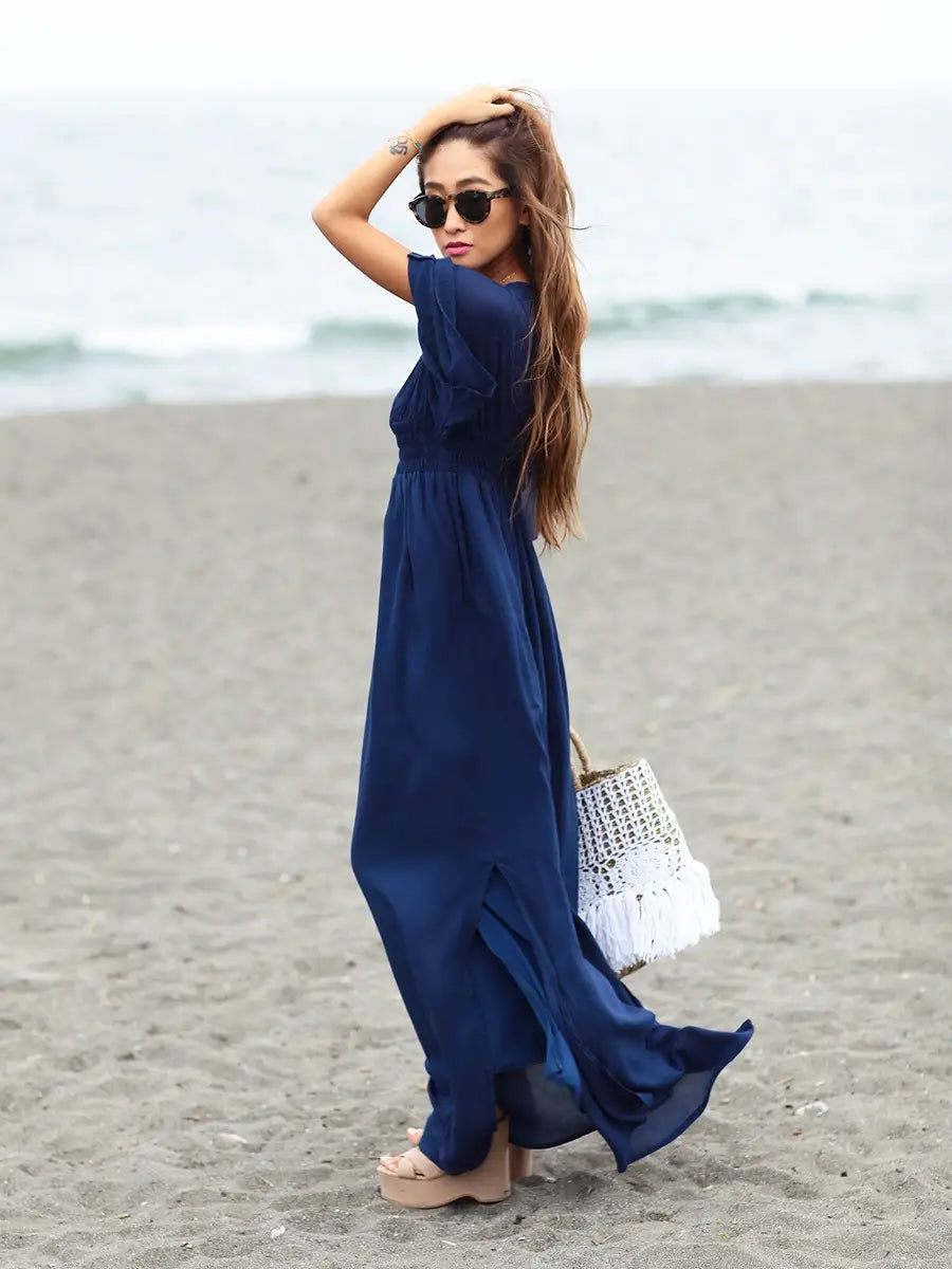 ビーチでもシティでも場所を選ばずサラッと1枚で大活躍する大人のマキシワンピースです!