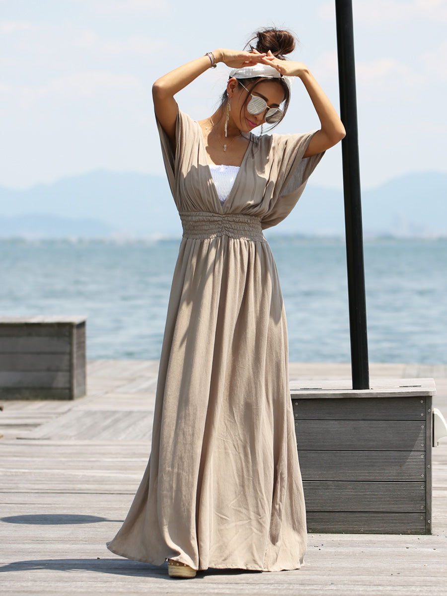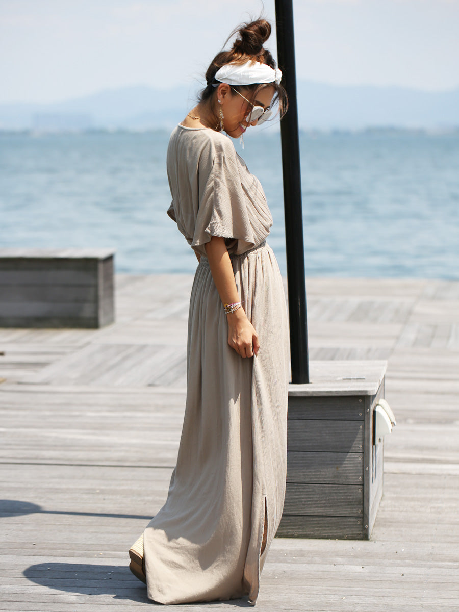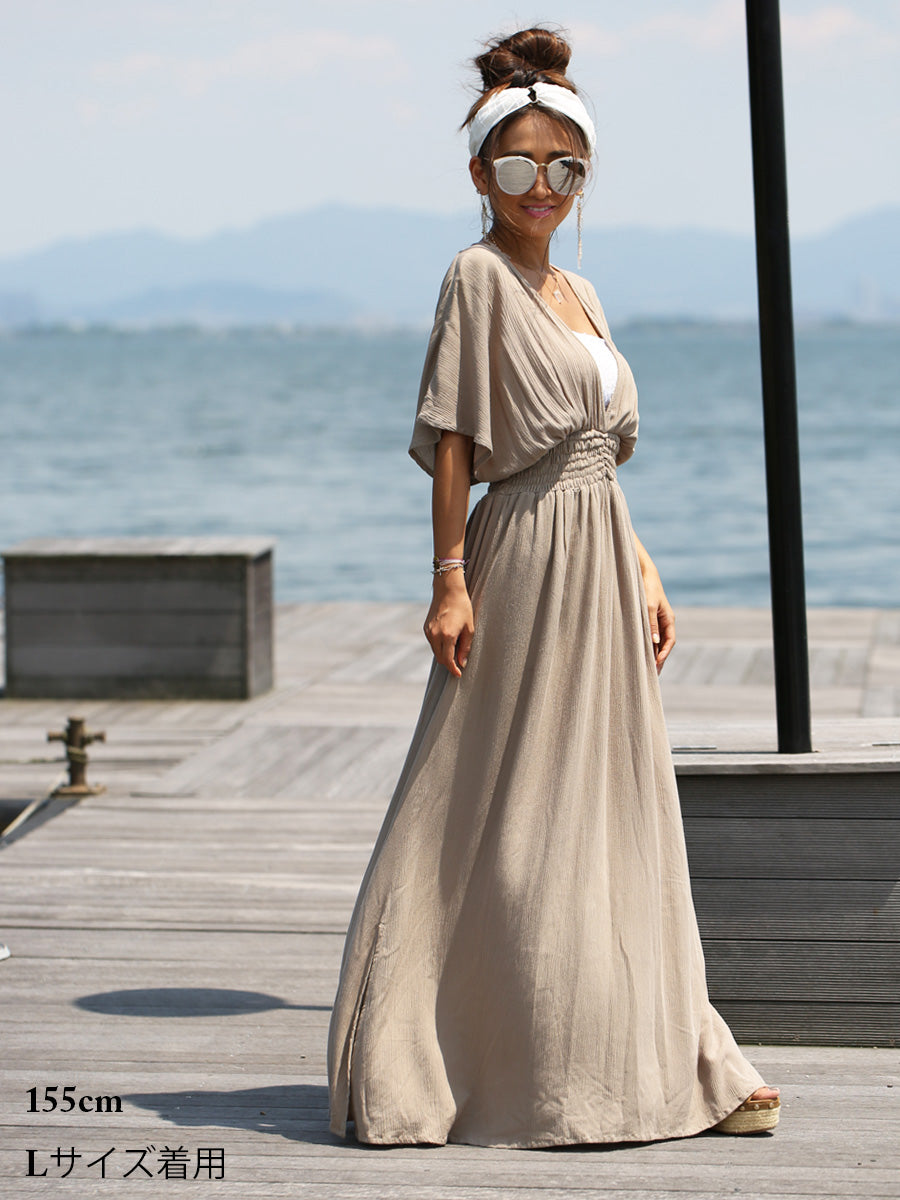 ビーチでもシティでも場所を選ばずサラッと1枚で大活躍する大人のマキシワンピースです!