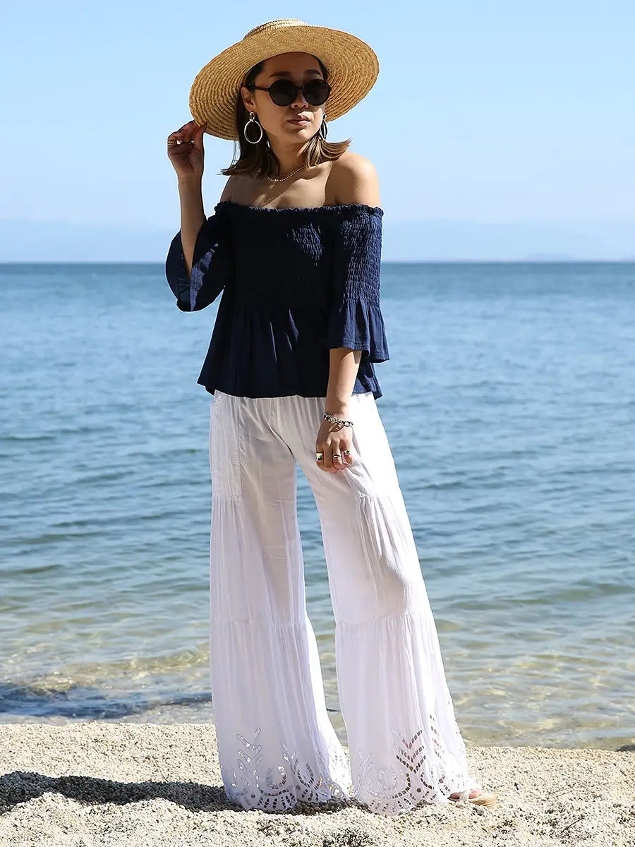 美脚シルエット白のワイドパンツは夏のマストITEMです。