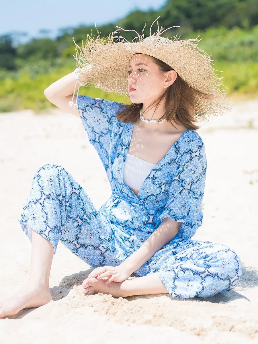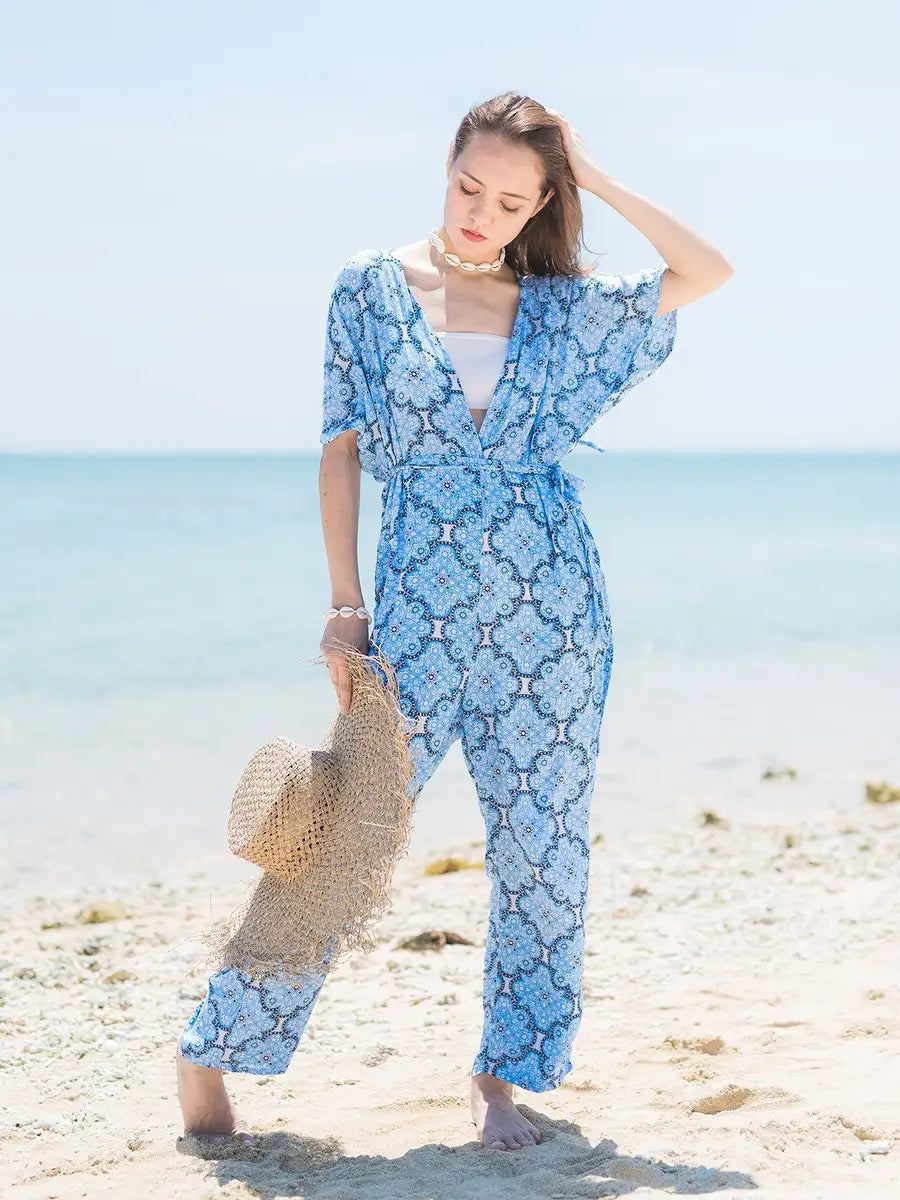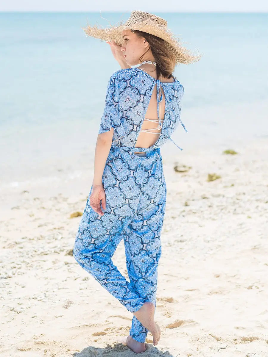 爽やかなブルーをベースにしたモロッコ柄オールインワンです。