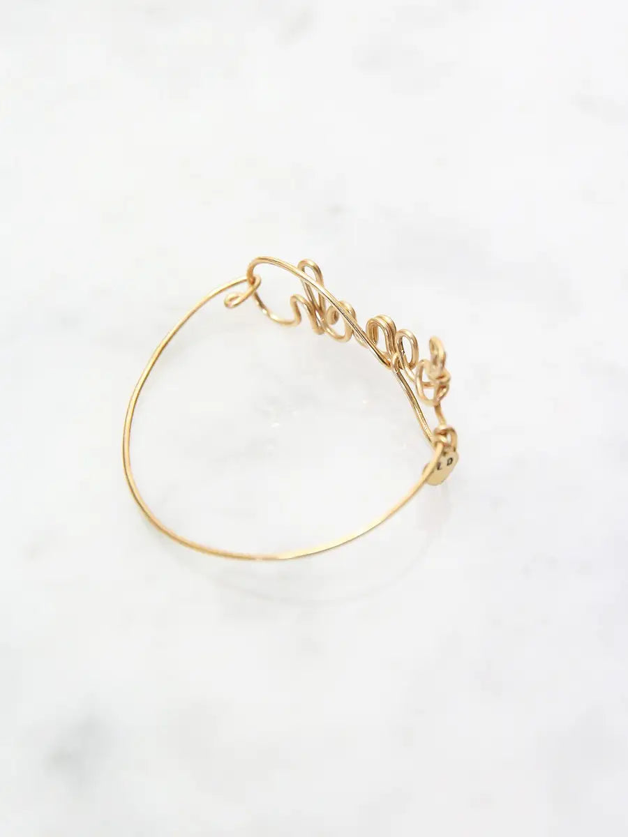 14金ゴールドフィルドワイヤーでBeach(ビーチ)のテキスト文字がデザインされた存在感のあるデザインです。