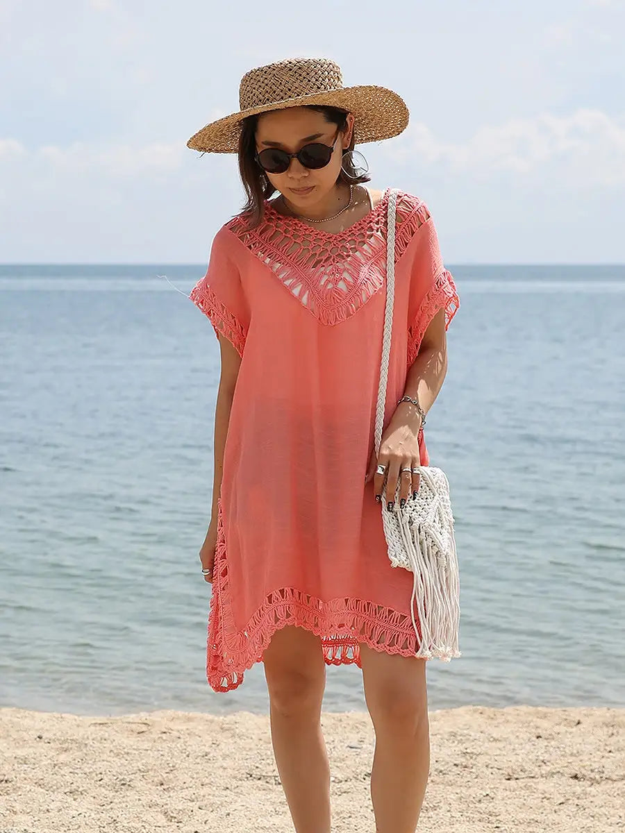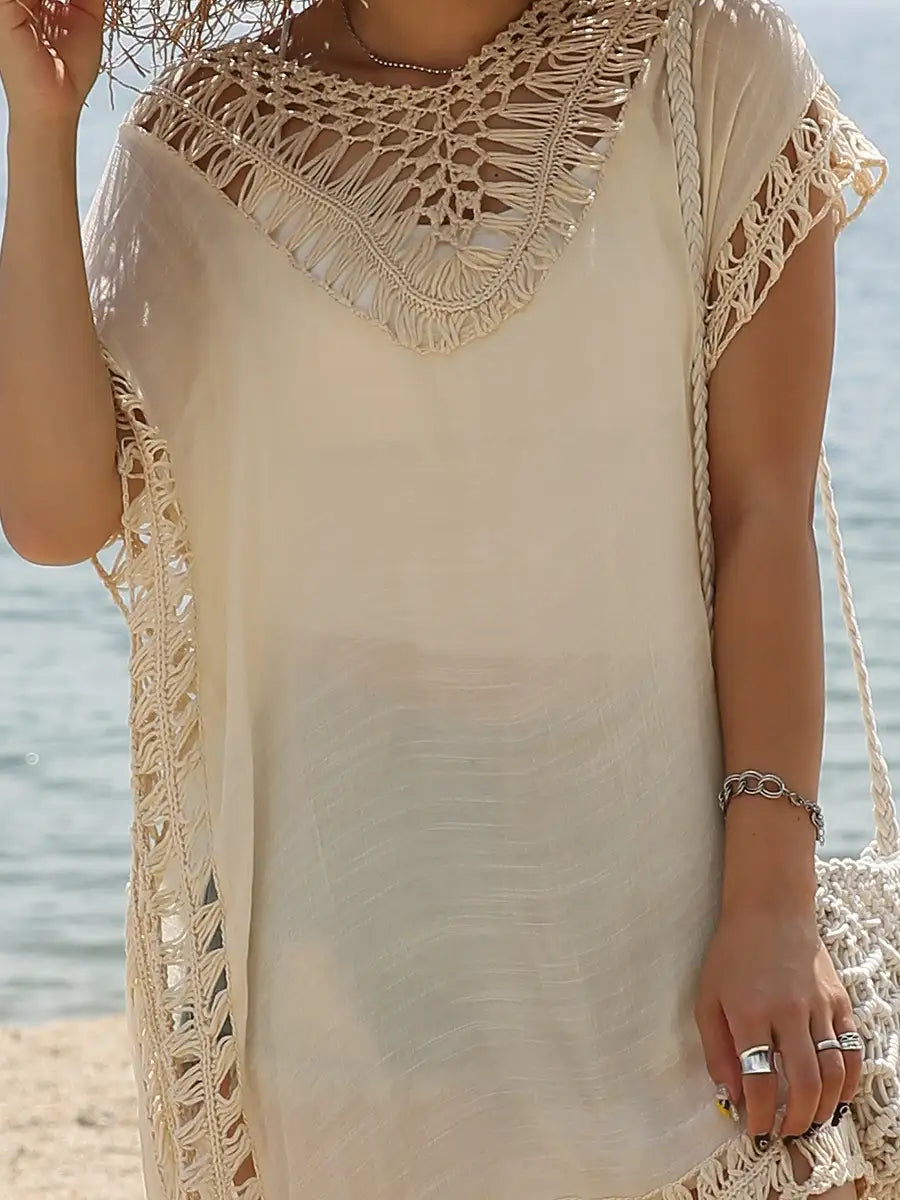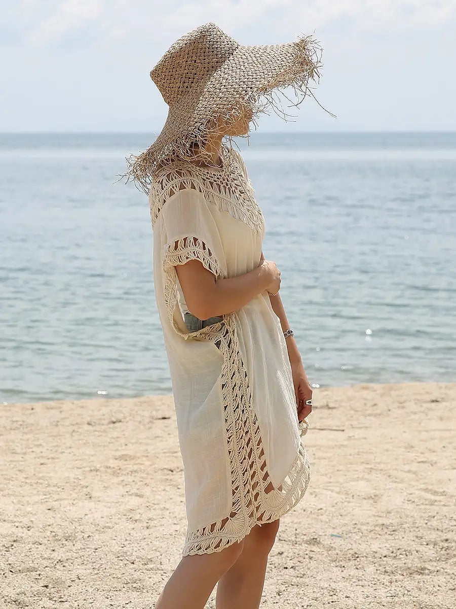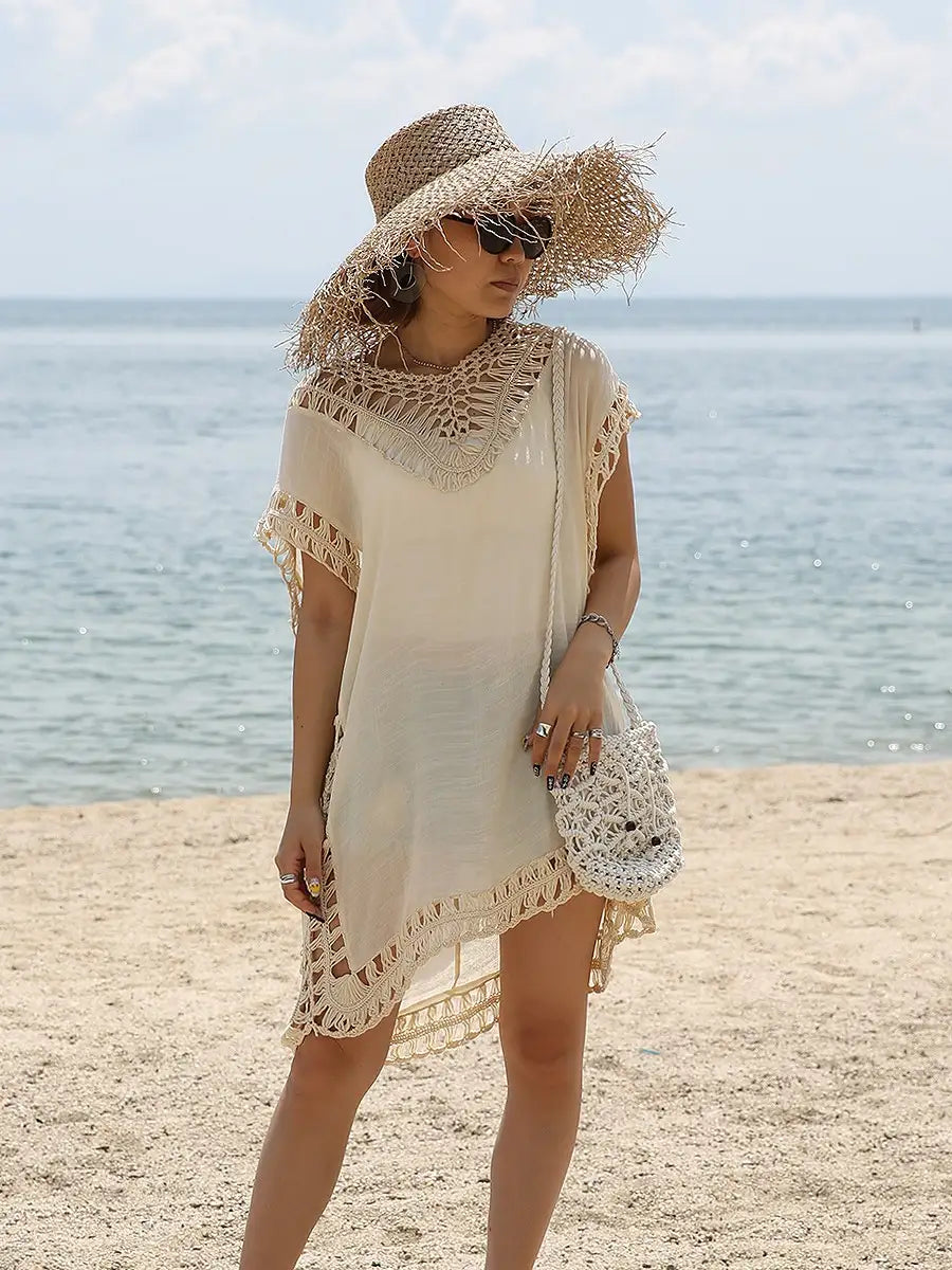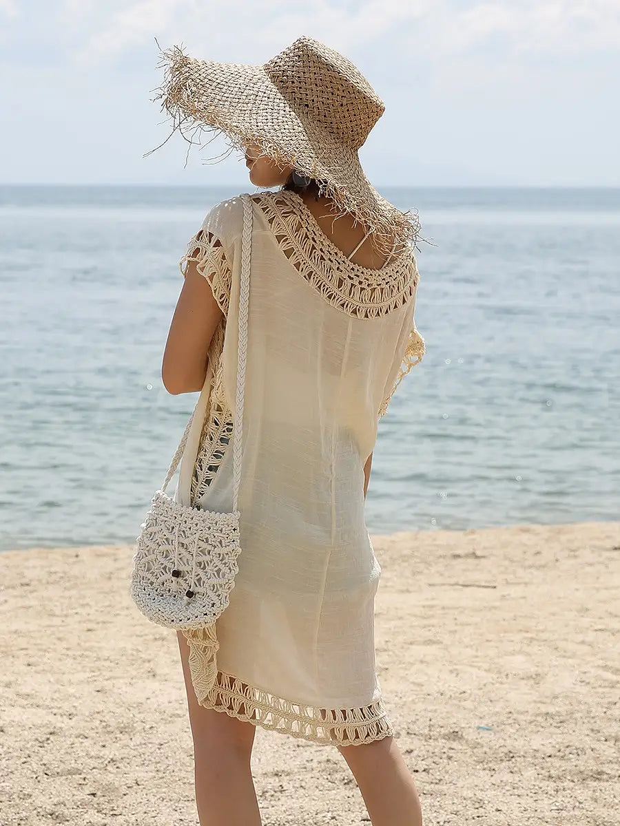 roomy by the sea(ルーミーバイザシー)クロシェあ編みがお洒落な薄手チュニックワンピース。