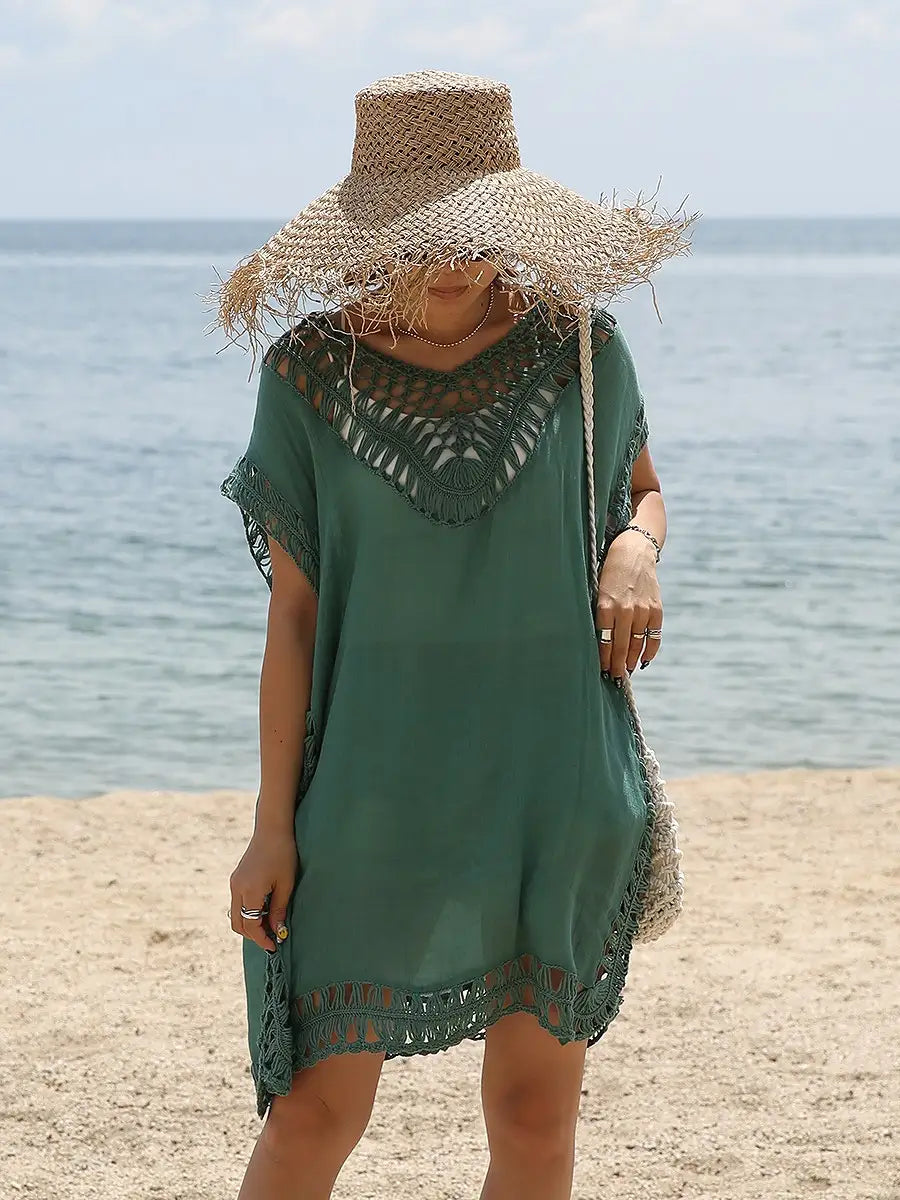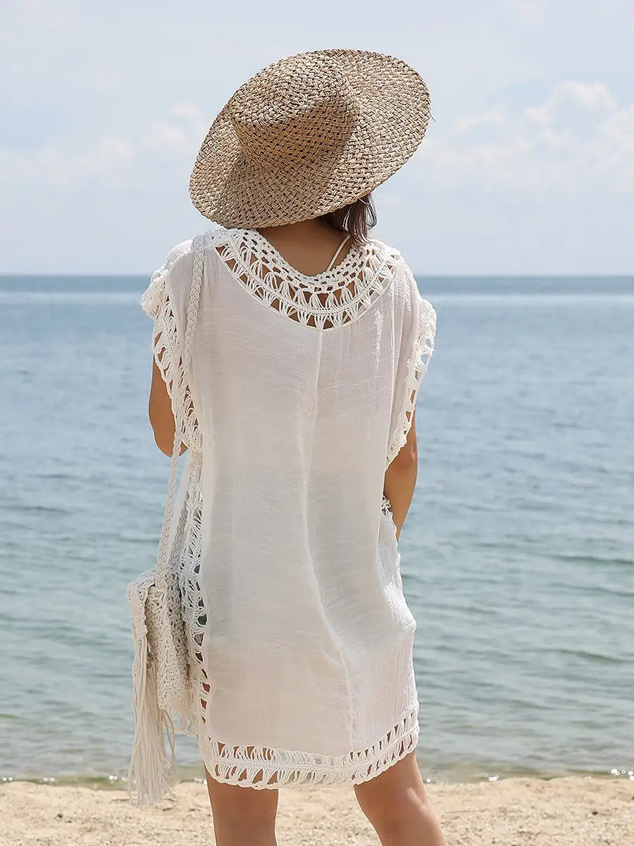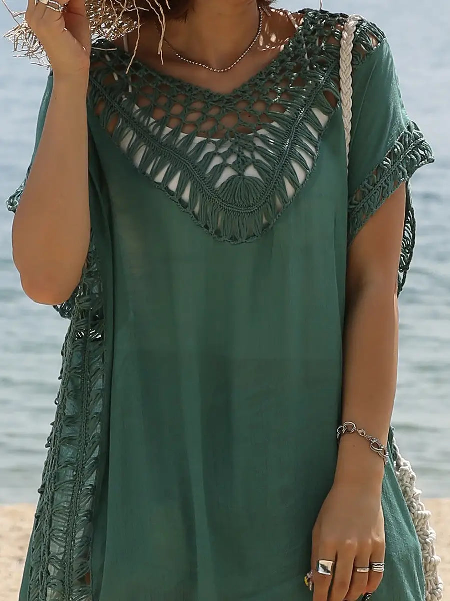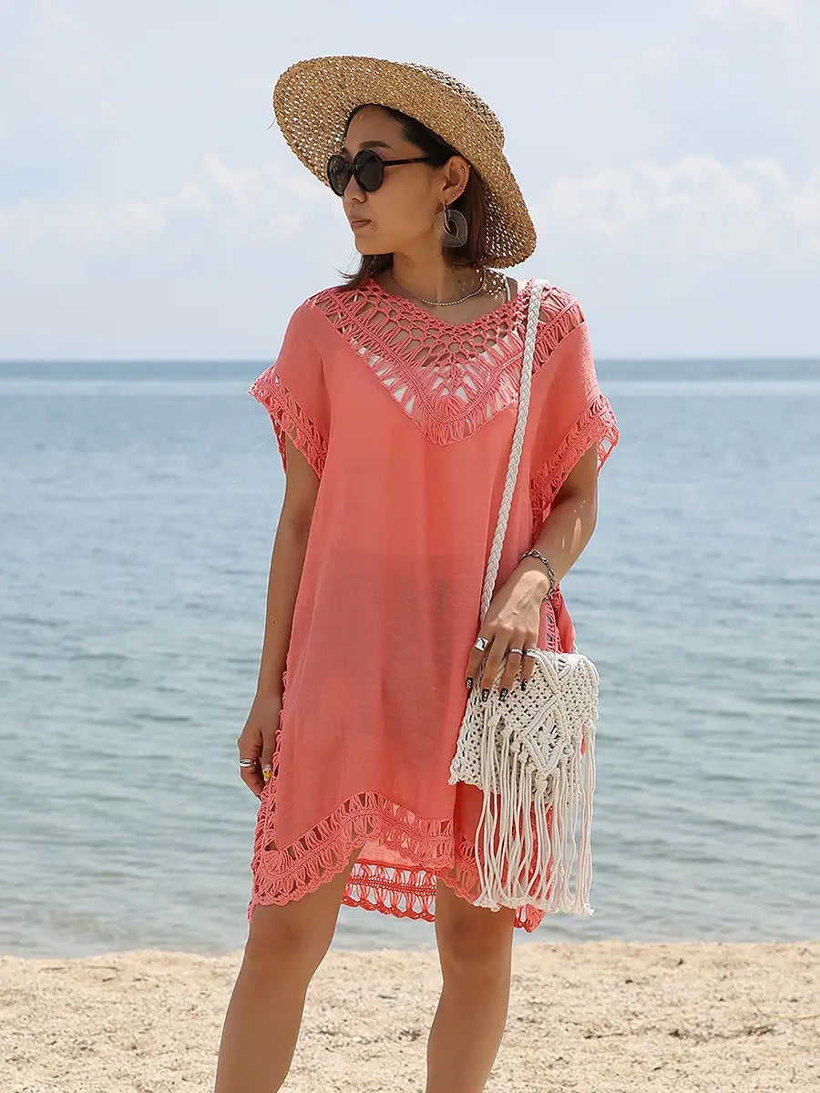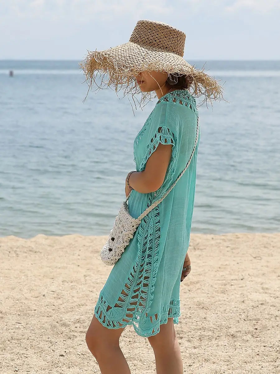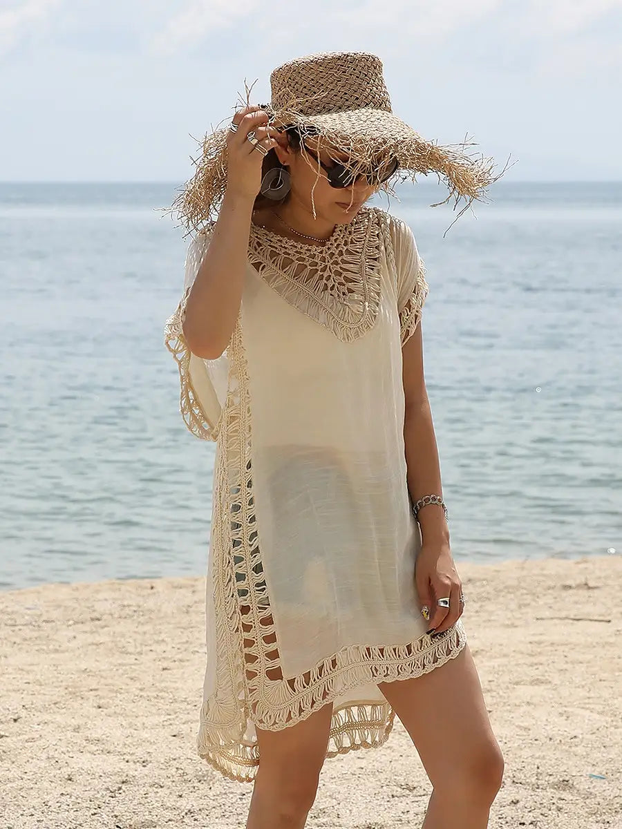 roomy by the sea(ルーミーバイザシー)クロシェあ編みがお洒落な薄手チュニックワンピース。