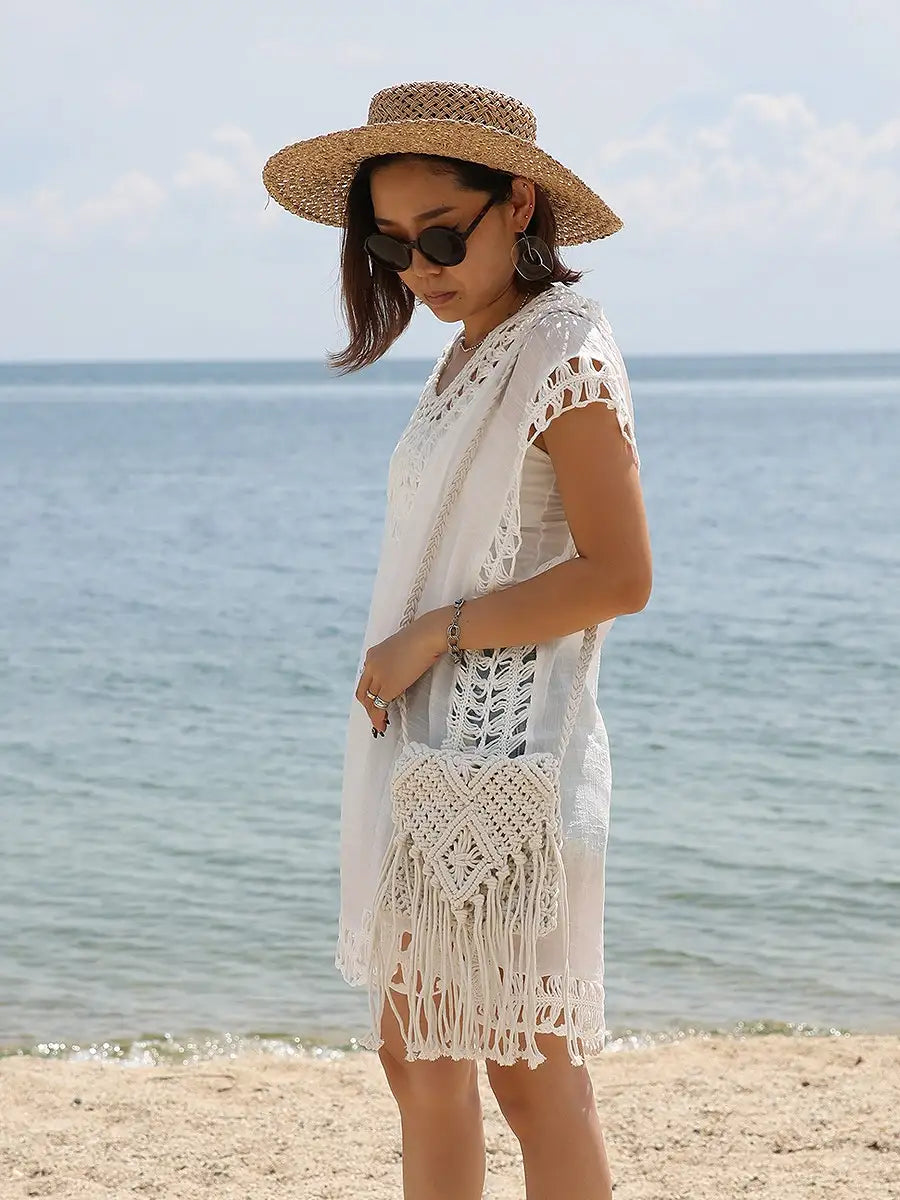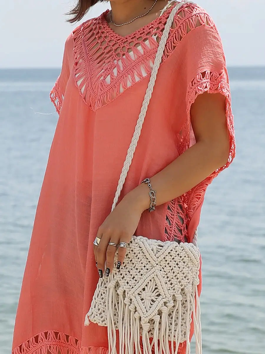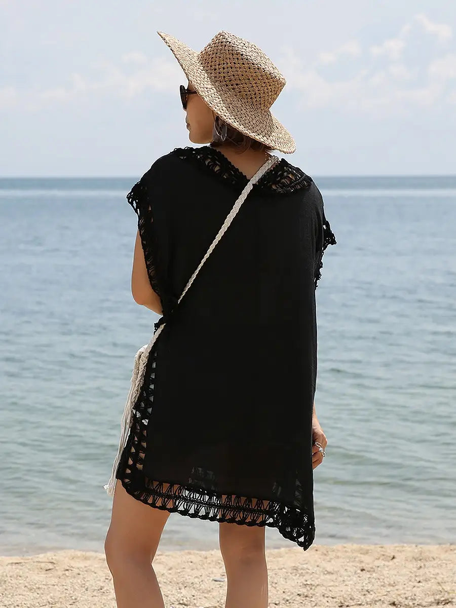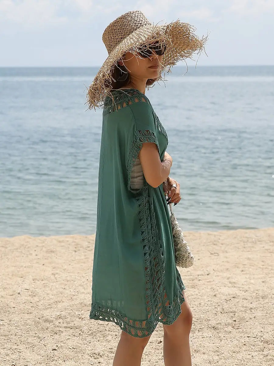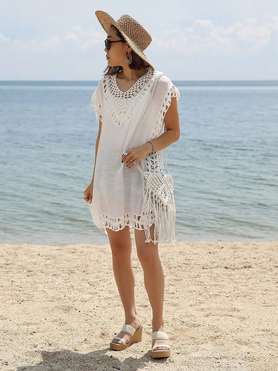 roomy by the sea(ルーミーバイザシー)クロシェあ編みがお洒落な薄手チュニックワンピース。