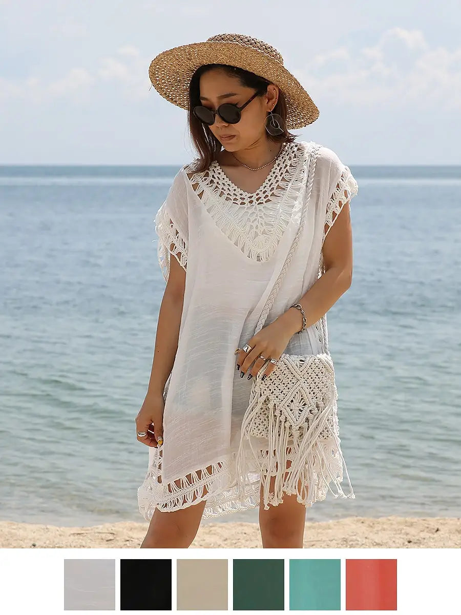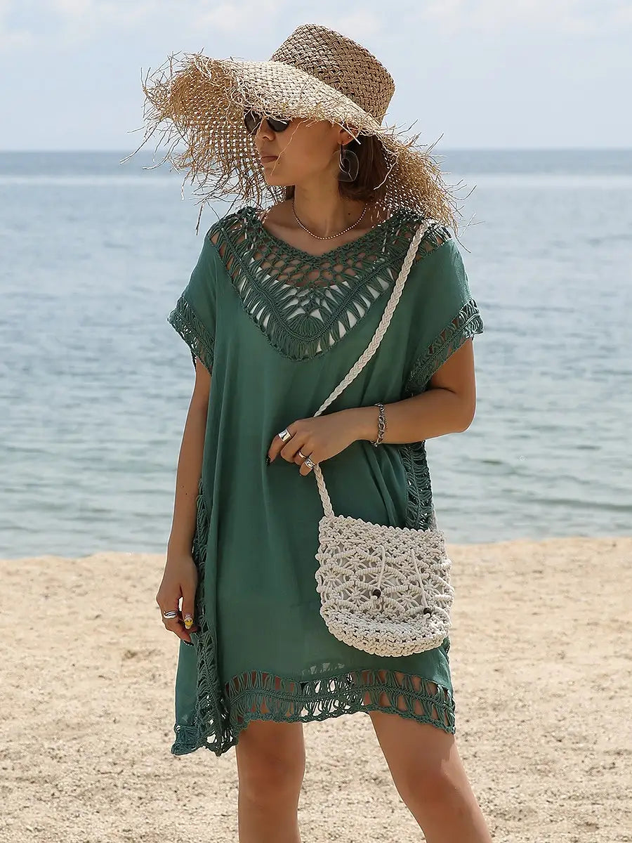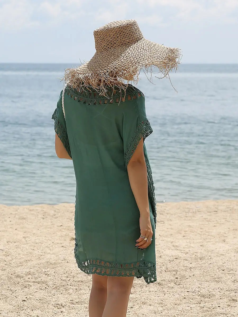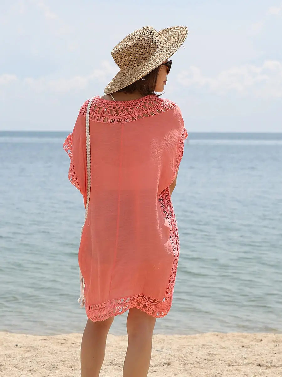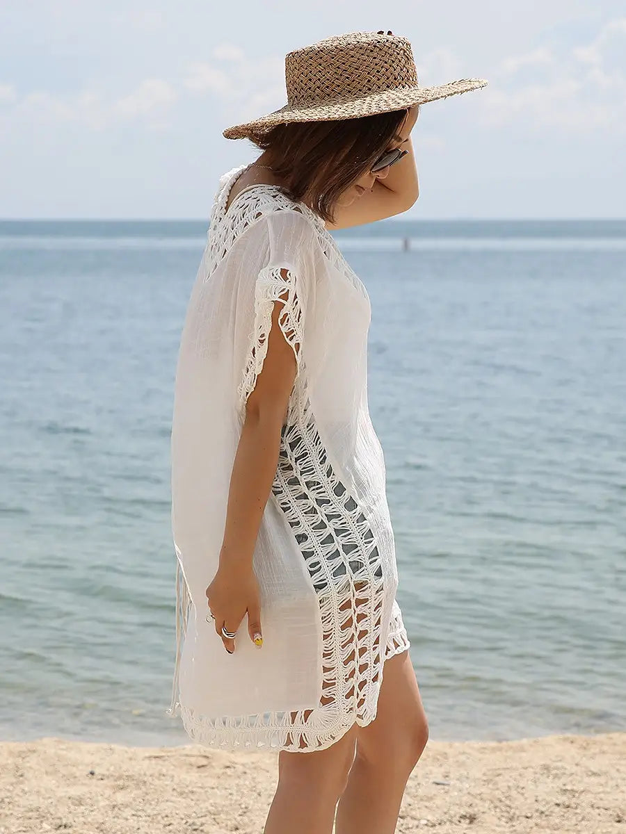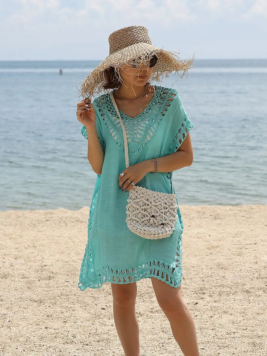 roomy by the sea(ルーミーバイザシー)クロシェあ編みがお洒落な薄手チュニックワンピース。