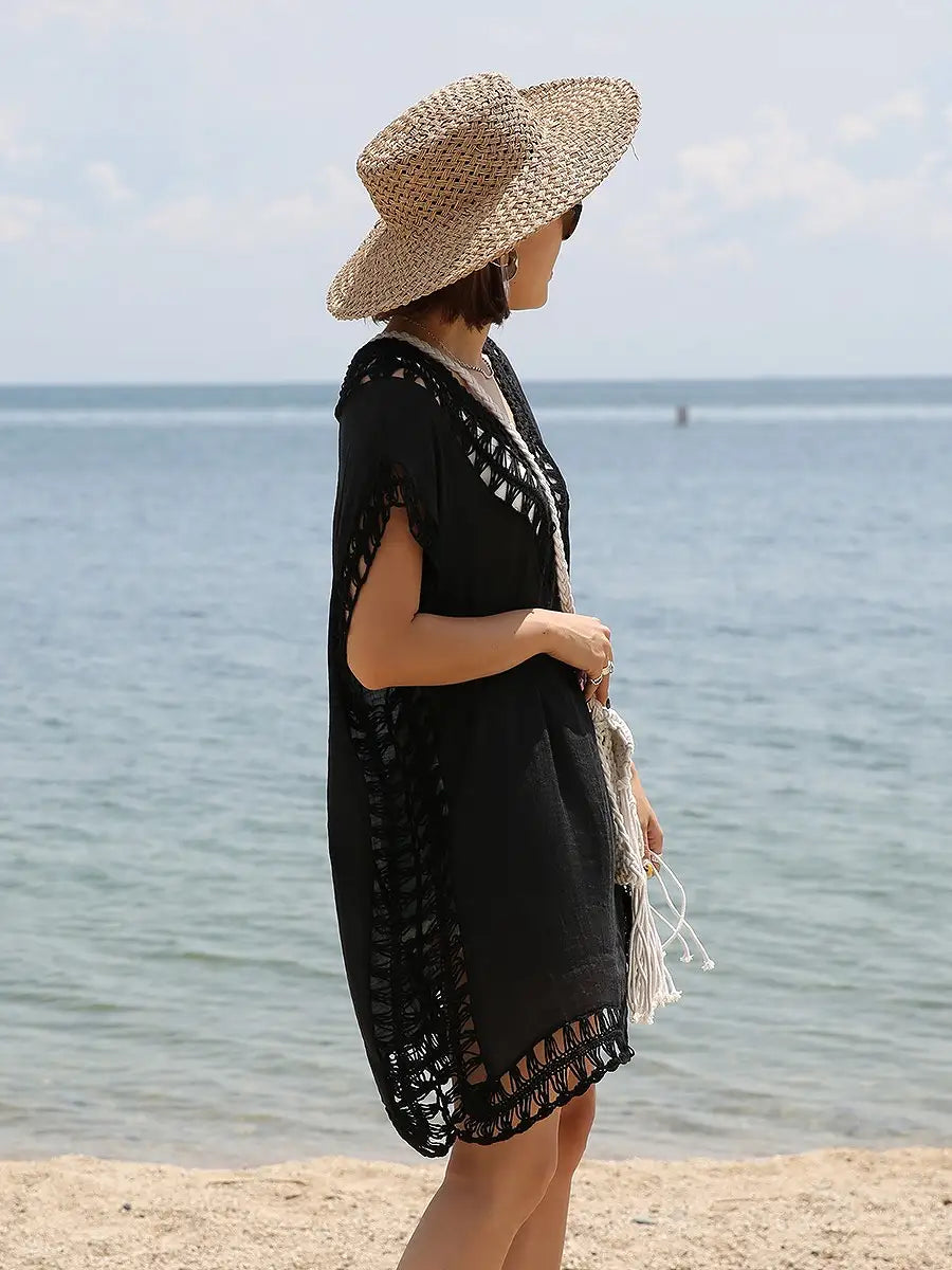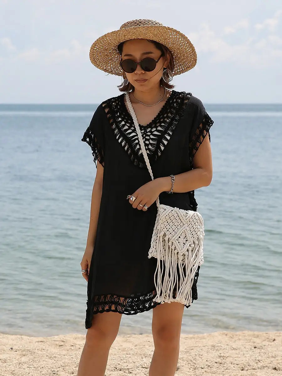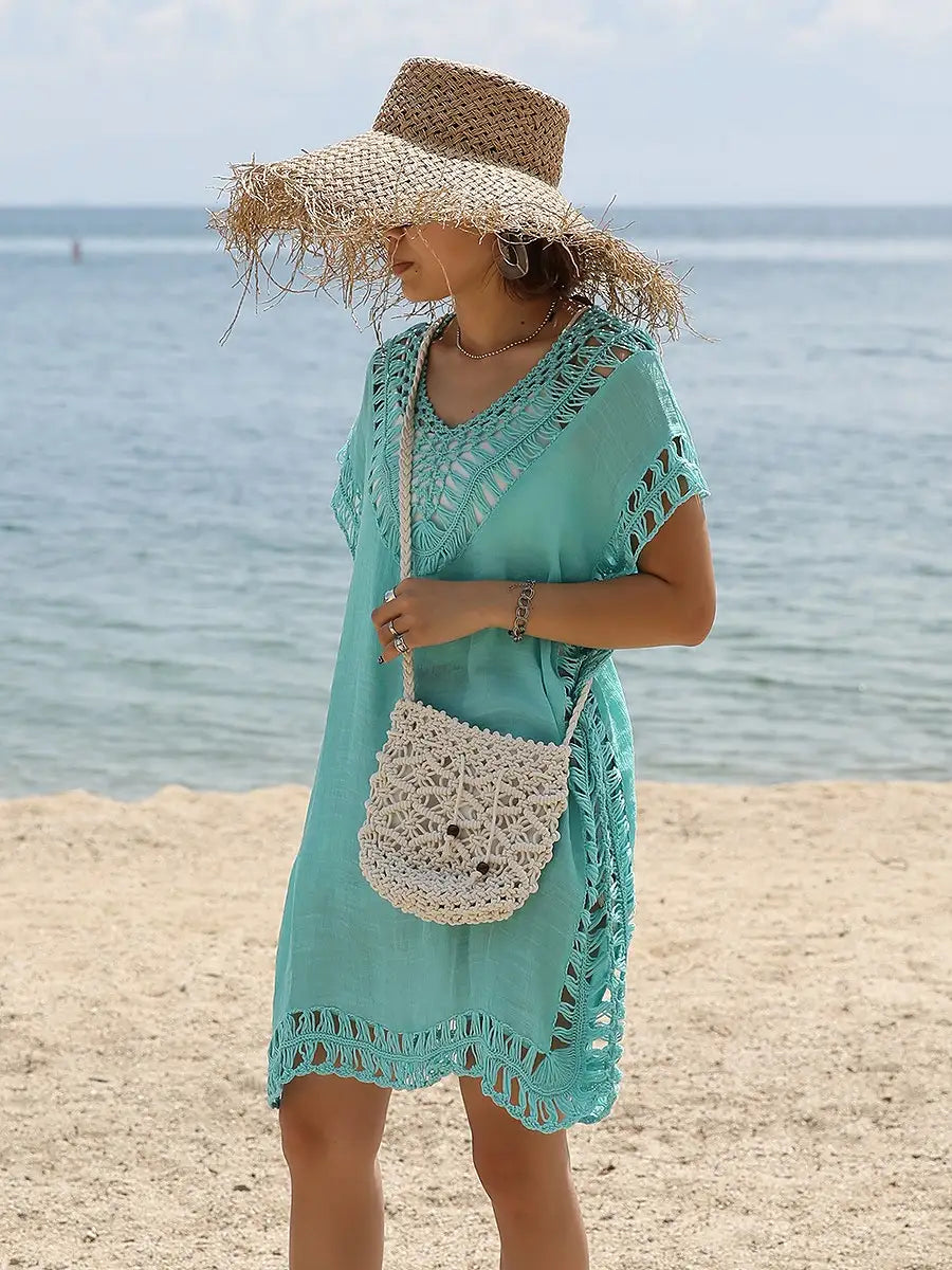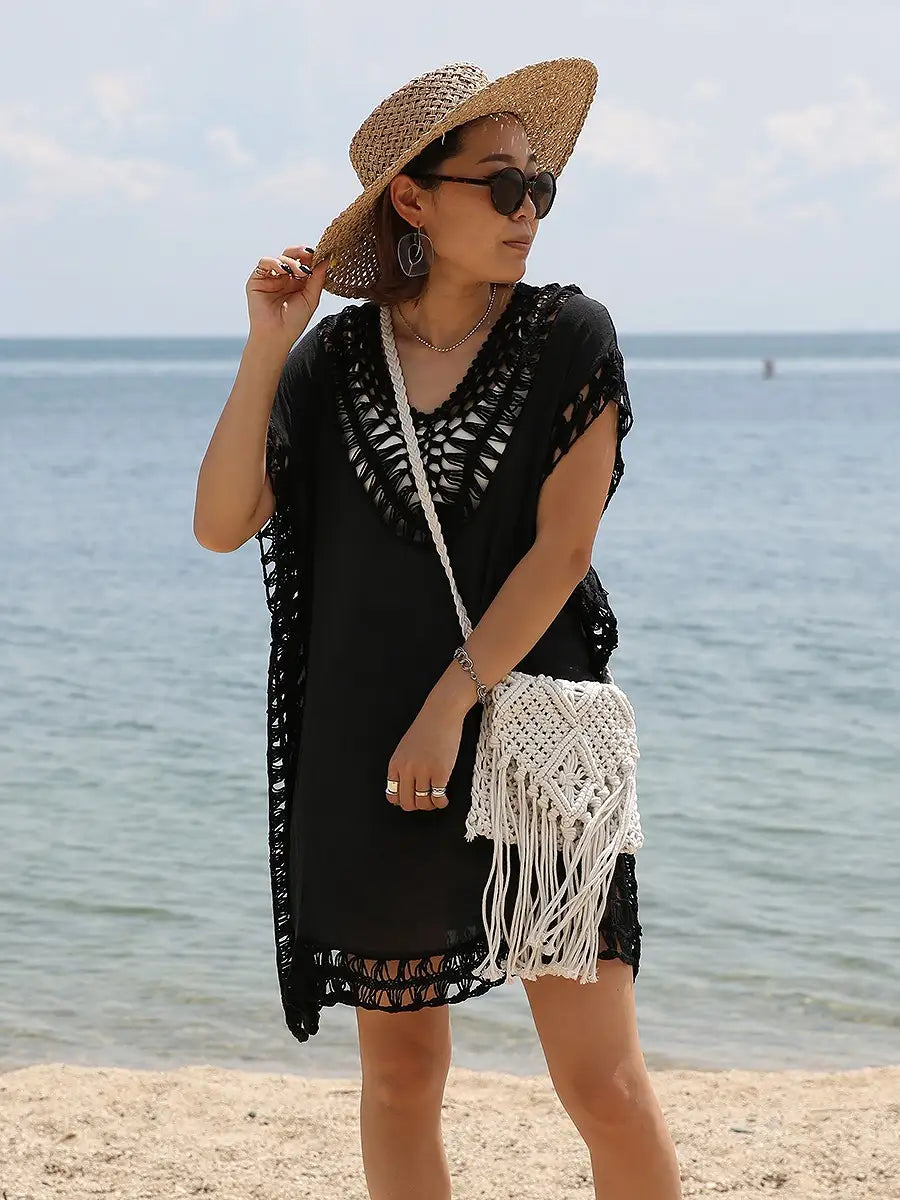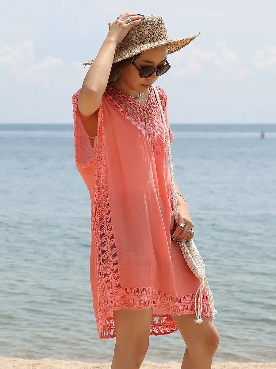 roomy by the sea(ルーミーバイザシー)クロシェあ編みがお洒落な薄手チュニックワンピース。