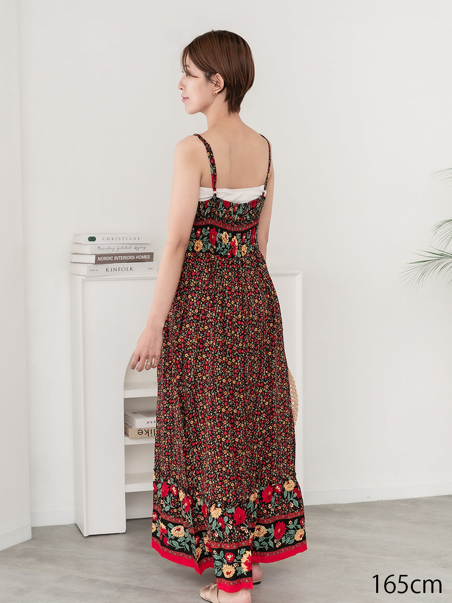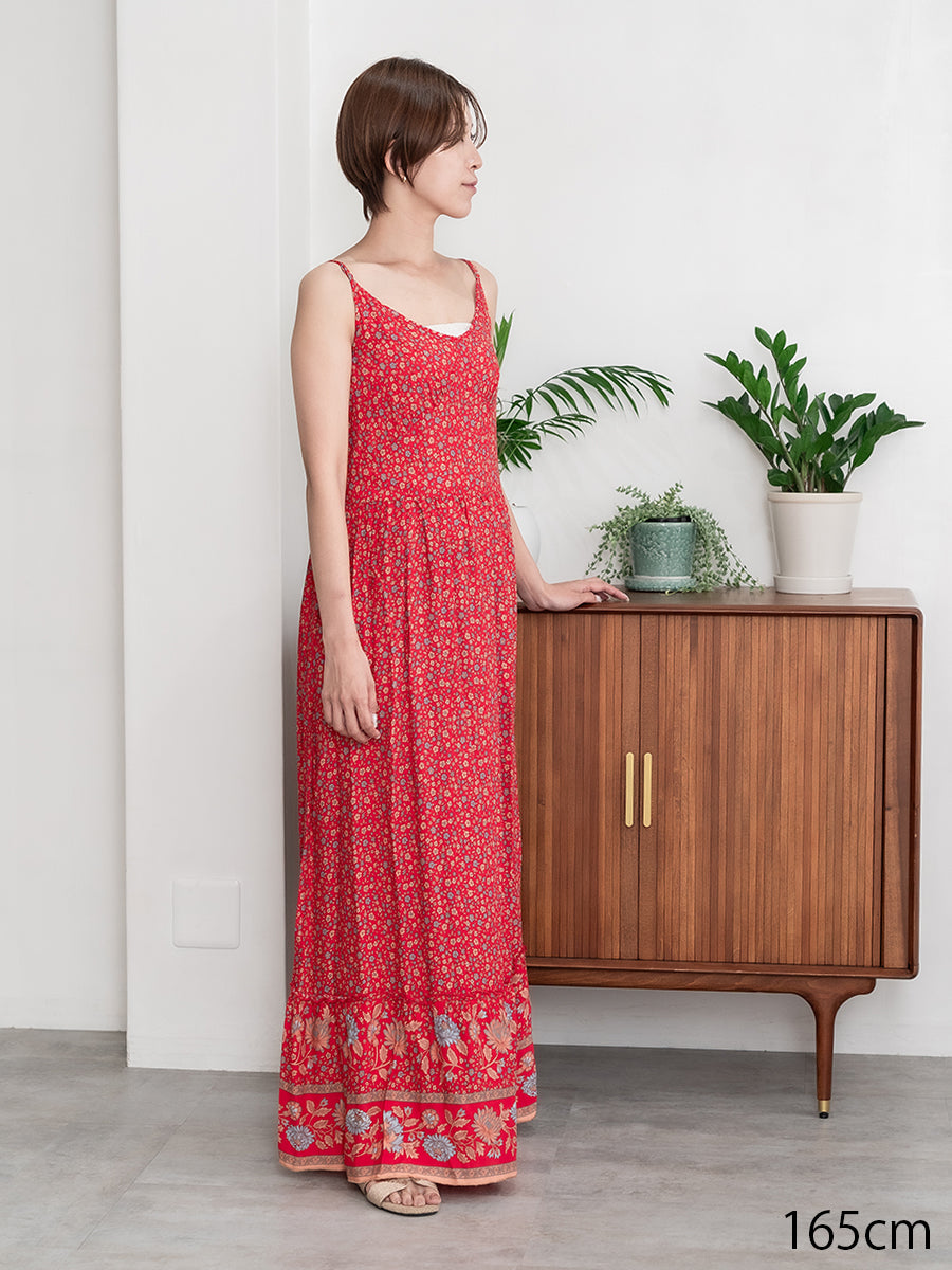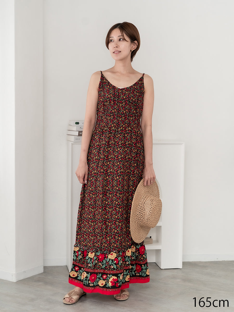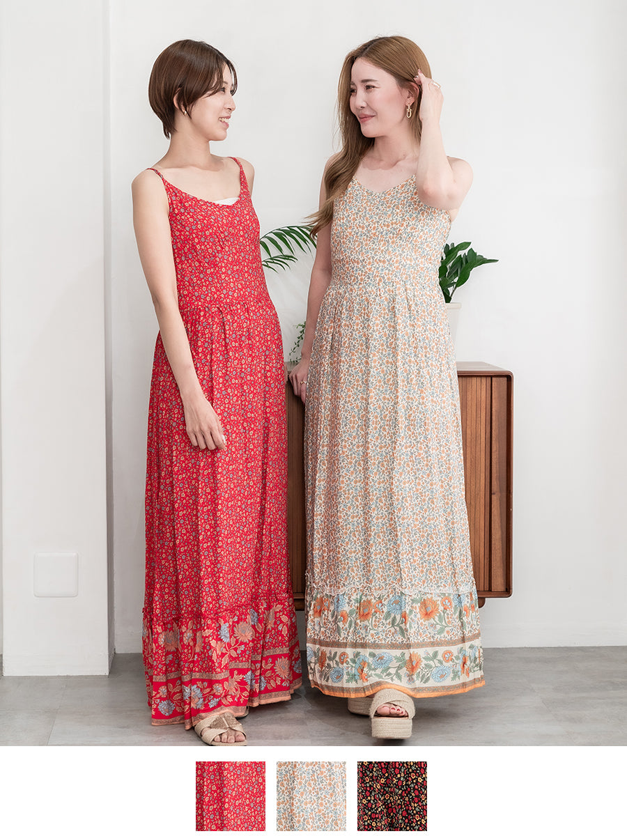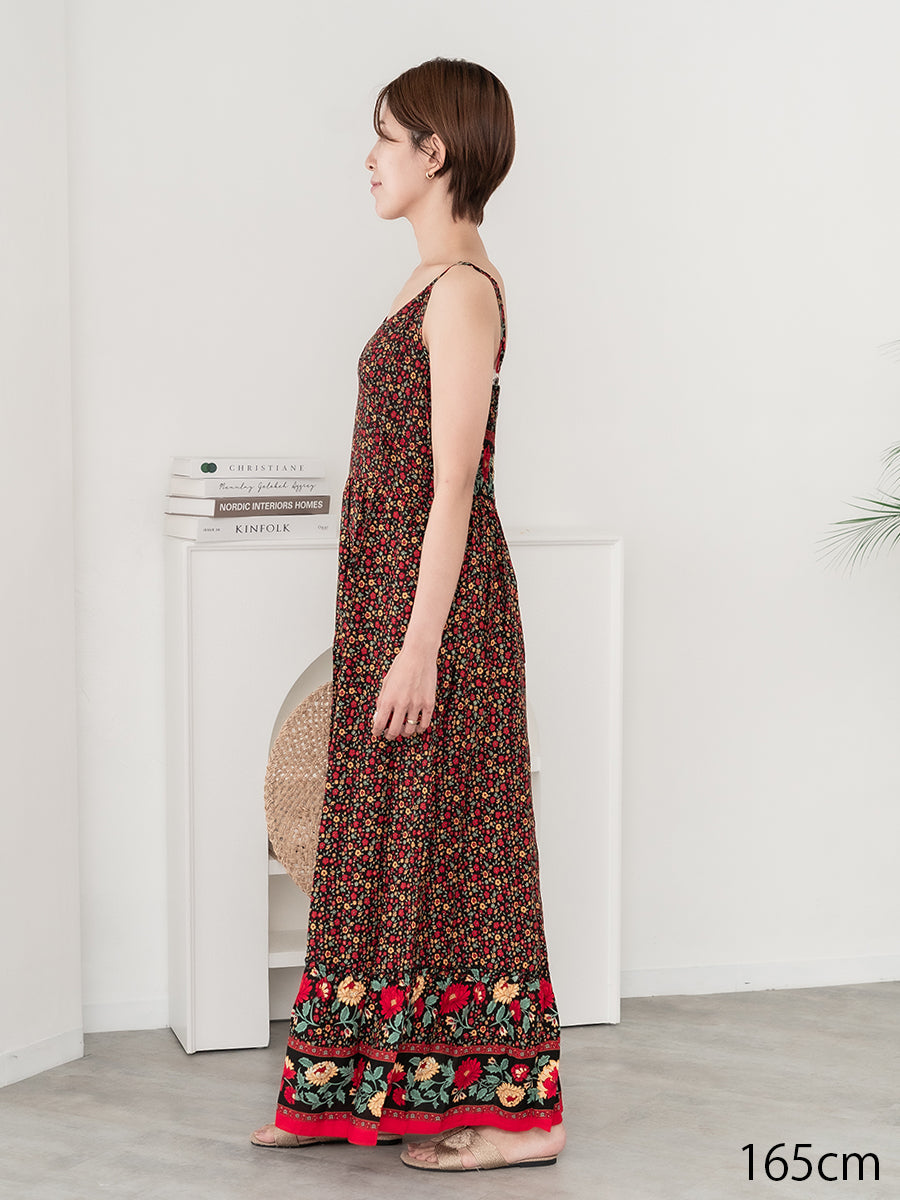 roomy by the sea(ルーミーバイザシー)ストラップデザインの花柄マキシワンピース。