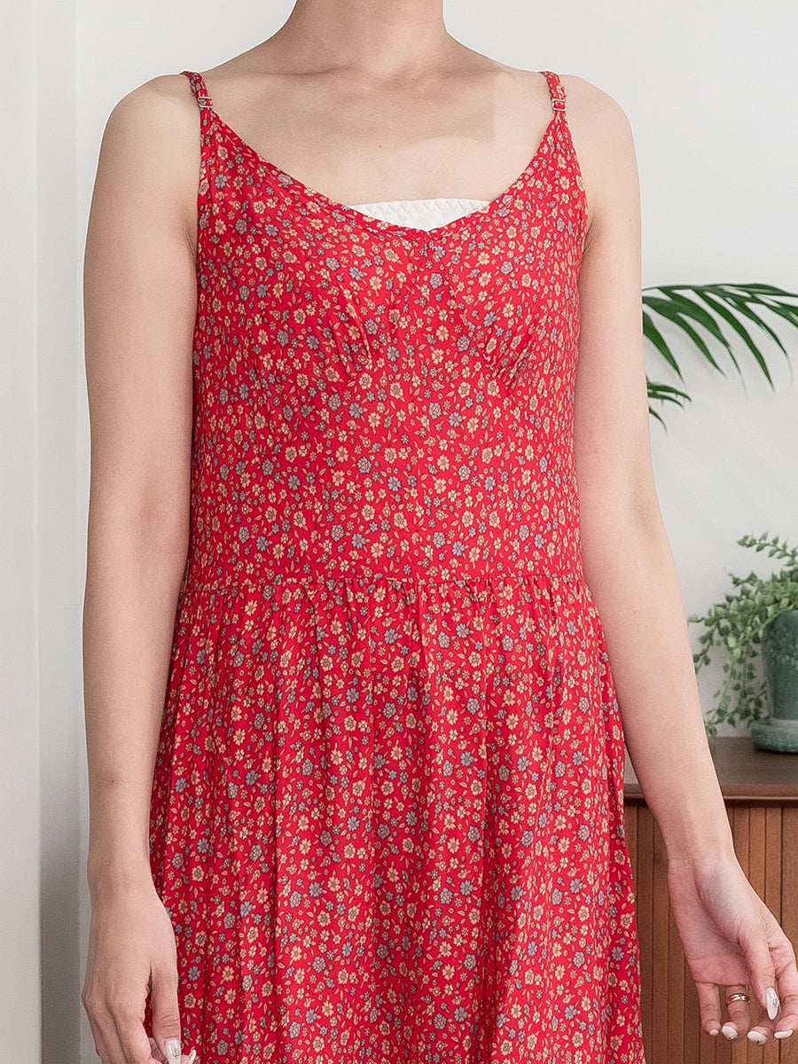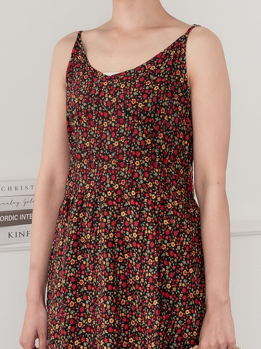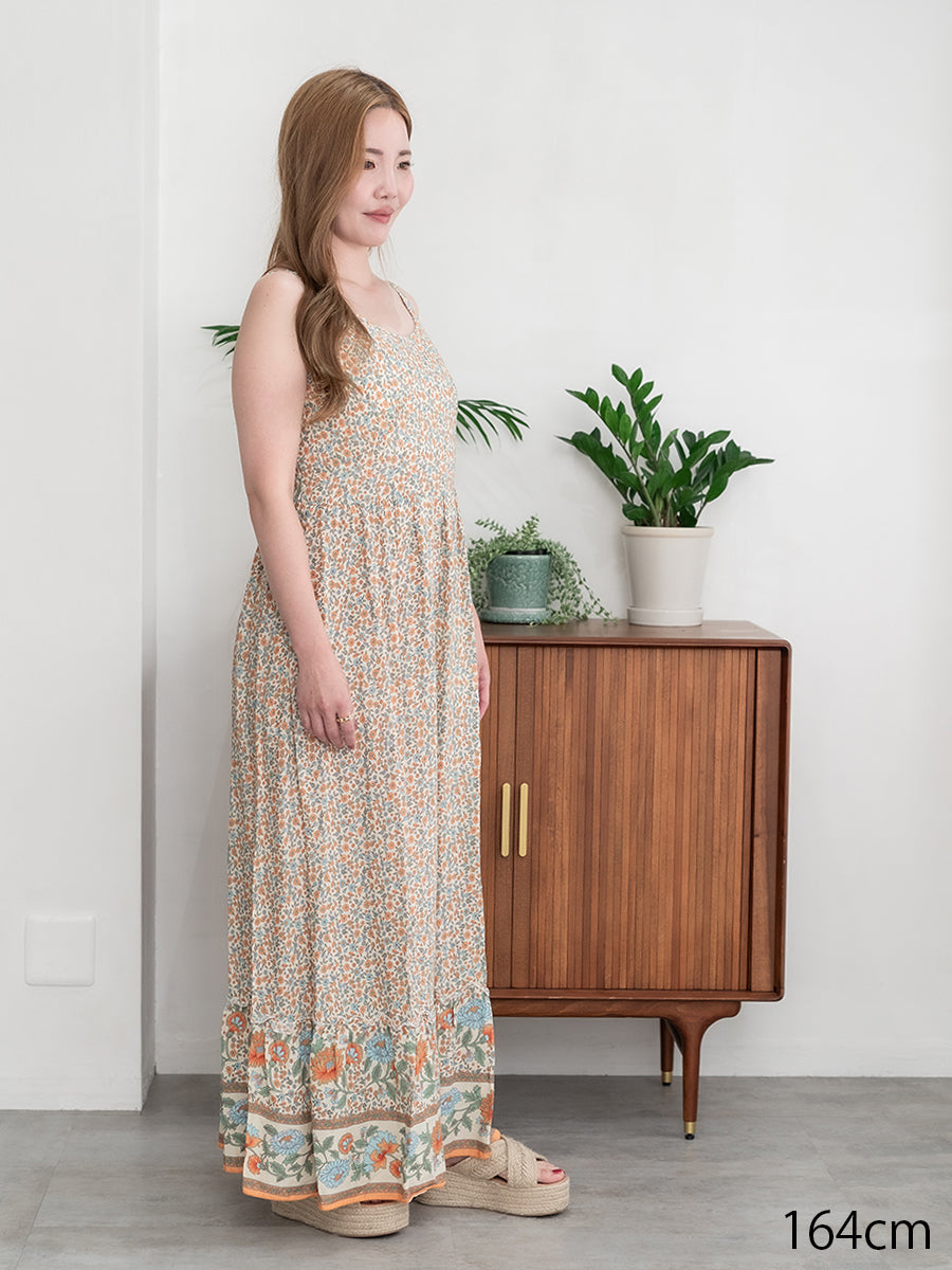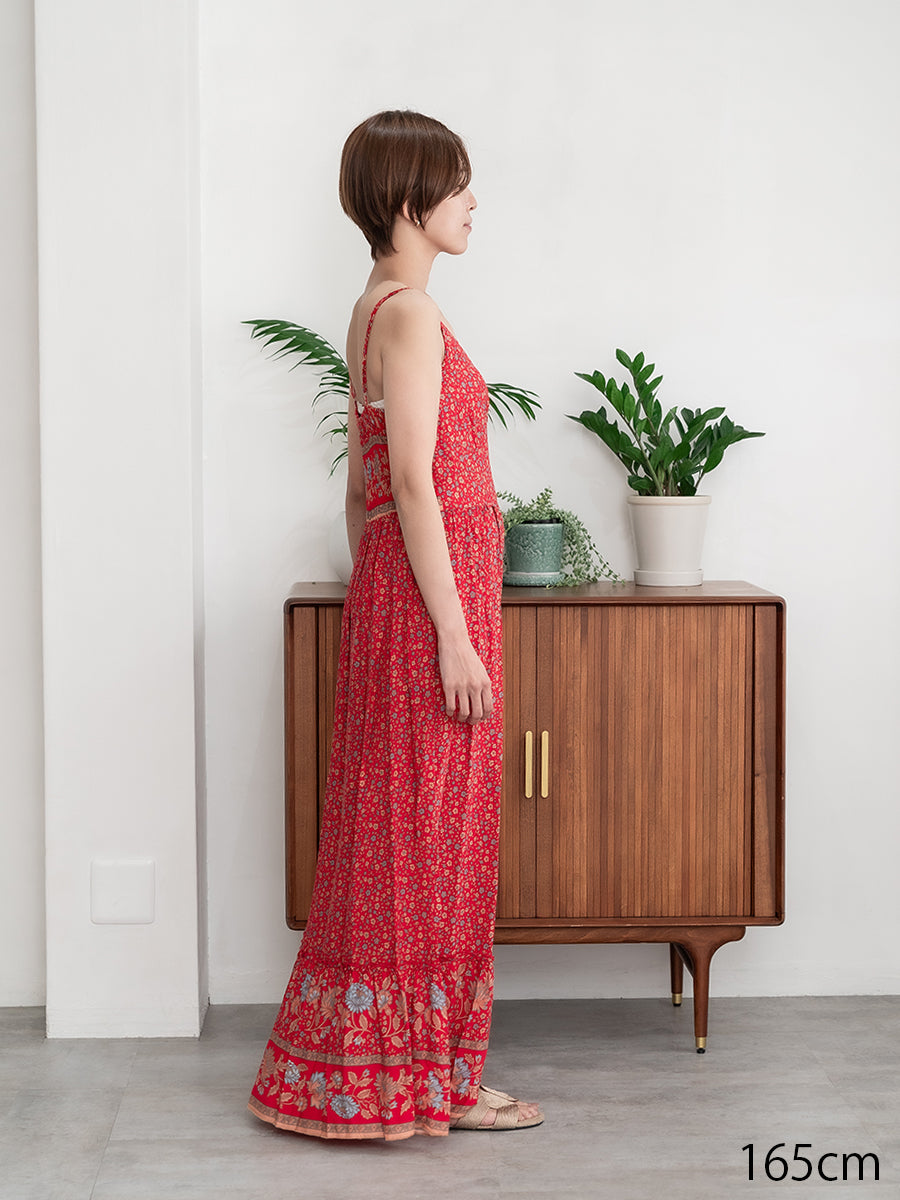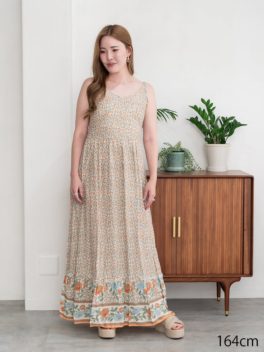 roomy by the sea(ルーミーバイザシー)ストラップデザインの花柄マキシワンピース。