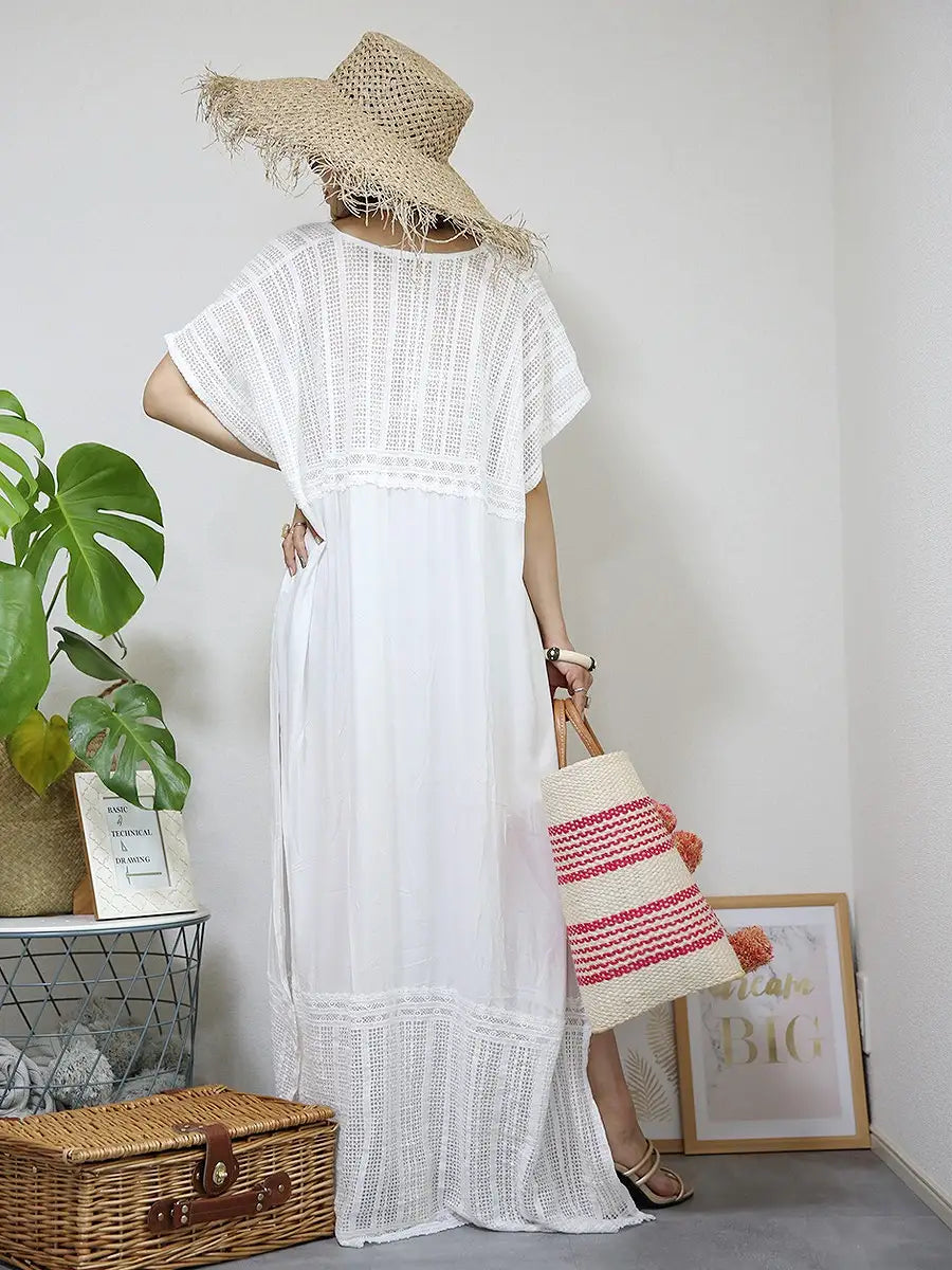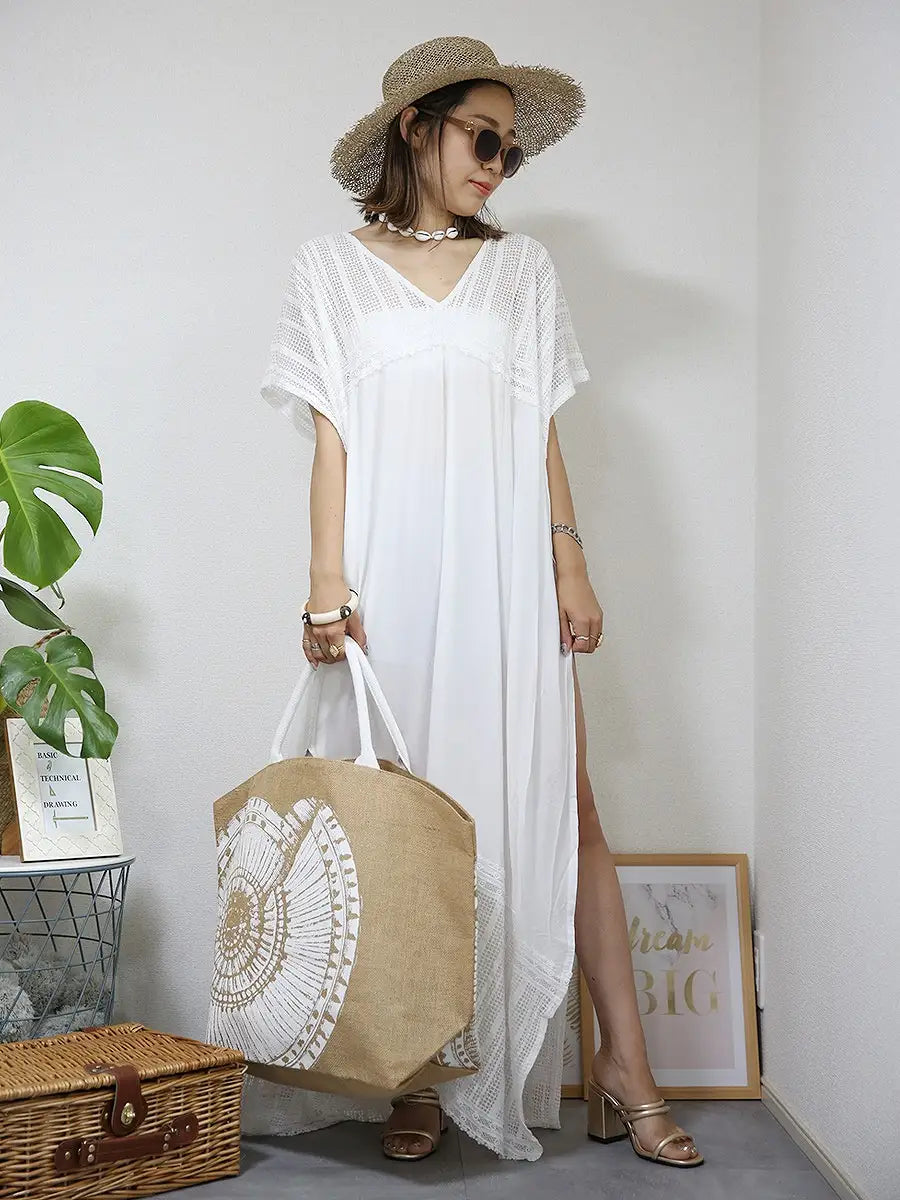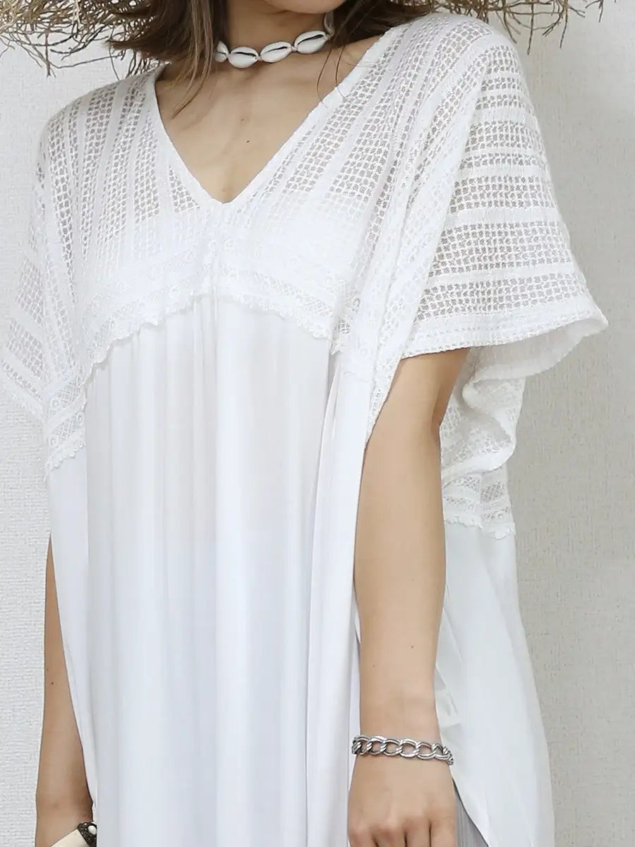 roomy by the sea(ルーミーバイザシー)レース切り替えVネックマキシワンピース