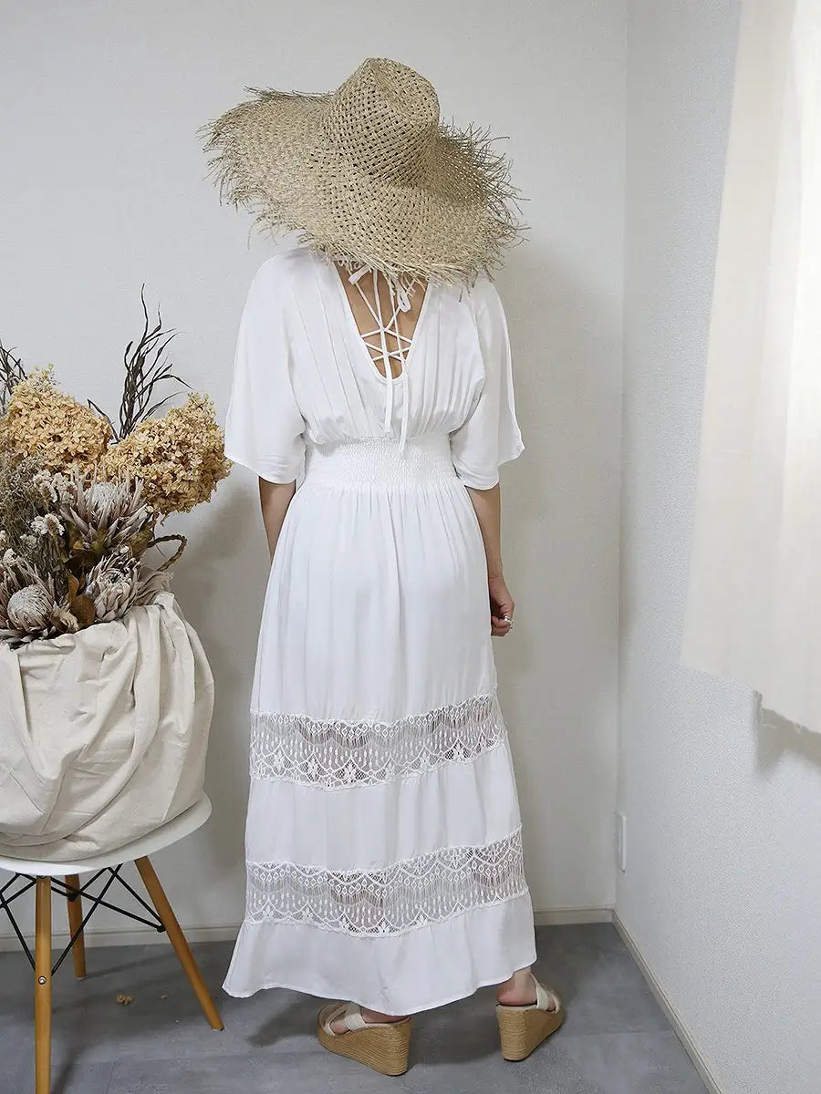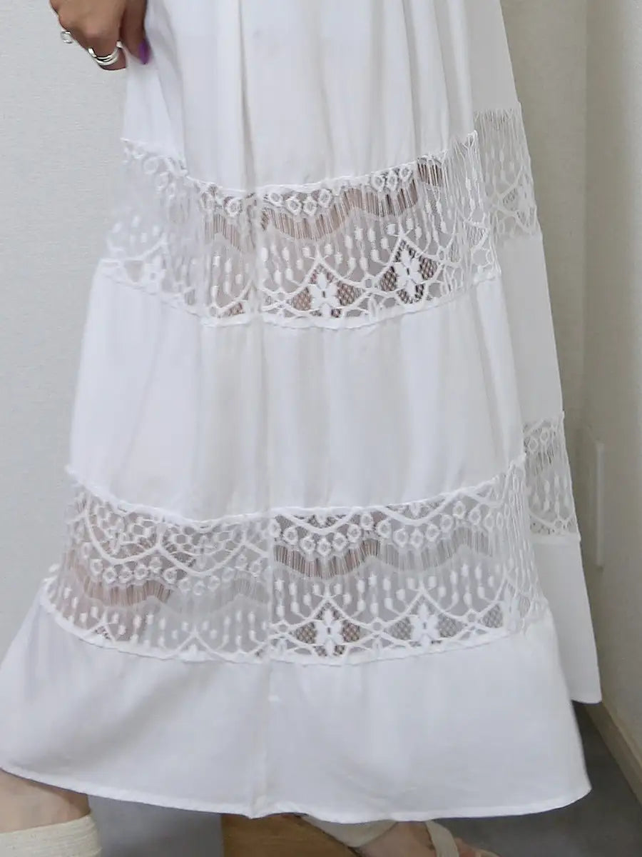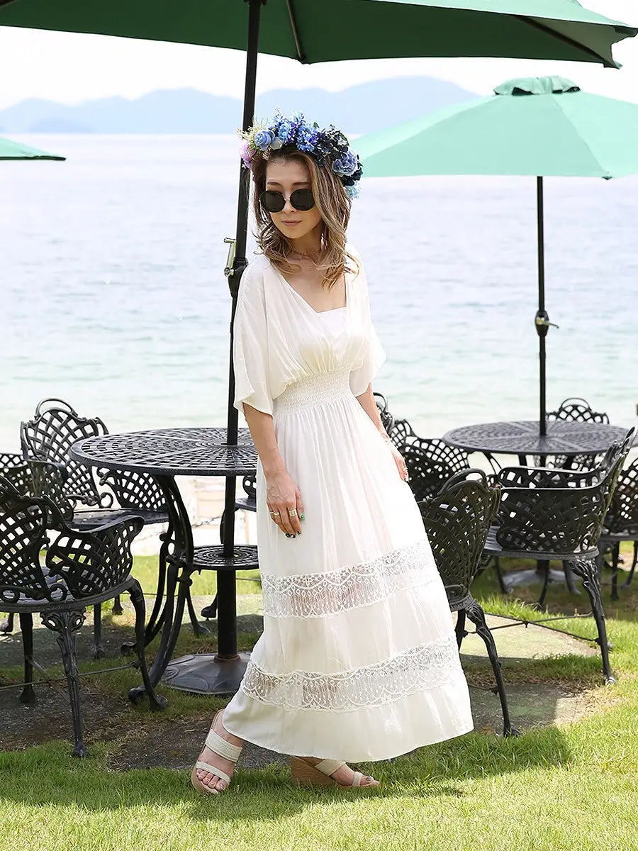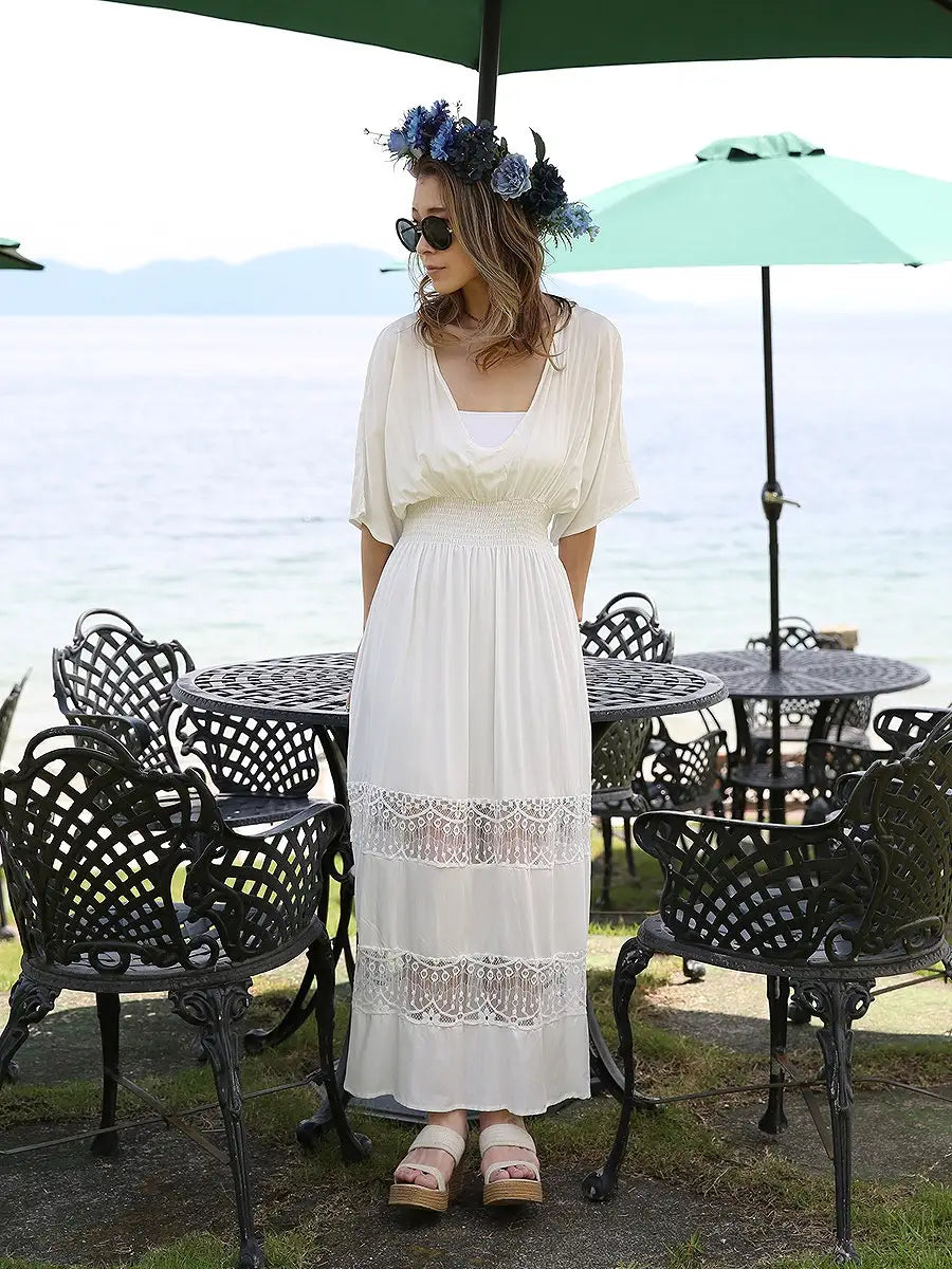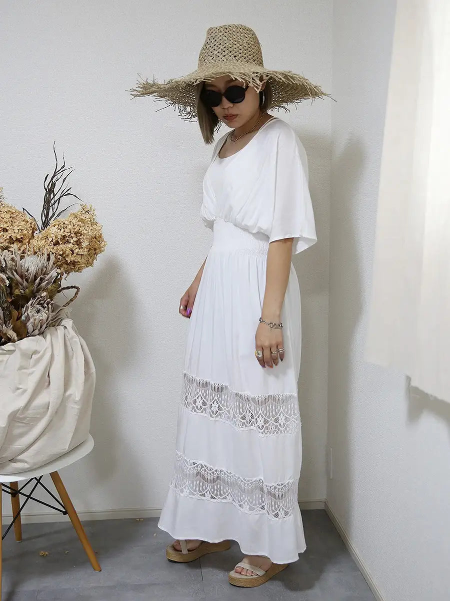 roomy by the sea(ルーミーバイザシー)レース切り替えマキシワンピース。