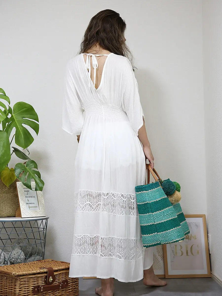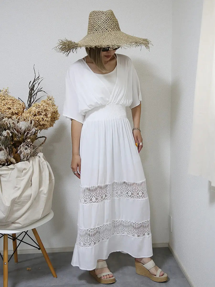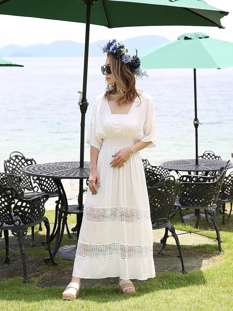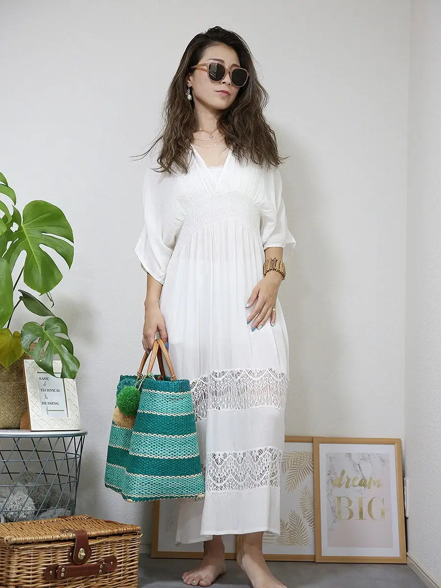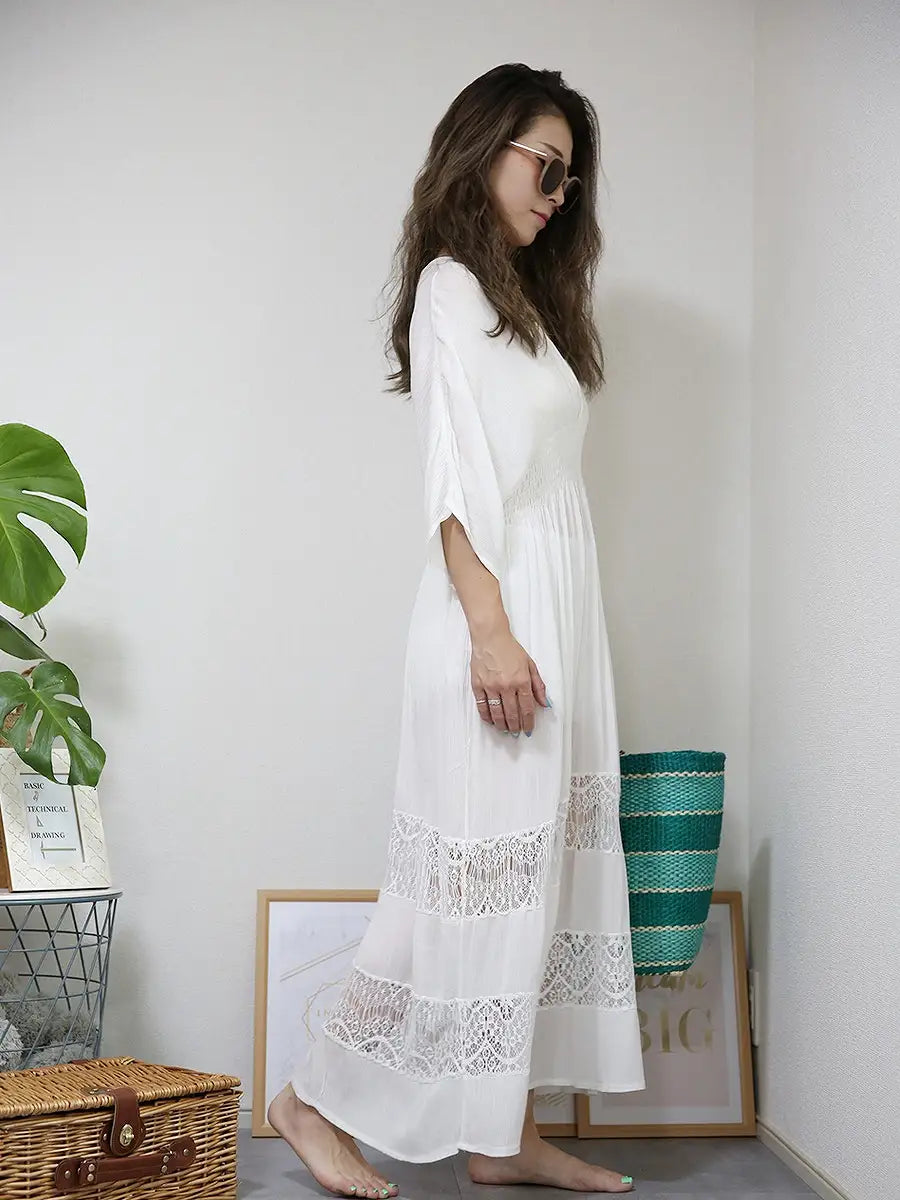 roomy by the sea(ルーミーバイザシー)レース切り替えキモノマキシワンピース