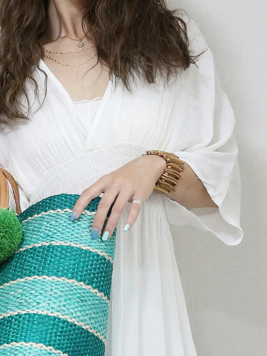 胸元と背中がVカットになったトレンドをおさえたリゾートワンピースです。