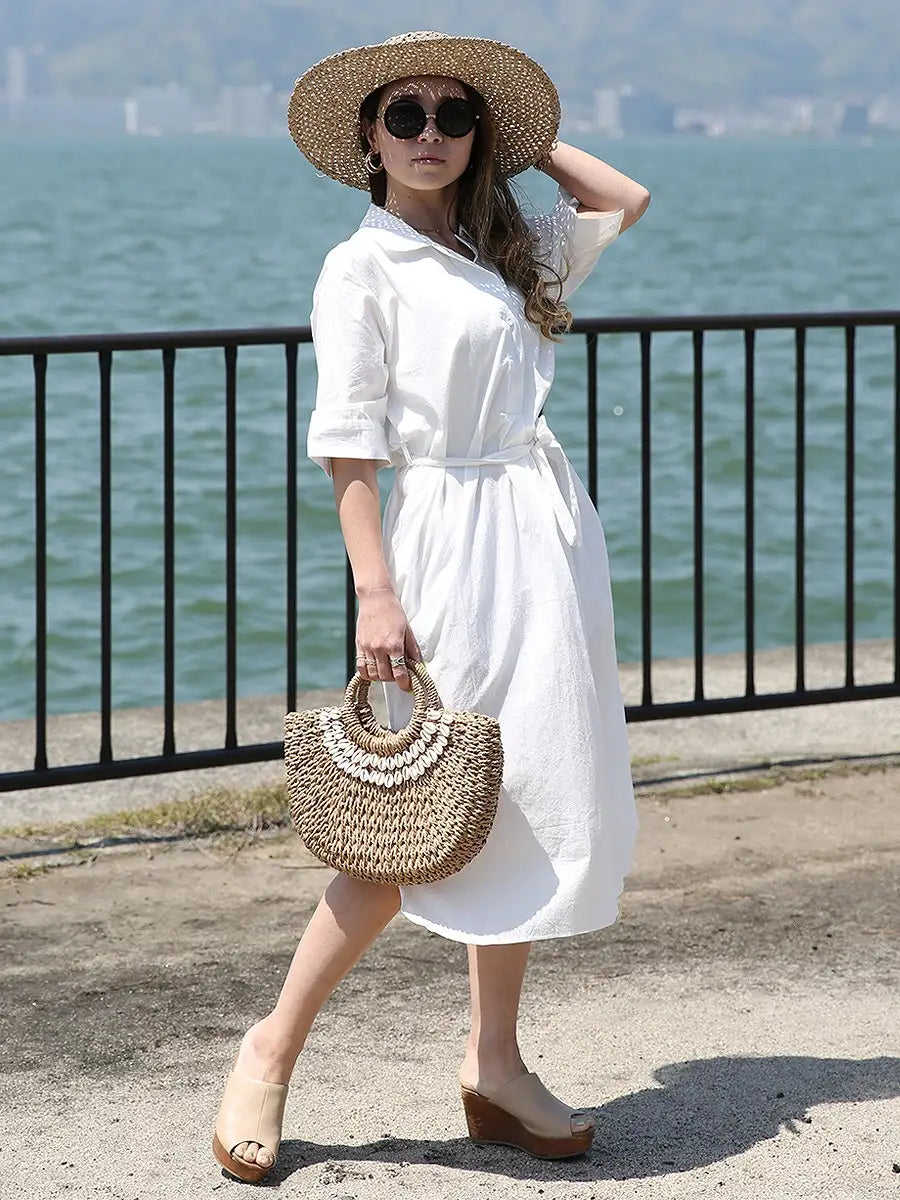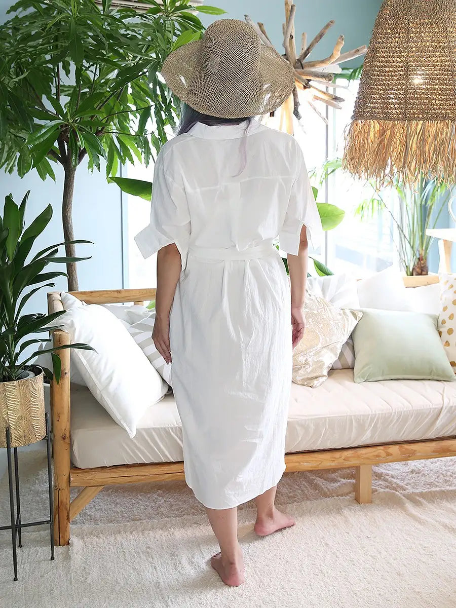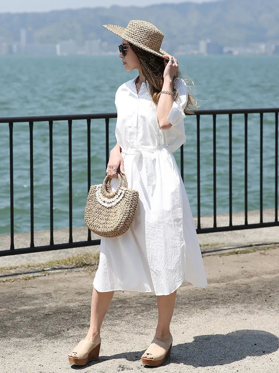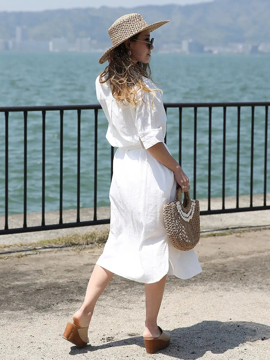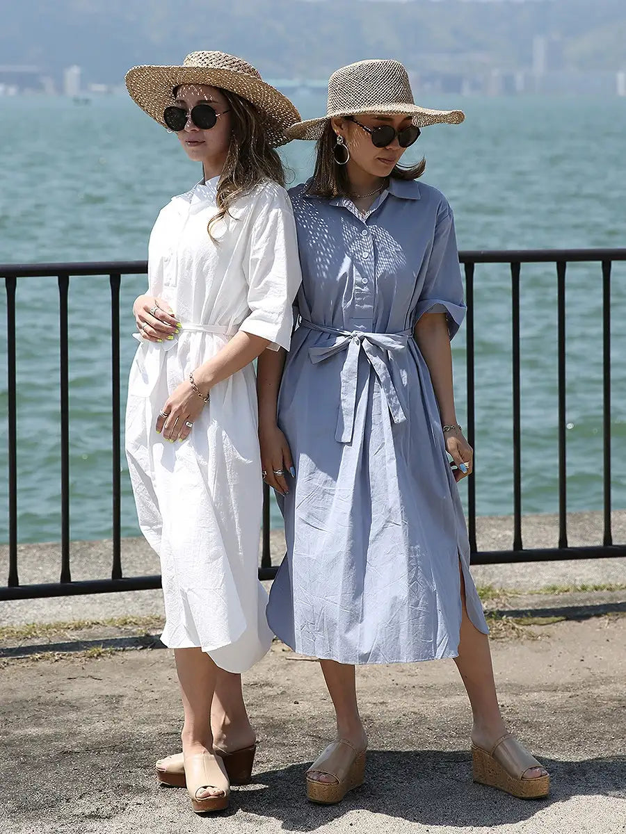 roomy by the sea(ルーミーバイザシー)ベーシック五分袖シャツワンピース。