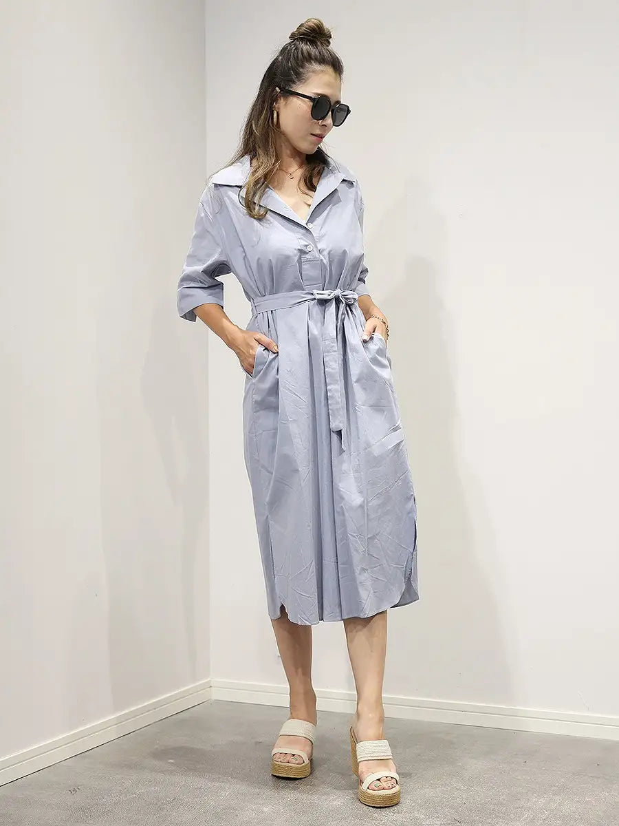 roomy by the sea(ルーミーバイザシー)ベーシック五分袖シャツワンピース