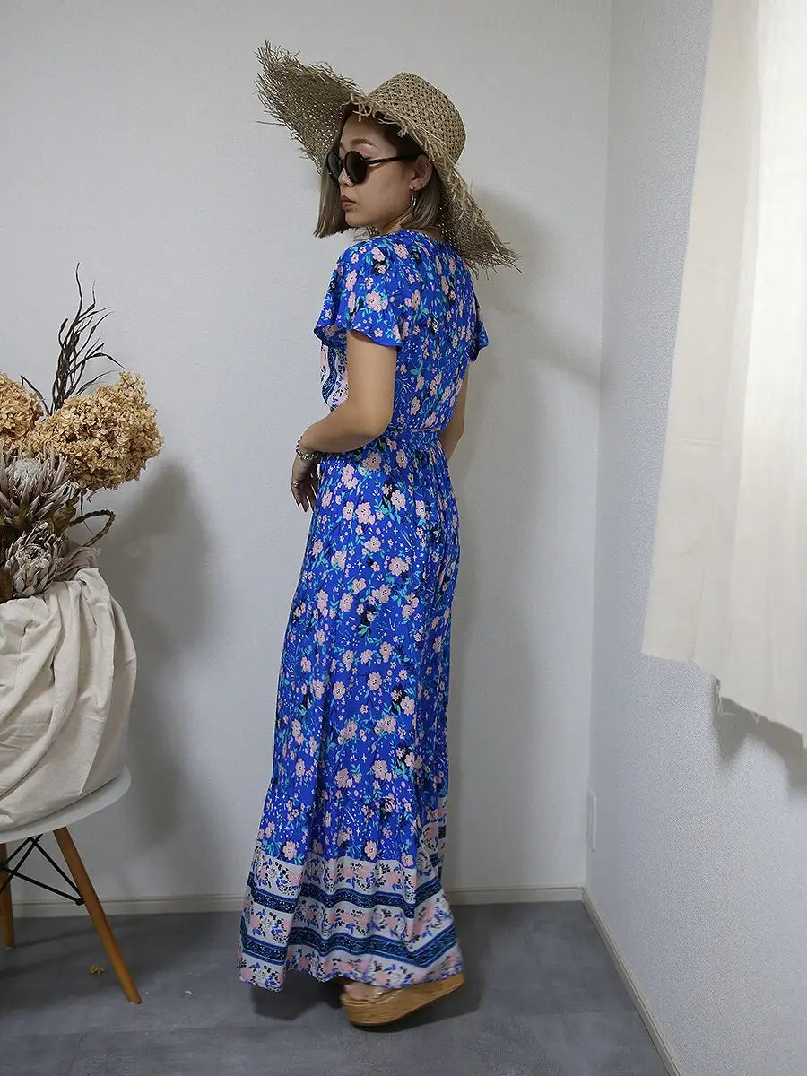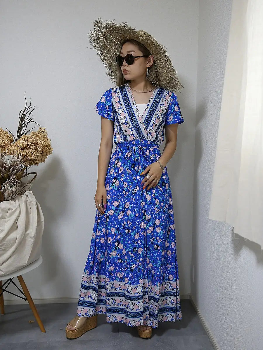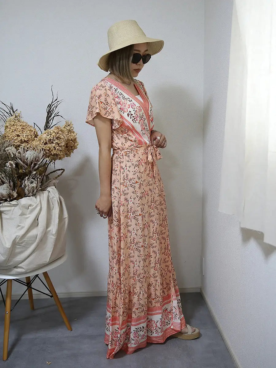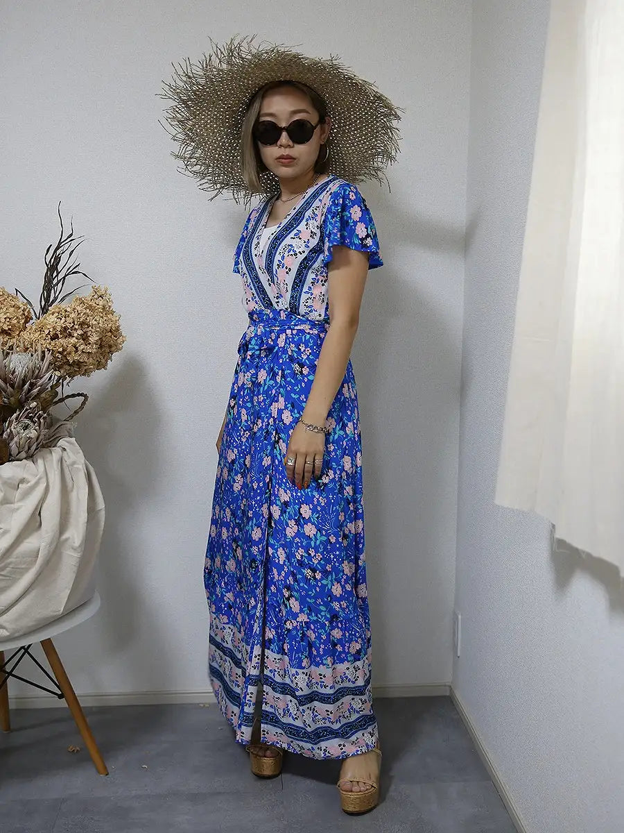 roomy by the sea(ルーミーバイザシー)花柄カシュクールマキシワンピース。