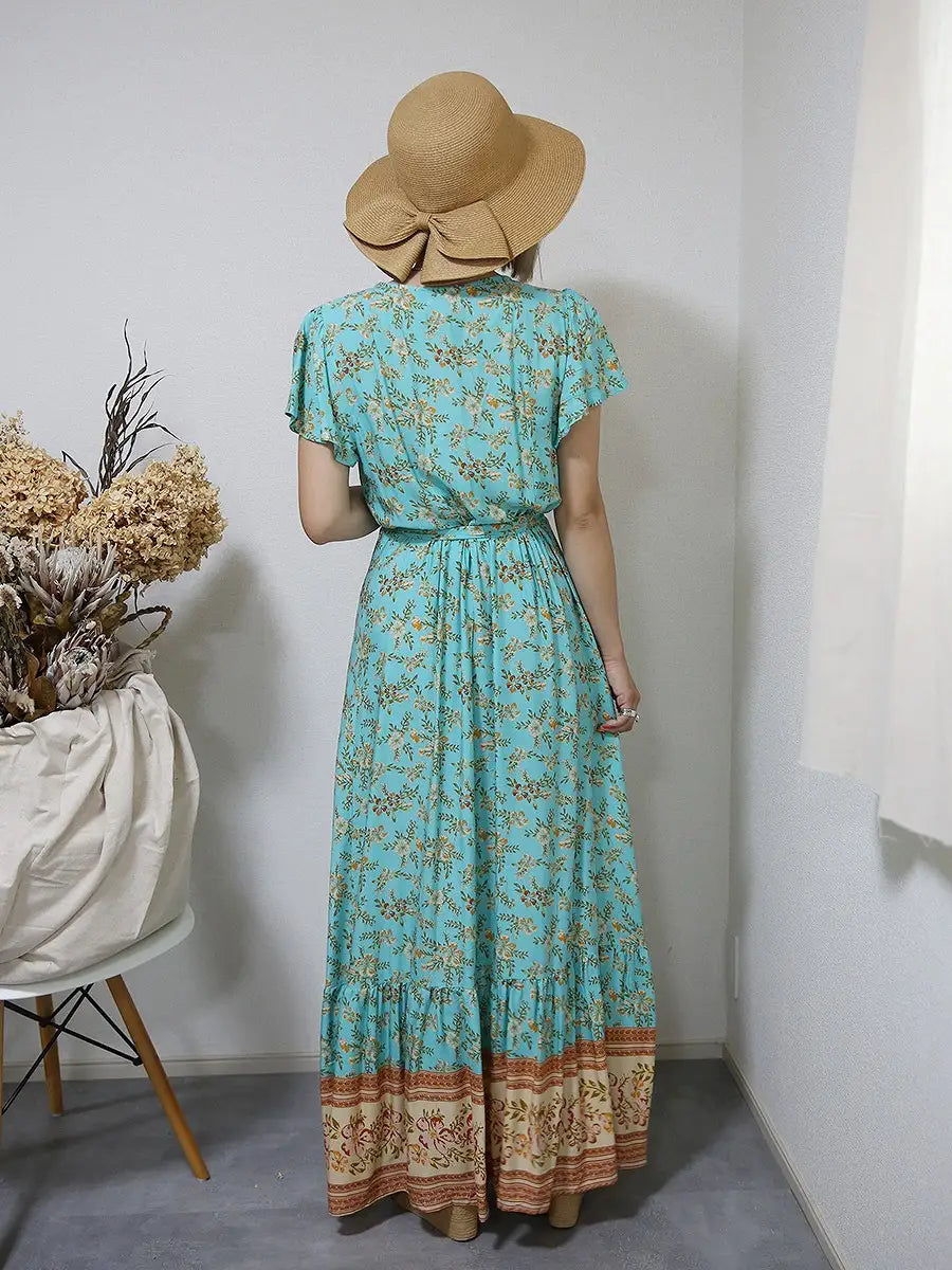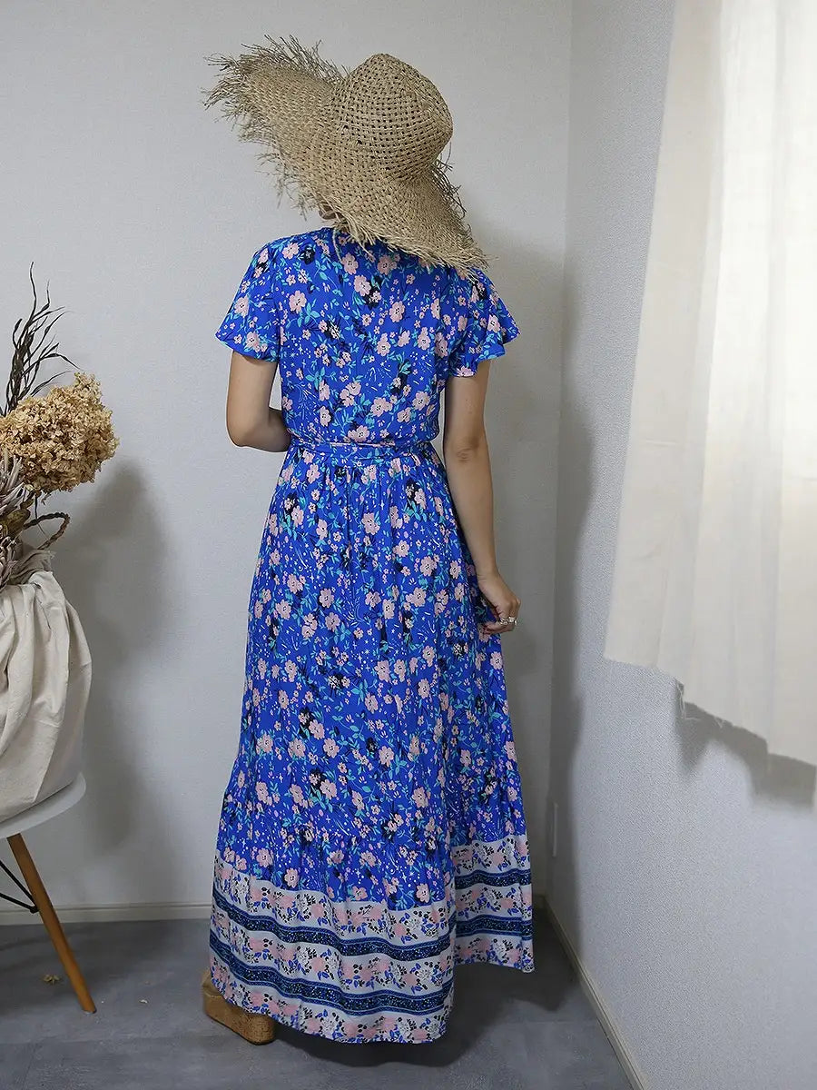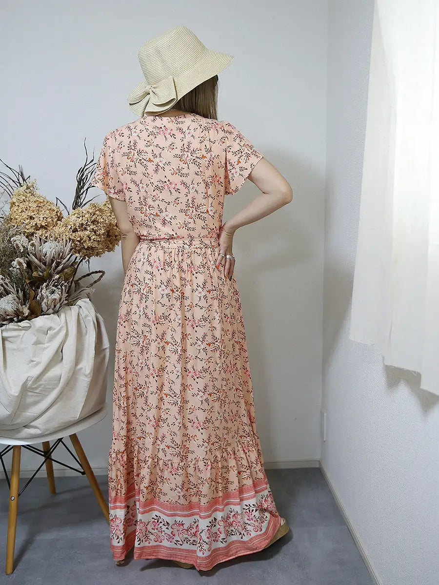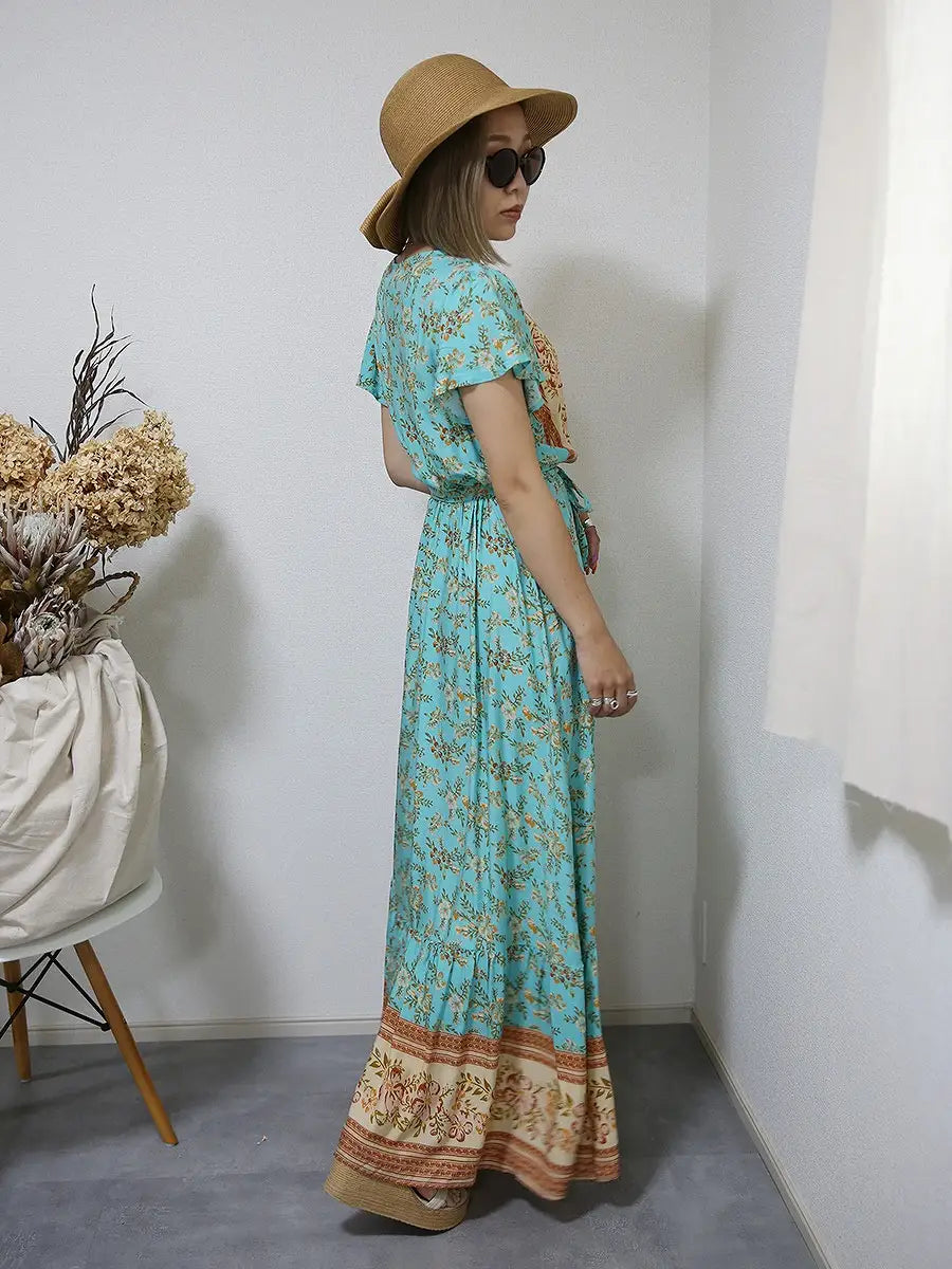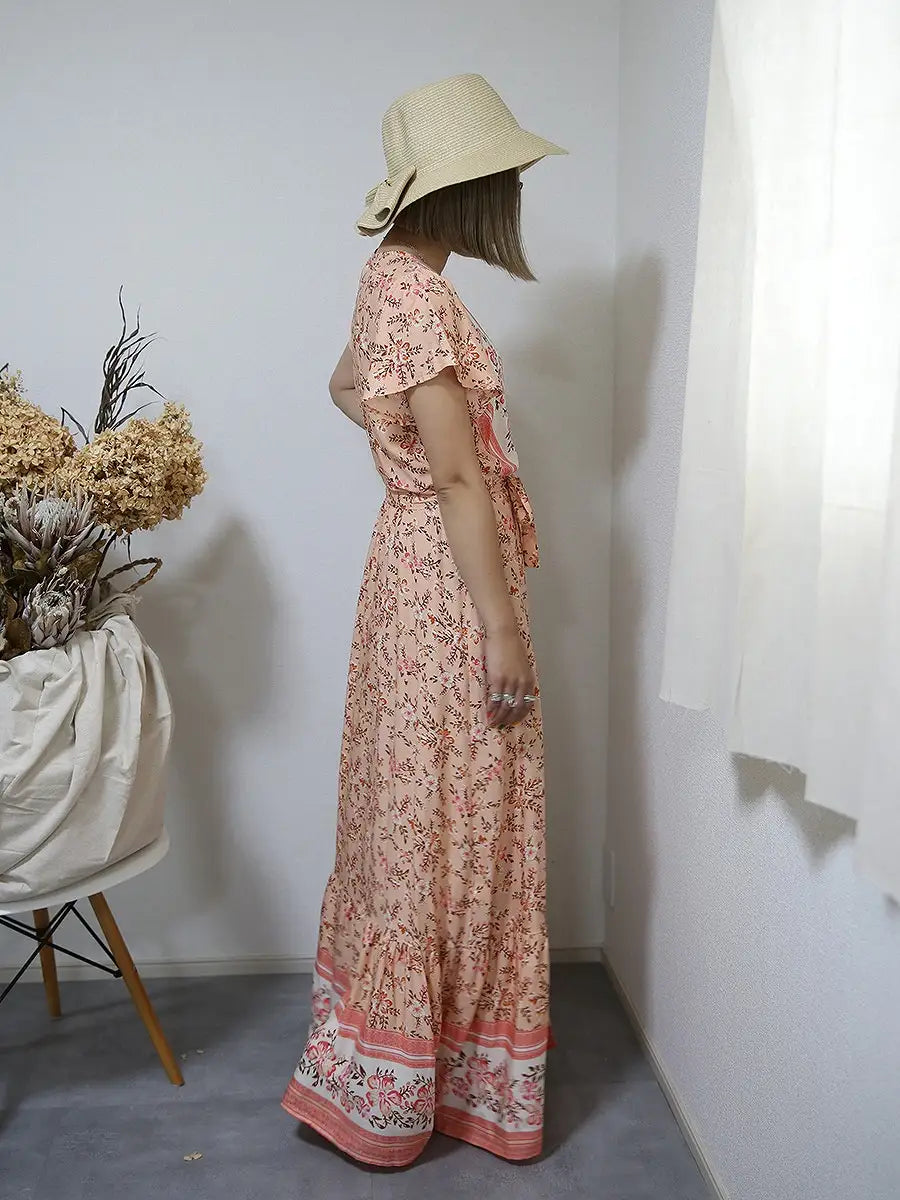 roomy by the sea(ルーミーバイザシー)花柄カシュクールマキシワンピース。