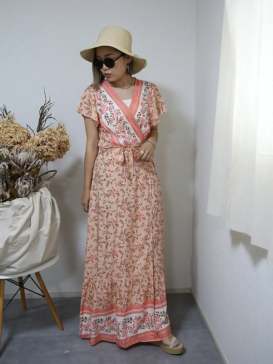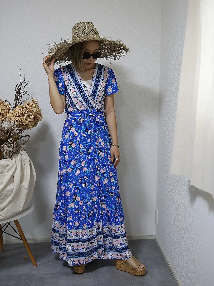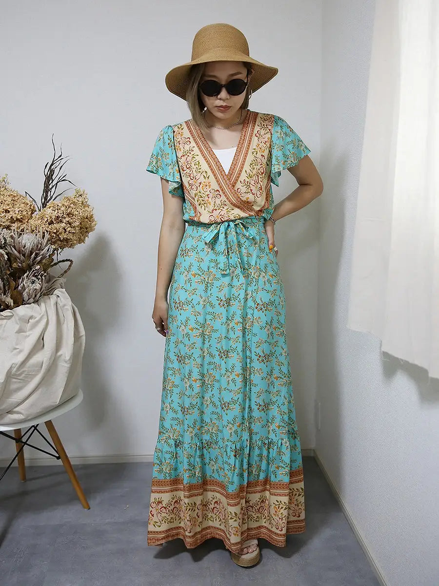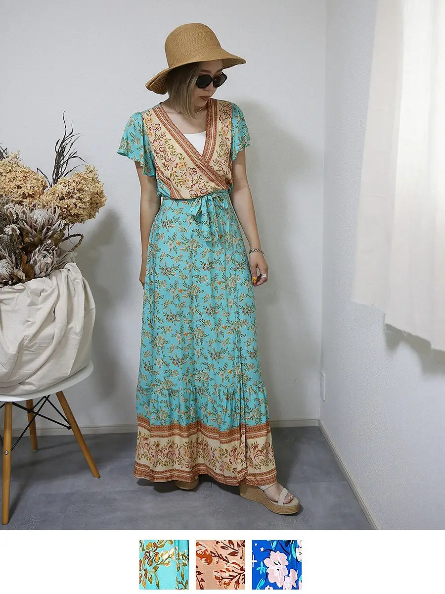 roomy by the sea(ルーミーバイザシー)花柄カシュクールラップスタイルマキシワンピース