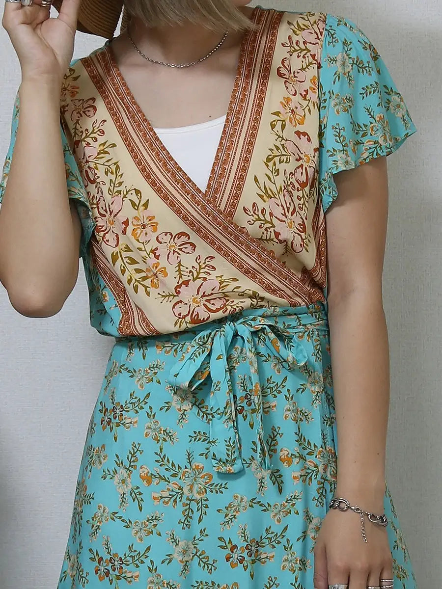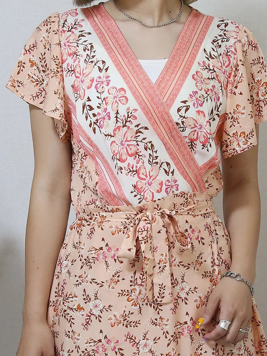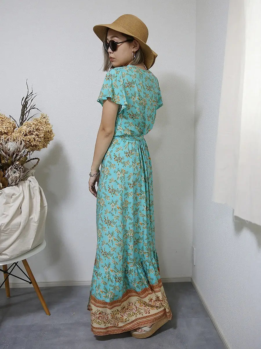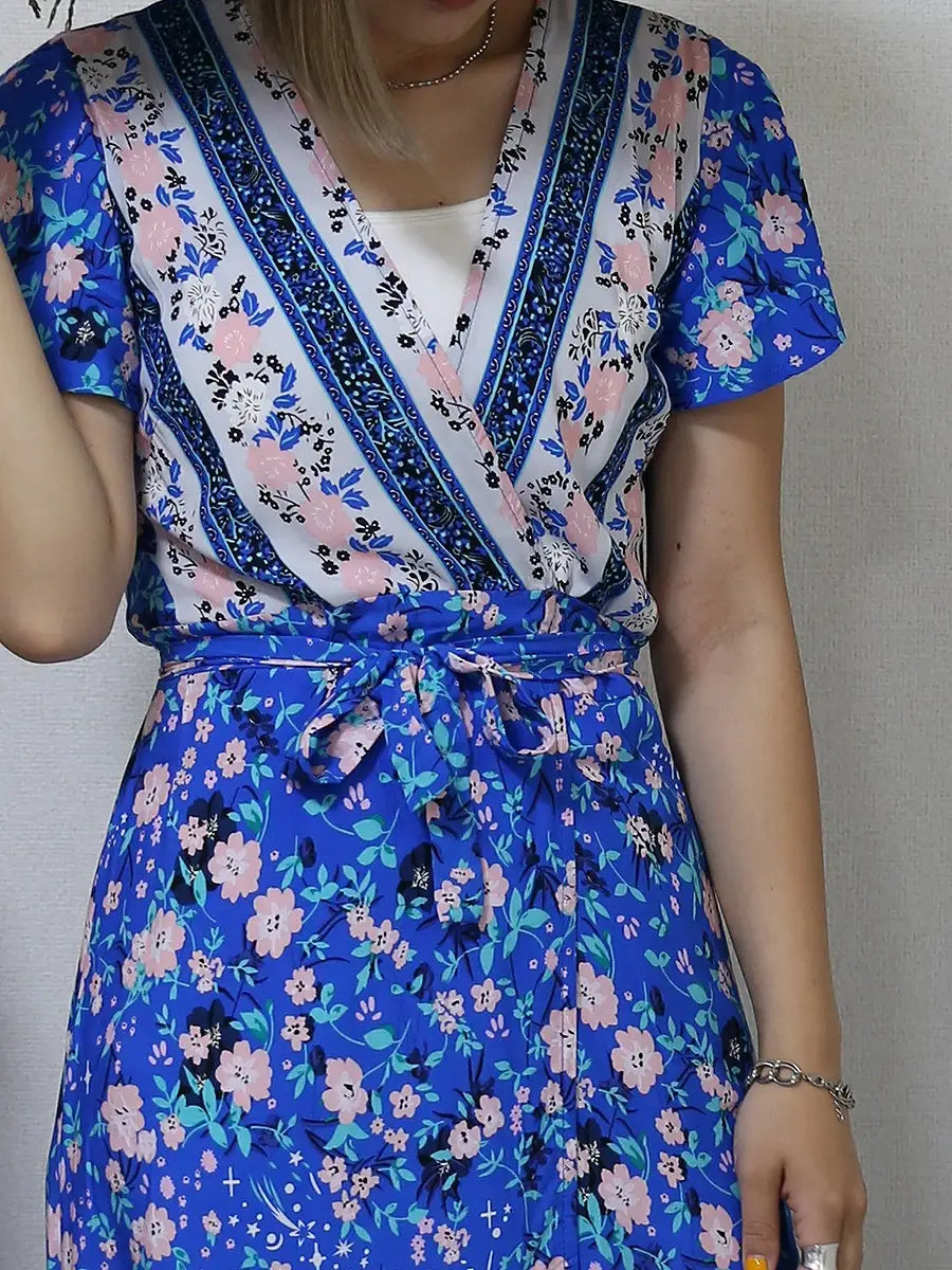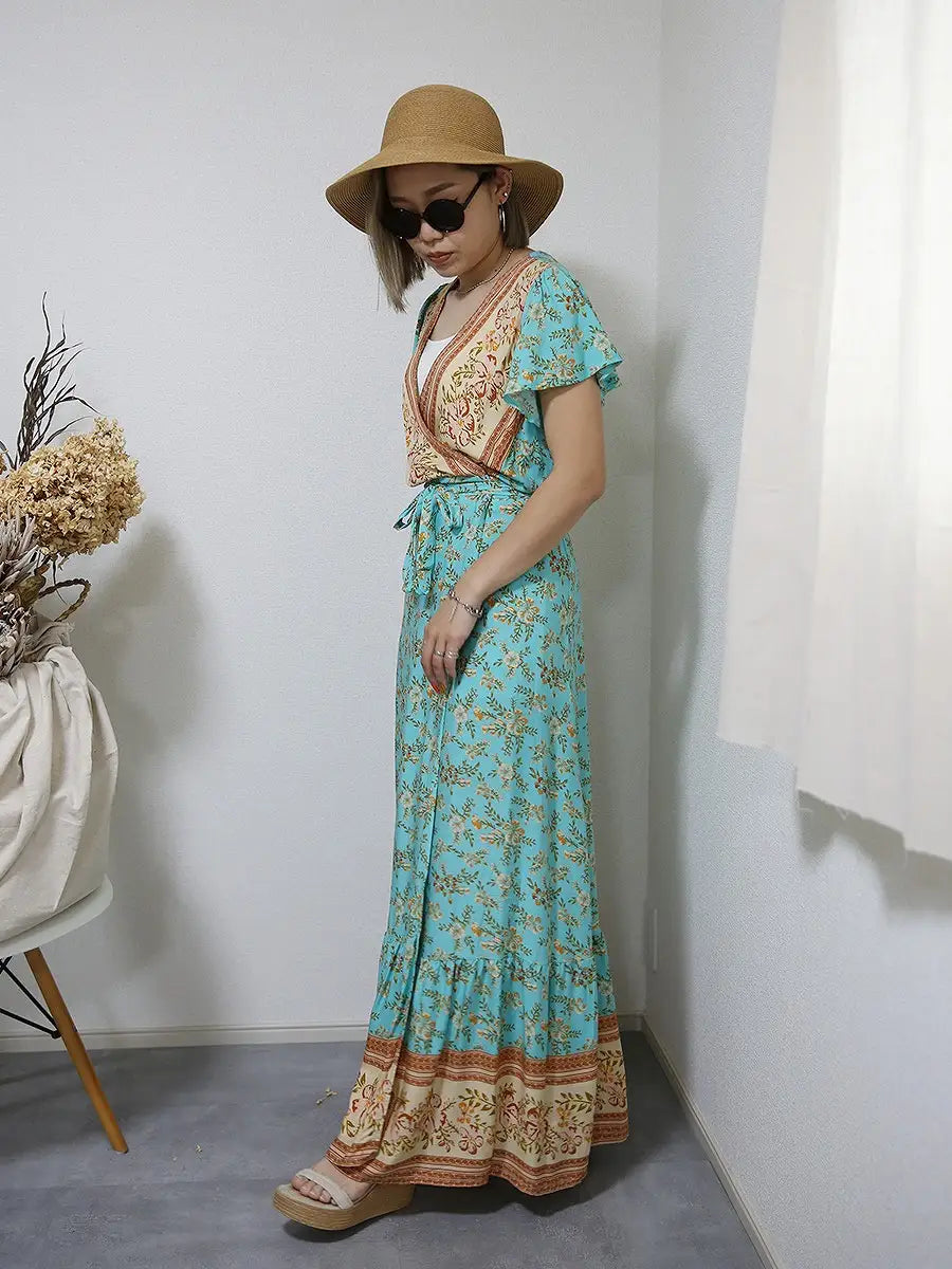 roomy by the sea(ルーミーバイザシー)花柄カシュクールラップスタイルマキシワンピース
