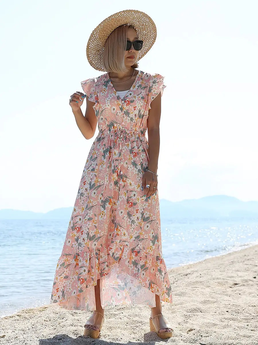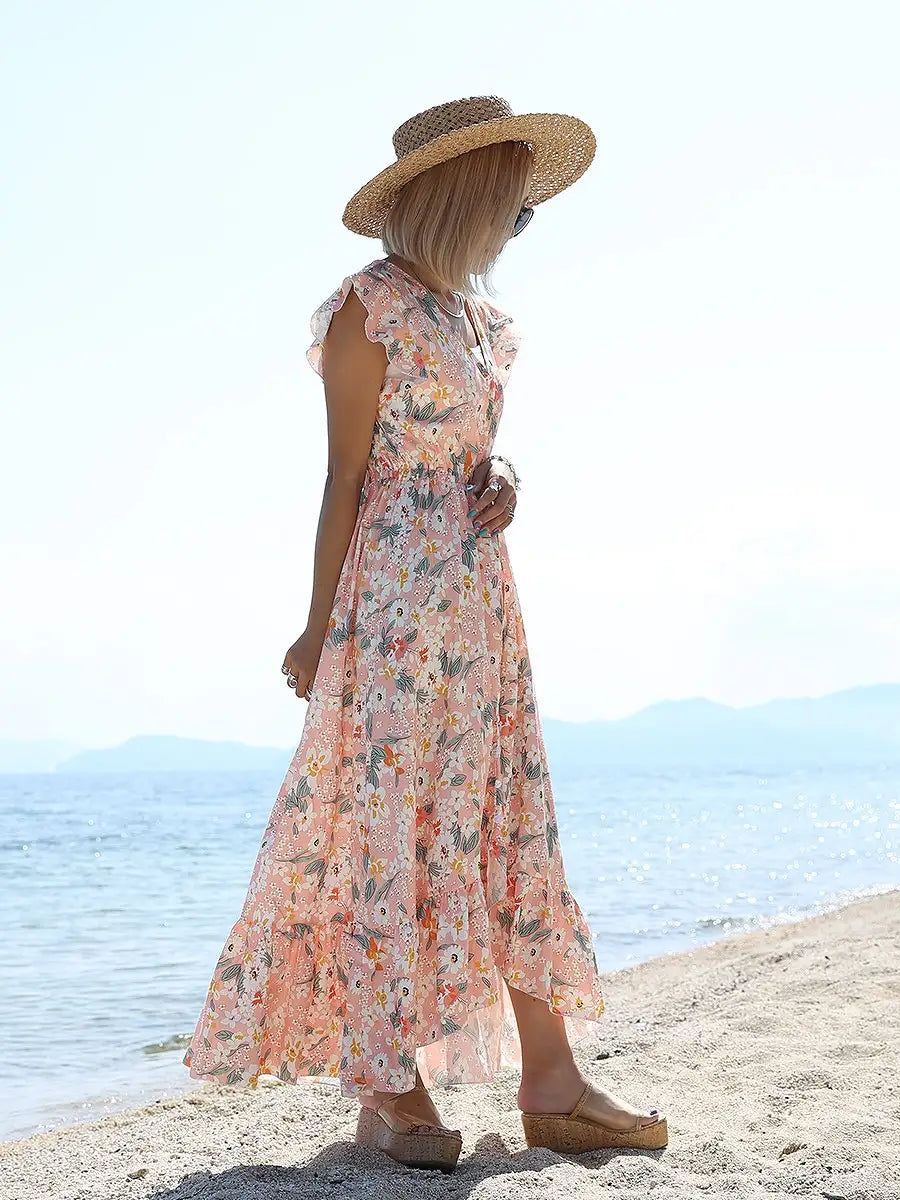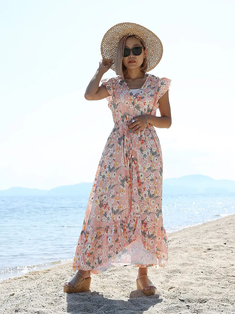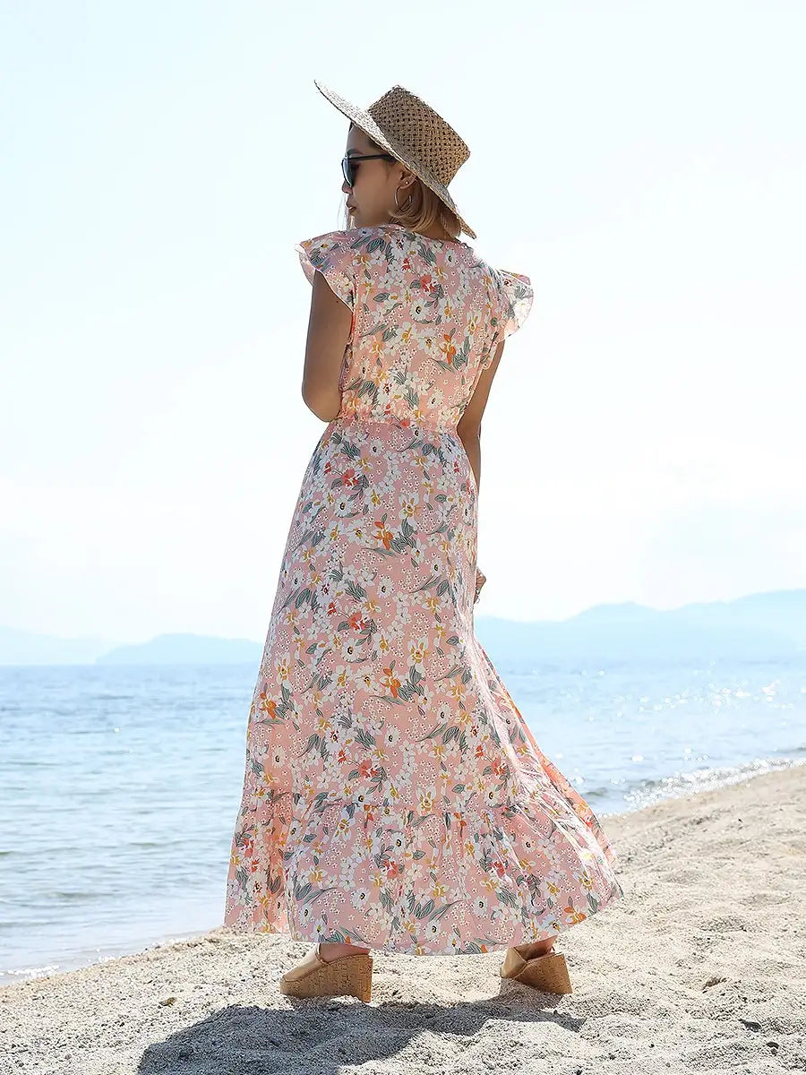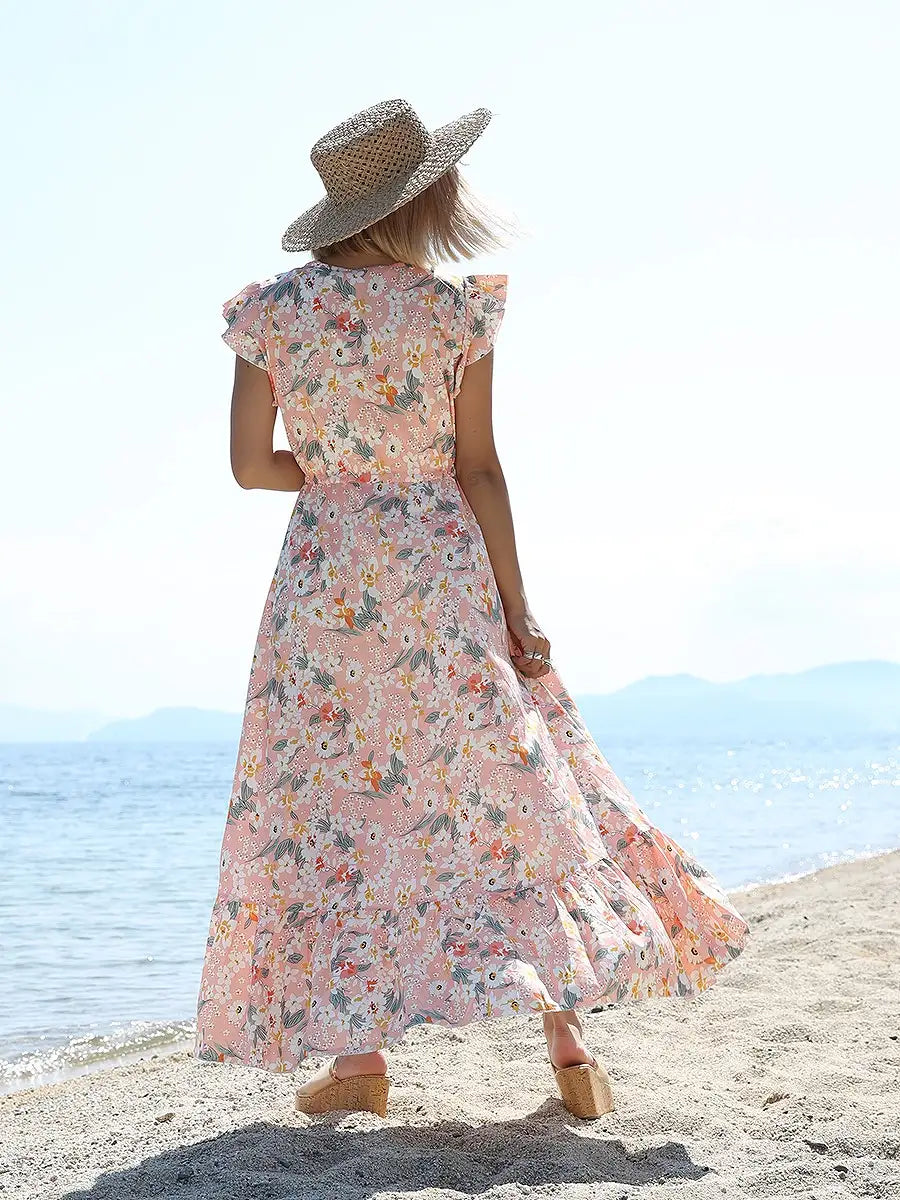 roomy by the sea(ルーミーバイザシー)フレンチスリーブのラップスタイル花柄マキシワンピース